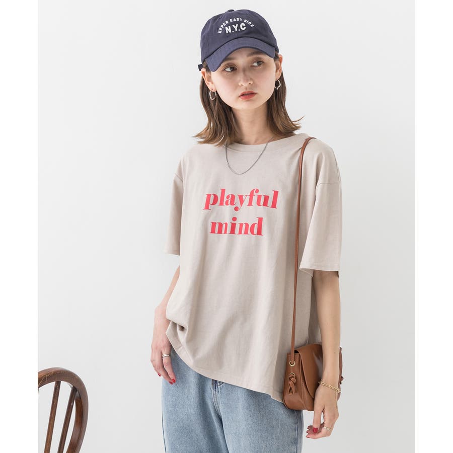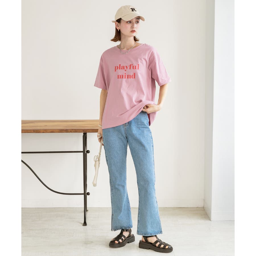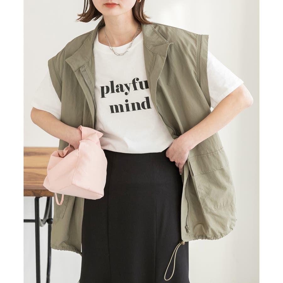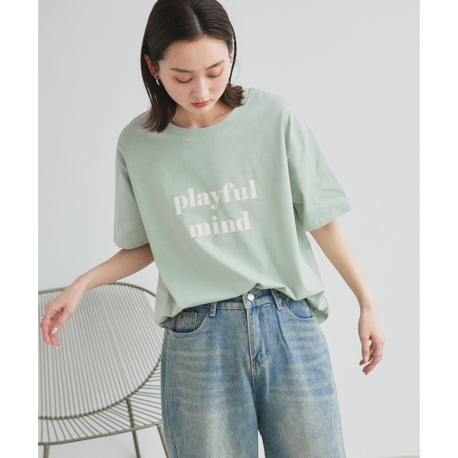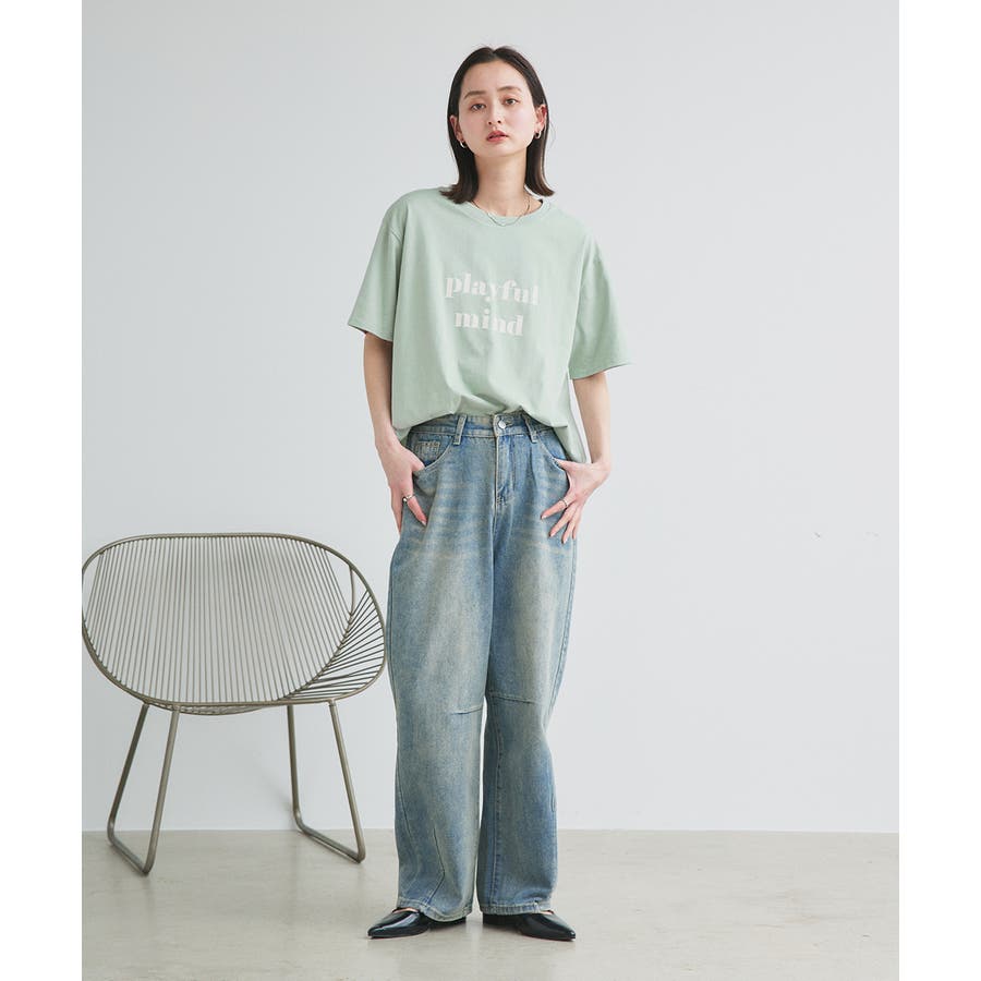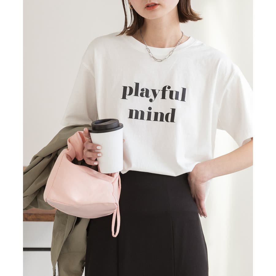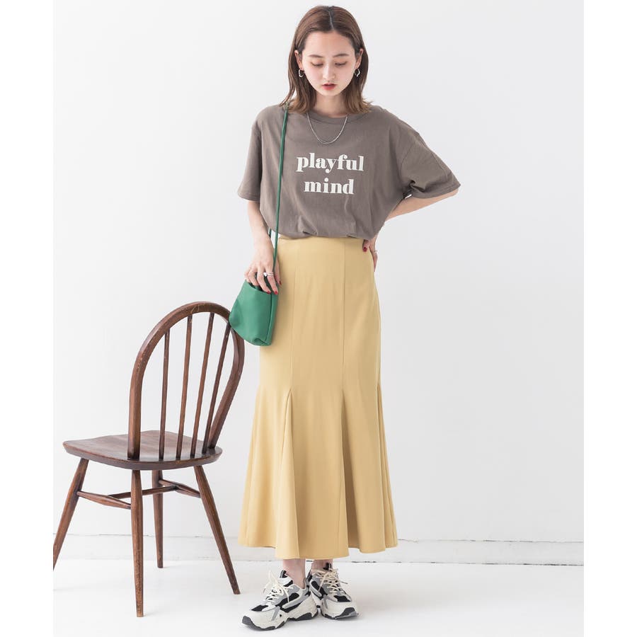 シンプルなボトムにはワンポイントとしてロゴTを合わすと、一気に雰囲気が変わっておしゃれ!