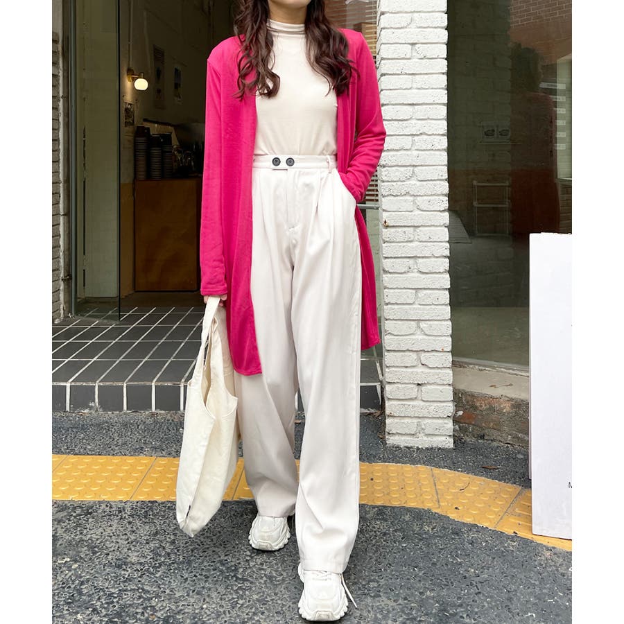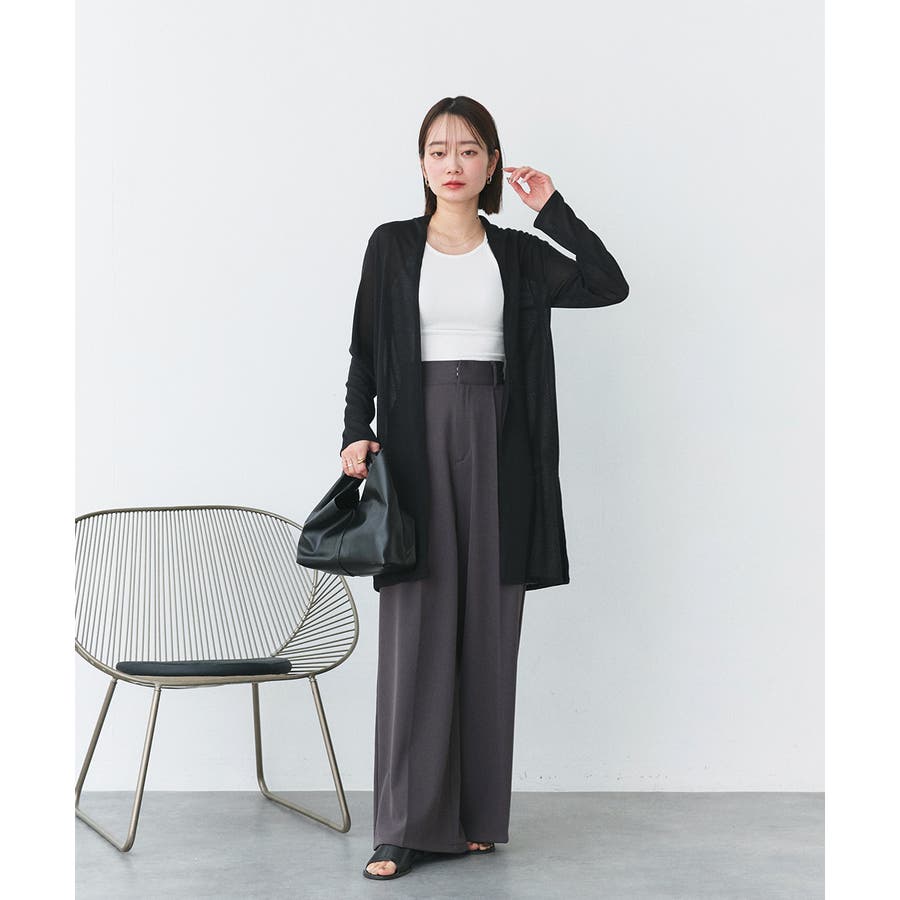 ショールカラー&ミドル丈なので、タイトなパンツと合わせるとシャープな印象の大人の女性コーデに