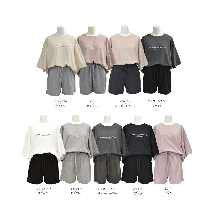 秋 秋コーデ 秋ファッション 秋服 夏 夏コーデ 夏ファッション 夏服 カジュアル カジュアルコーデ 大人 大人カジュアル オフィスカジュアル オフィス オフィスファッション オフィススタイル 韓国 韓国ファッション 韓国コーデ プチプラ プチプラファッション レディース Y2K 半袖 セット 上下セット ルームウエア 部屋着 ロゴ シンプル ショートパンツ ハーフパンツ お部屋 おうち時間 Tシャツ ベージュ オフ ホワイト 白 チャコール トラベル ビック おそろい おすすめ スポーツ 寝間着 パジャマ リラックス ウェア ワンマイルウエア