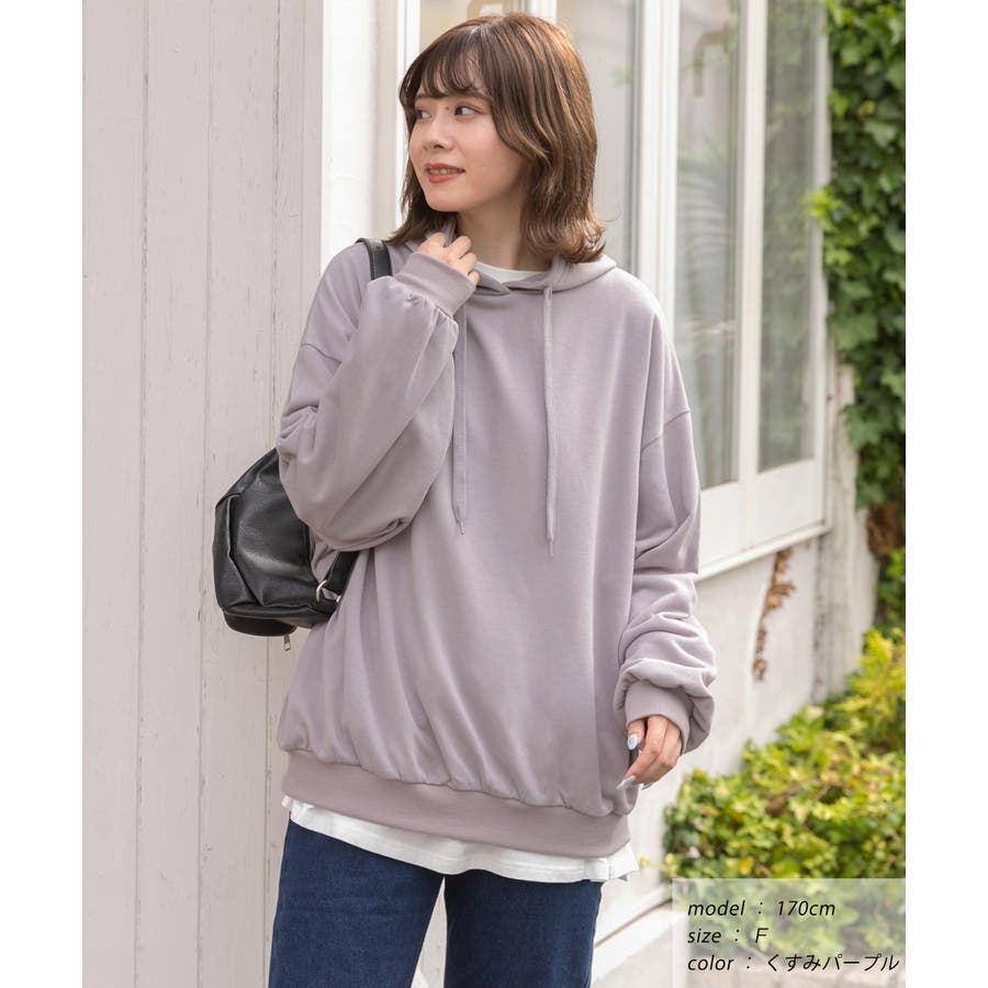 袖のボリュームとざっくりしたフードがルーズでかわいい!