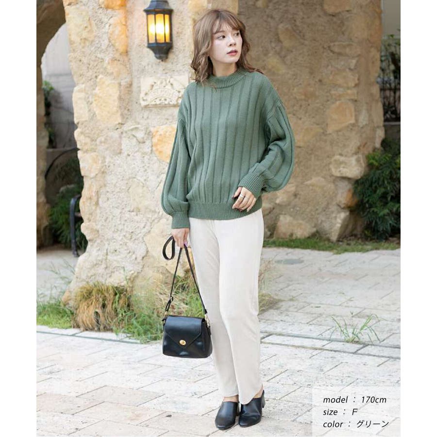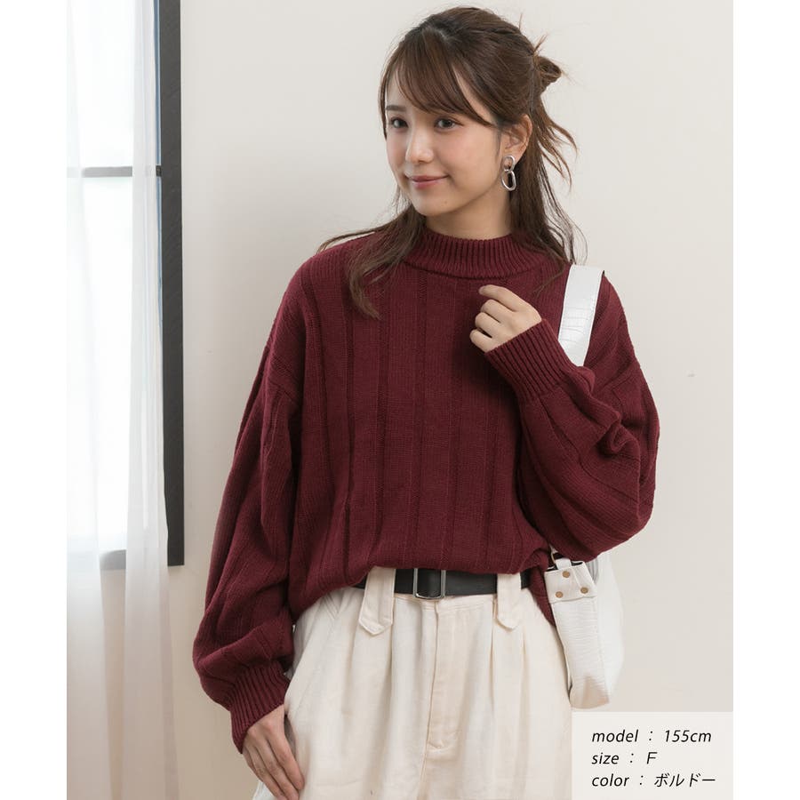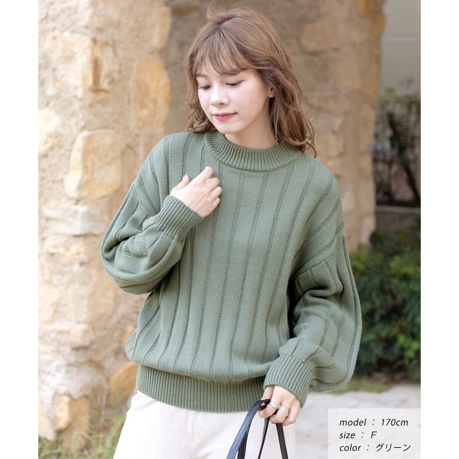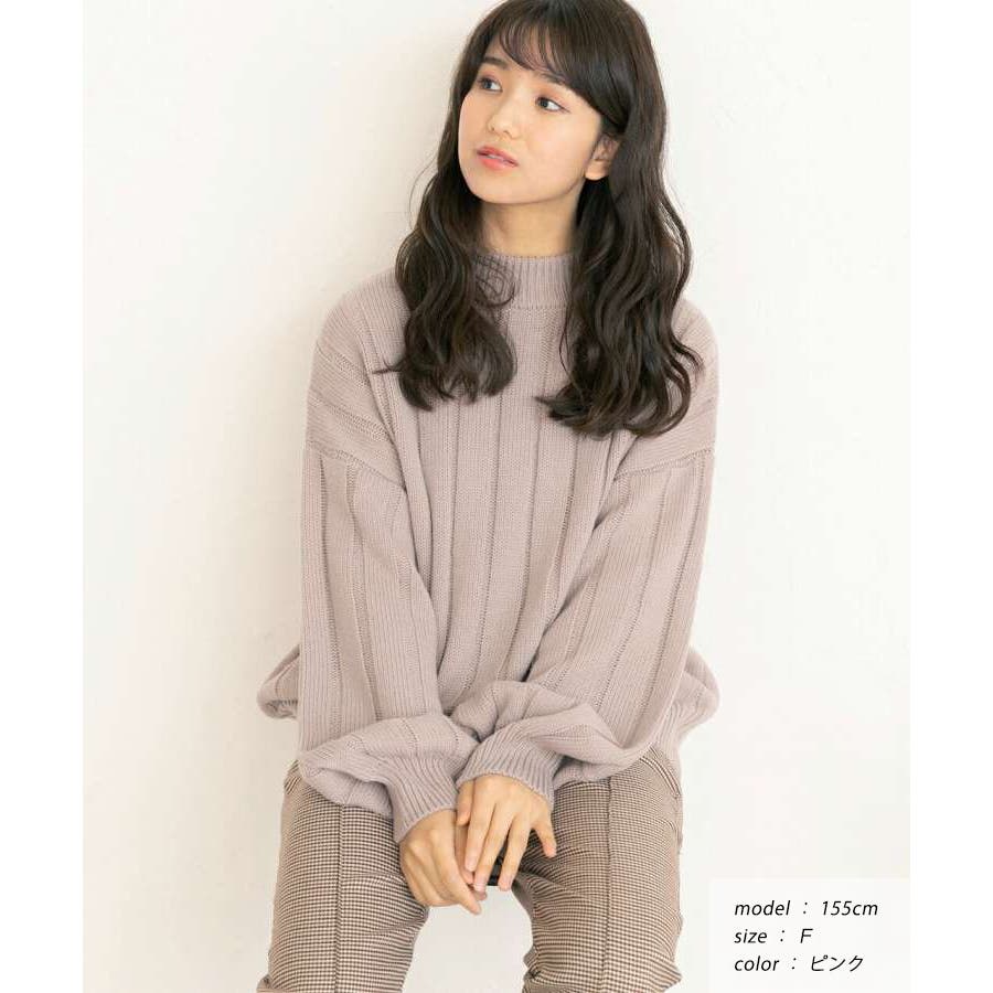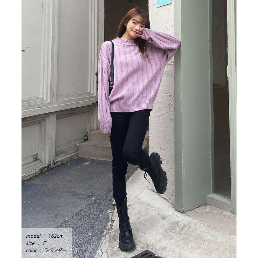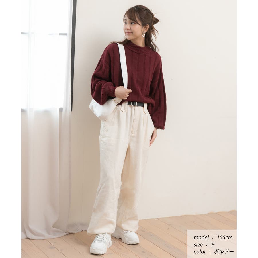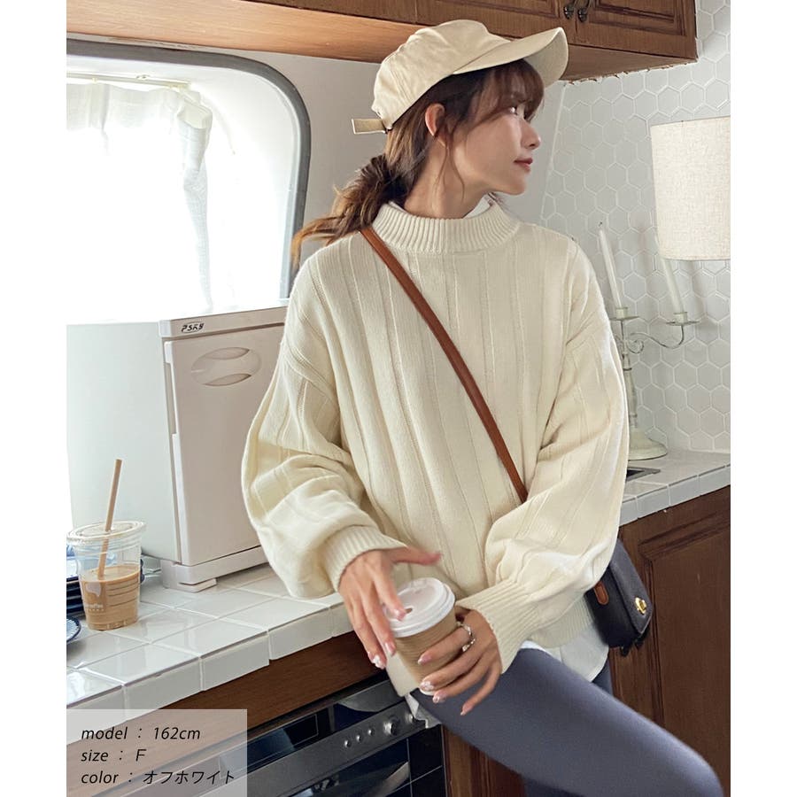 ゆったりシルエットながらもフェミニンな印象の太リブニット