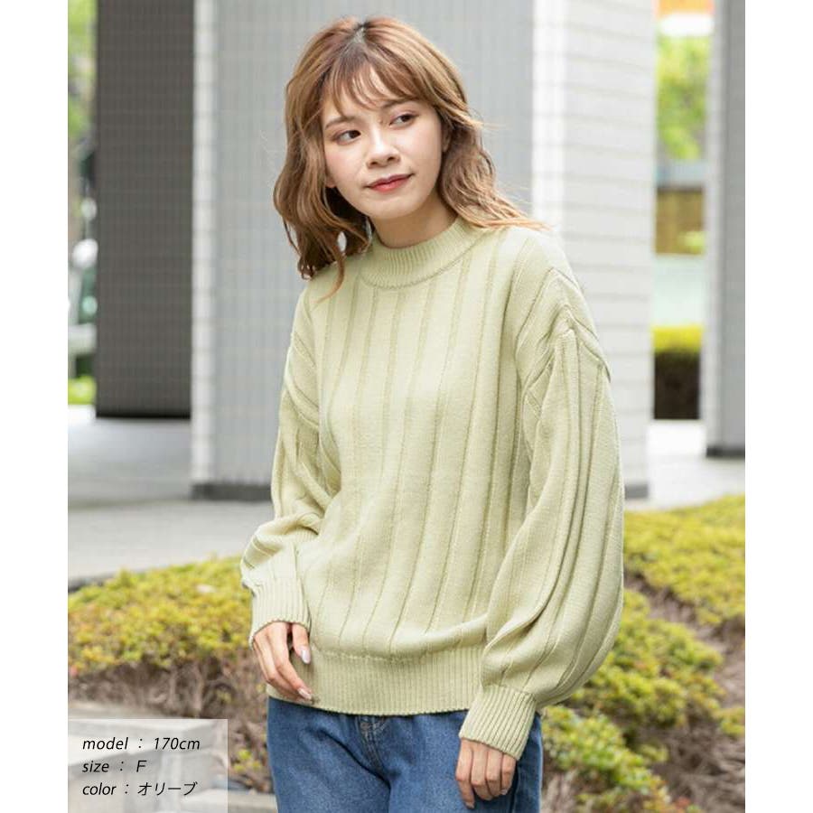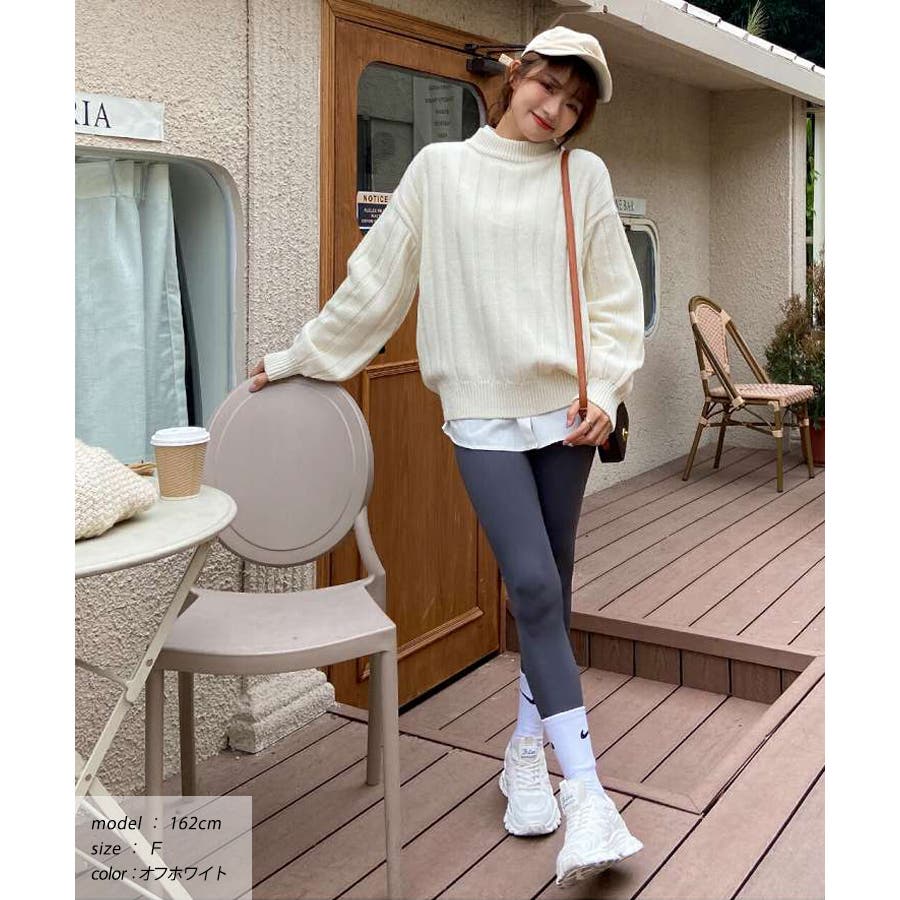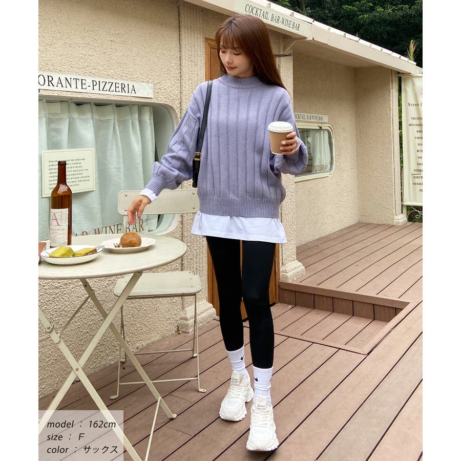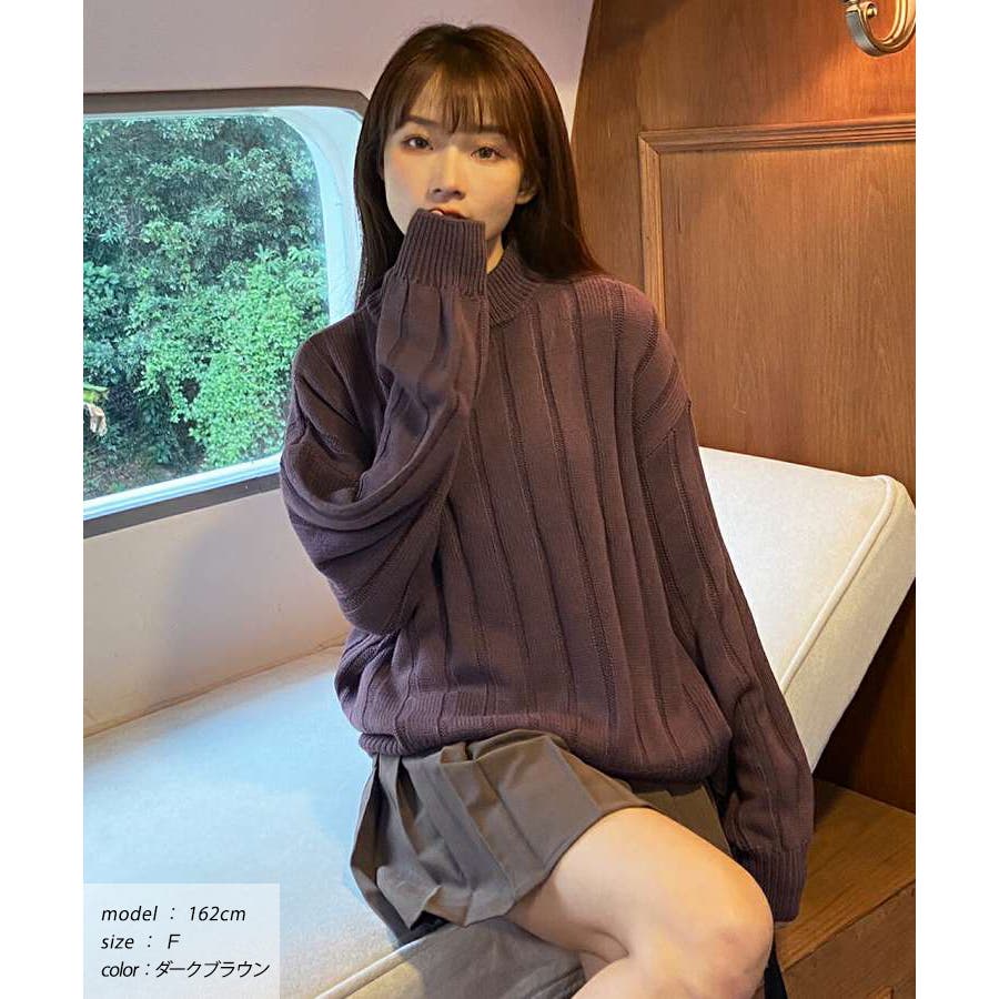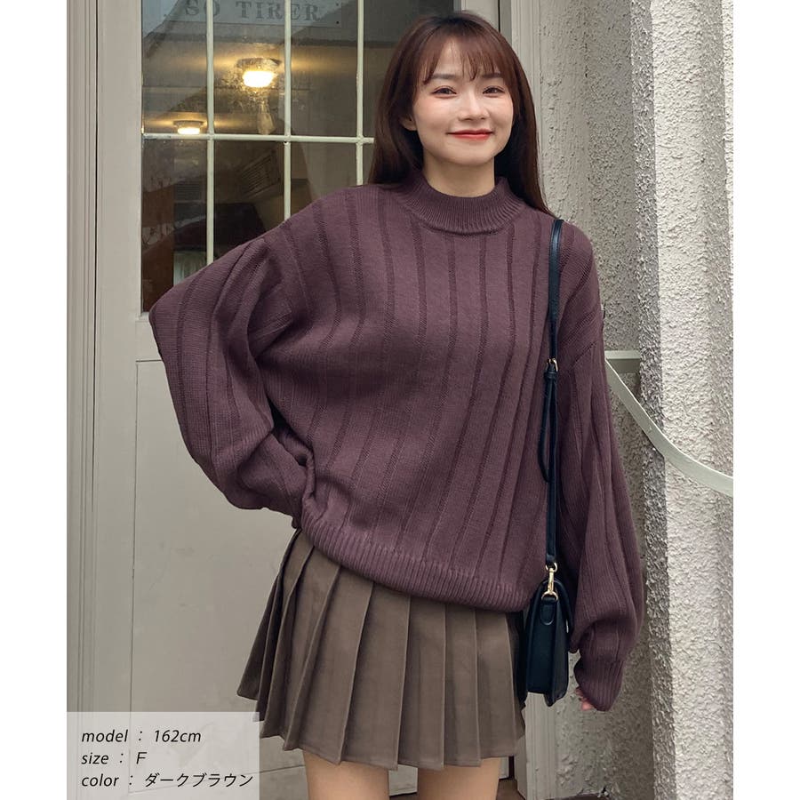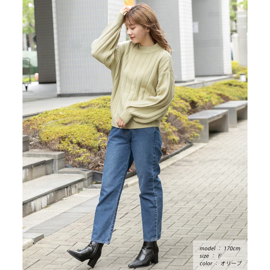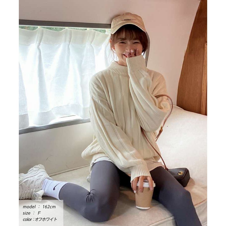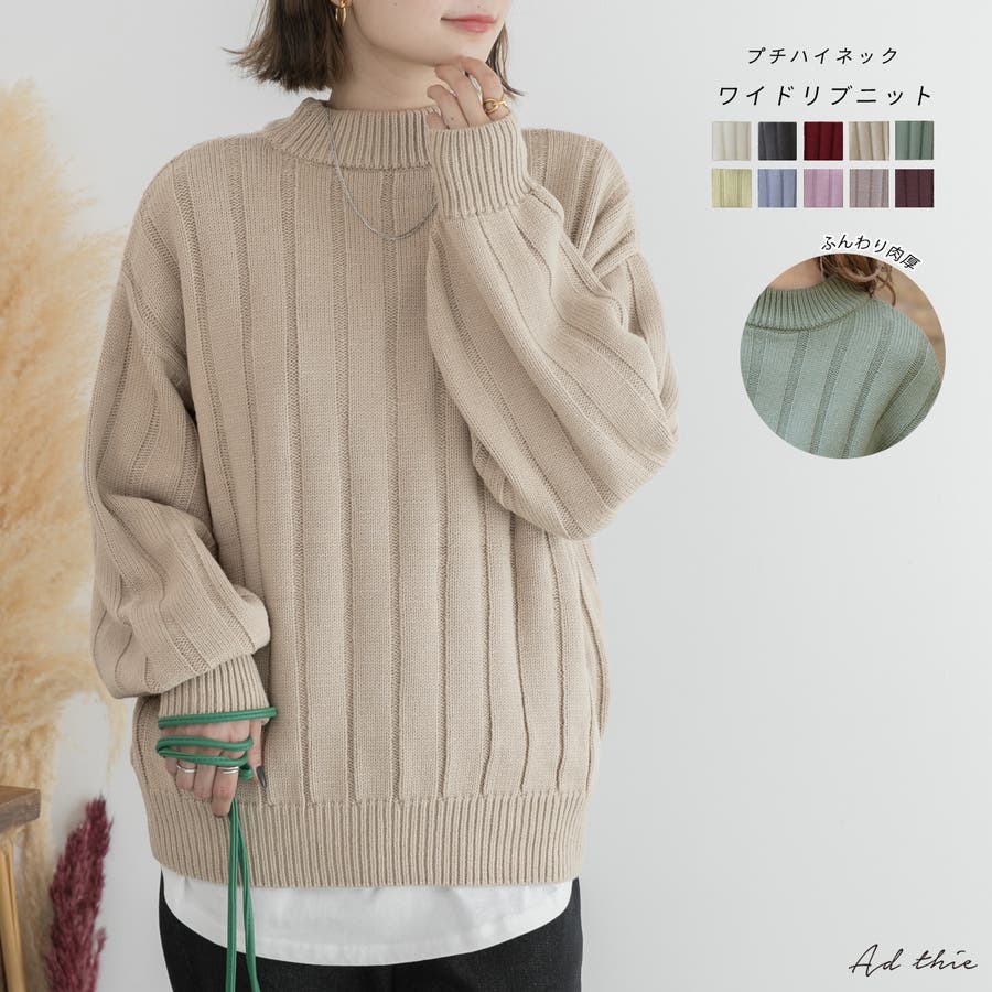 ゆったりシルエットながらもフェミニンな印象の太リブニット