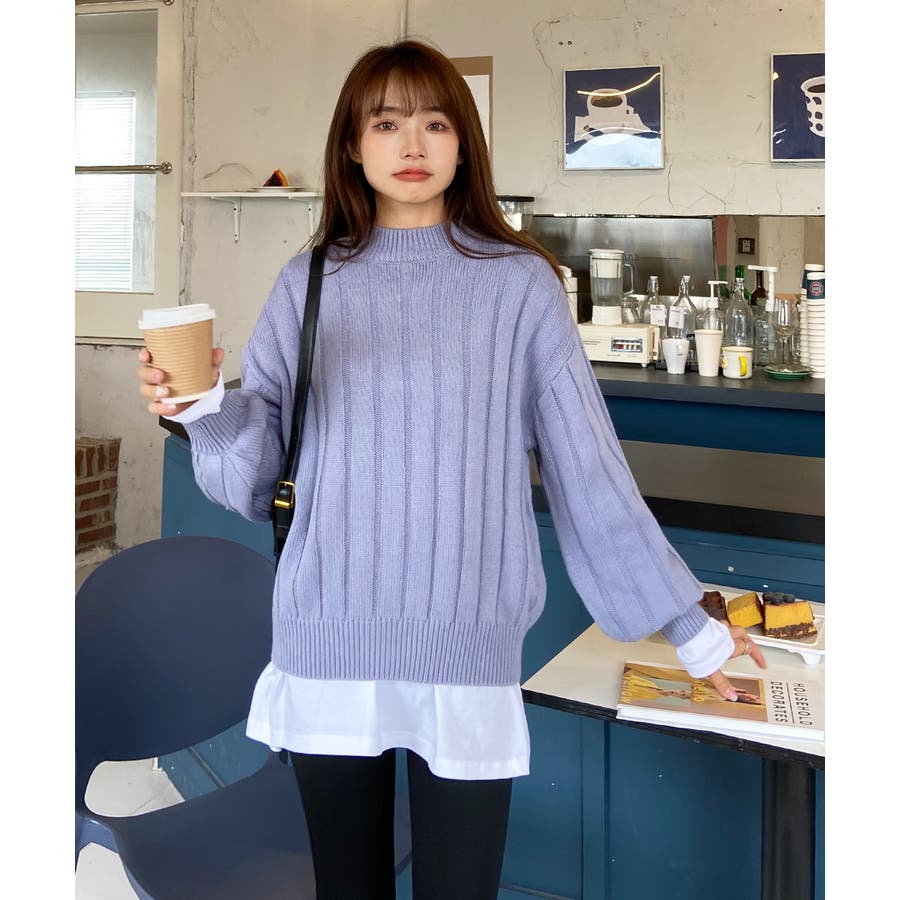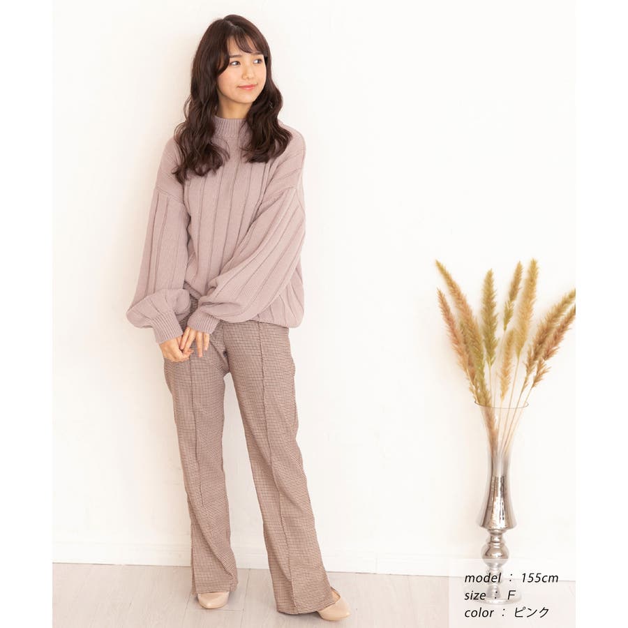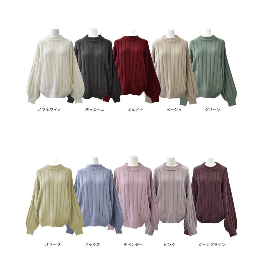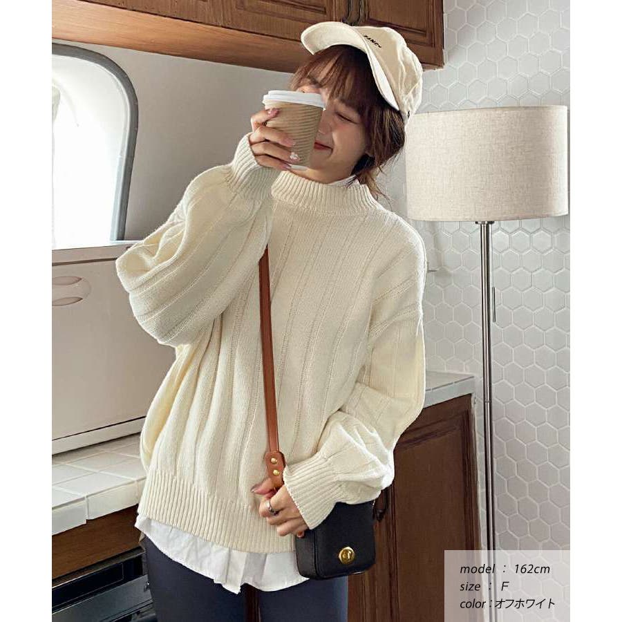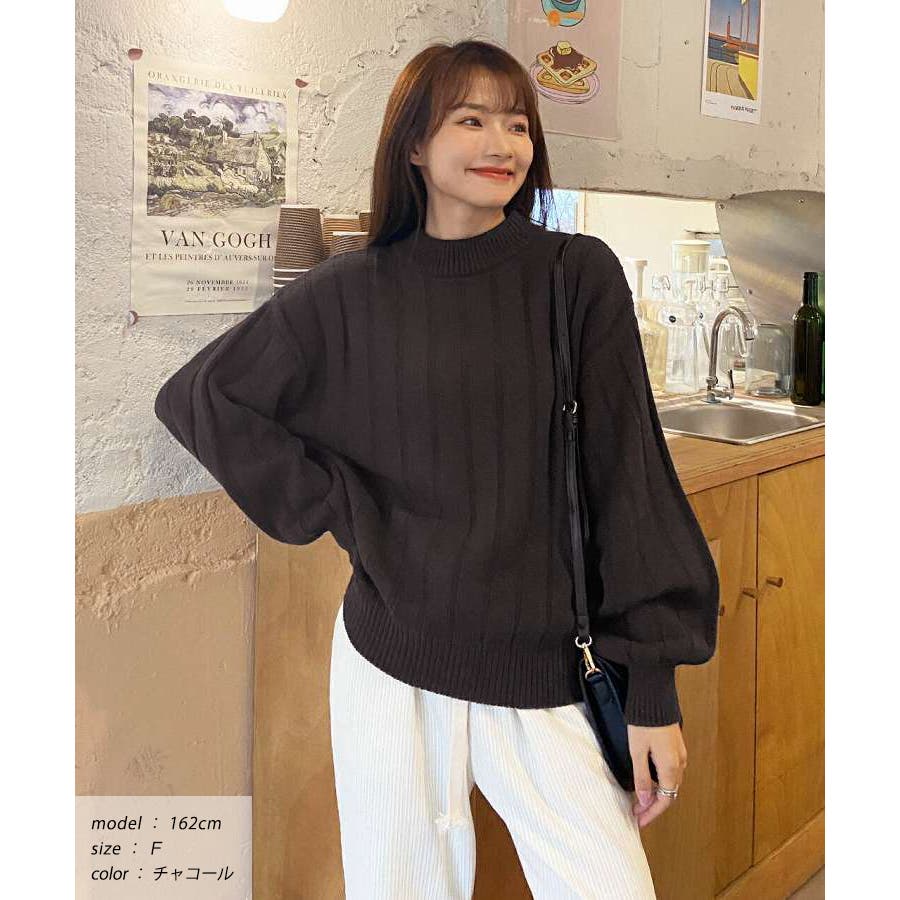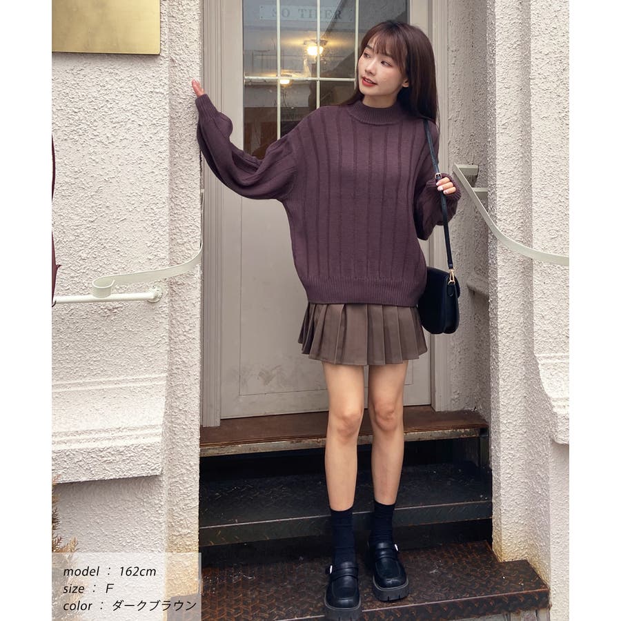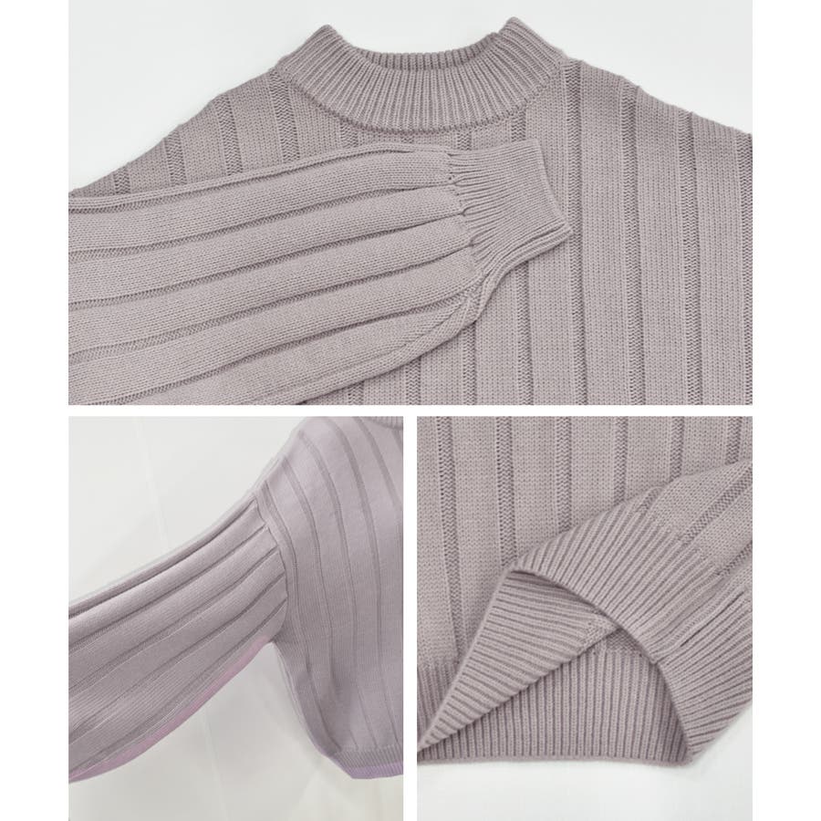 ゆったりシルエットながらもフェミニンな印象の太リブニット