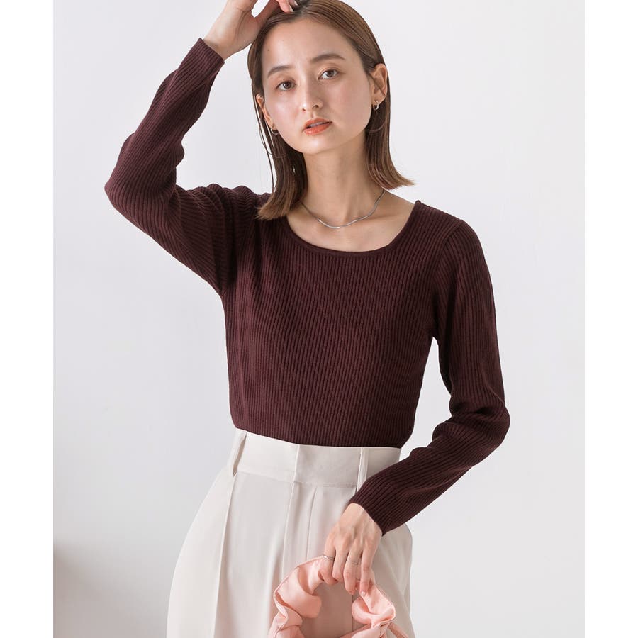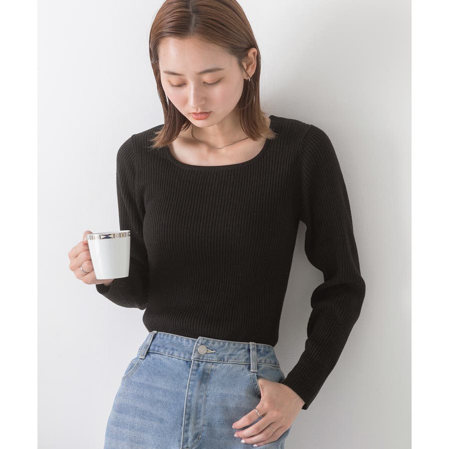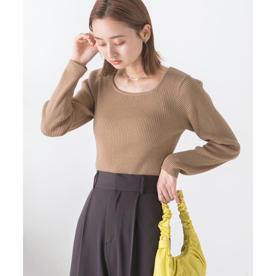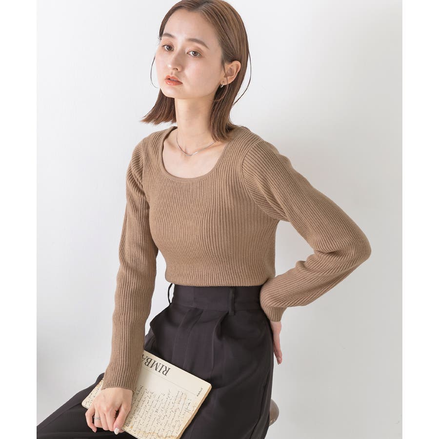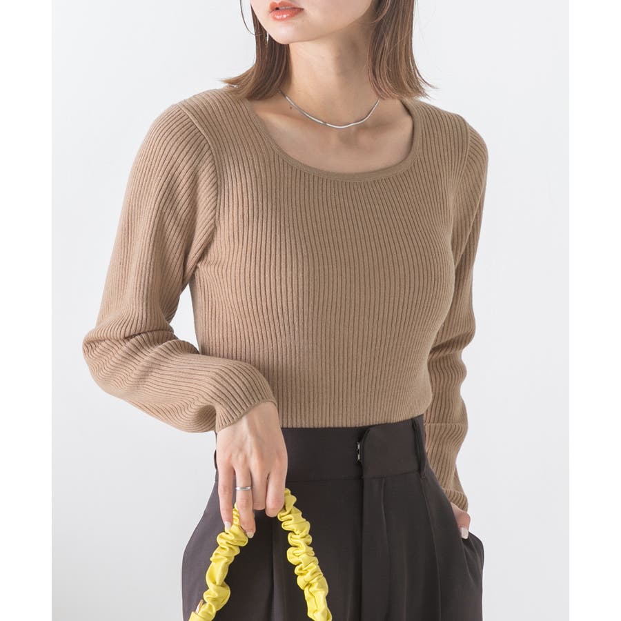 スクエアデザインがデコルテを綺麗に見せてくれるリブニットトップス!