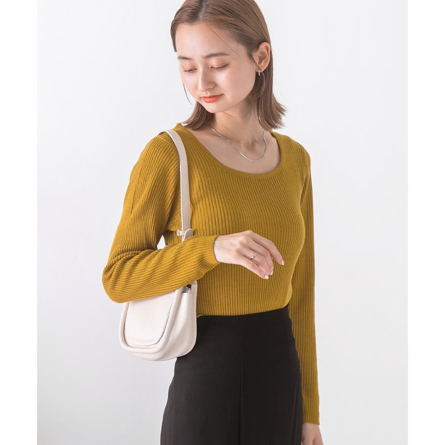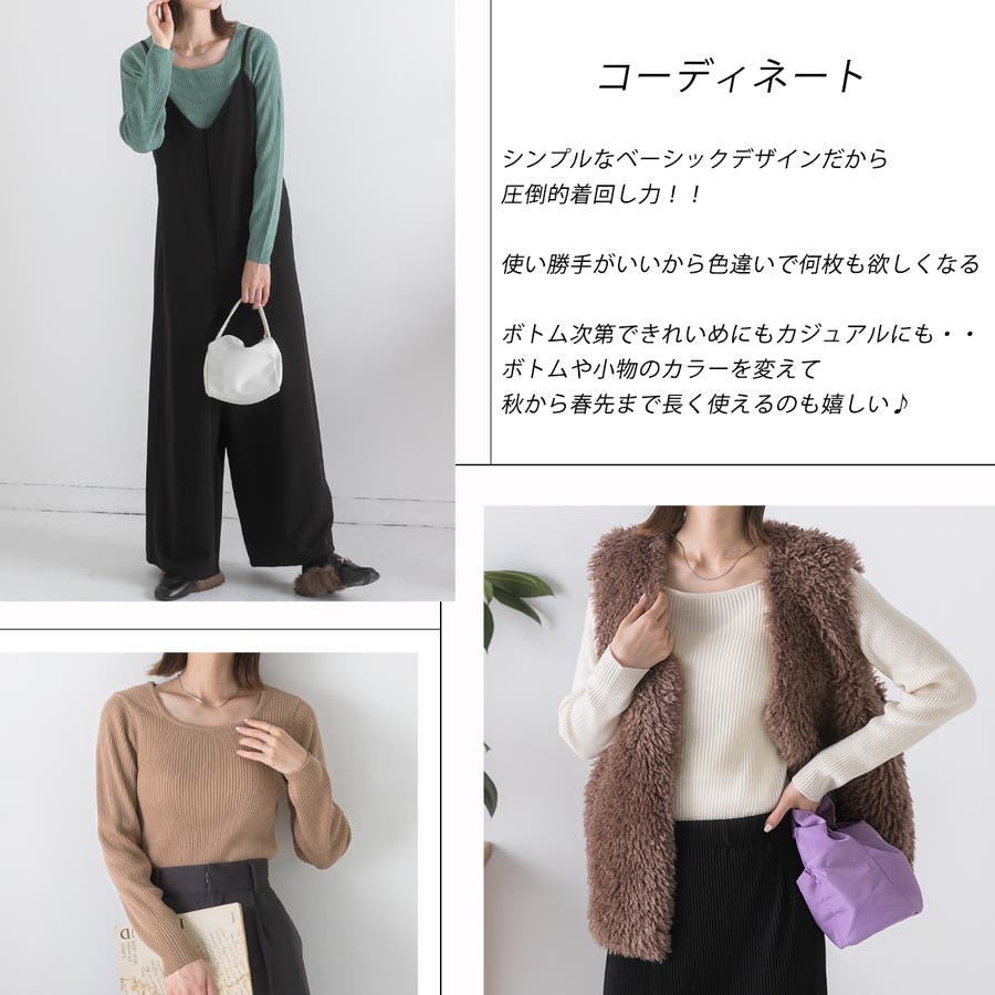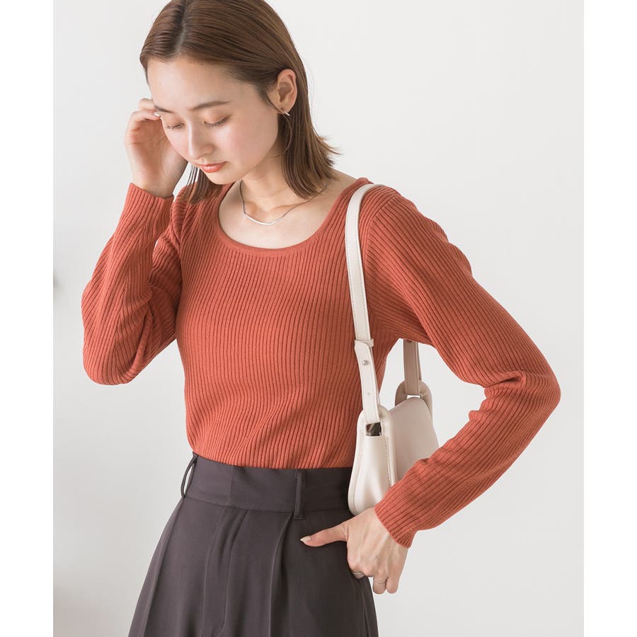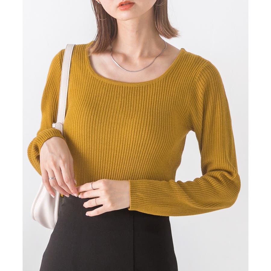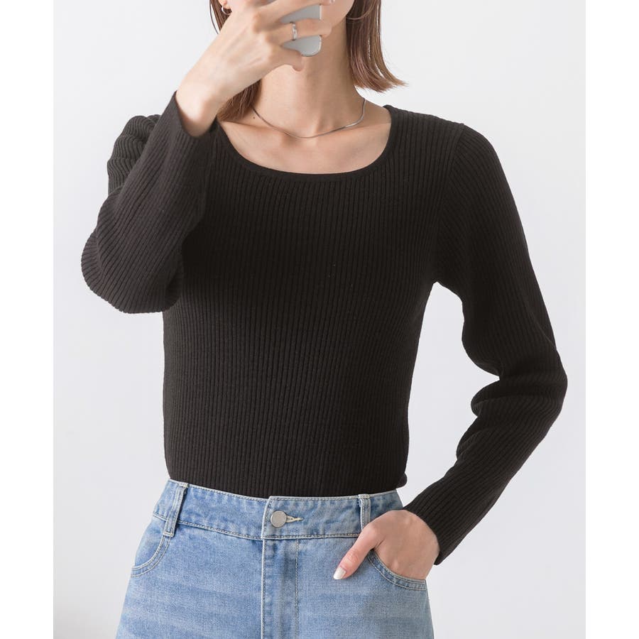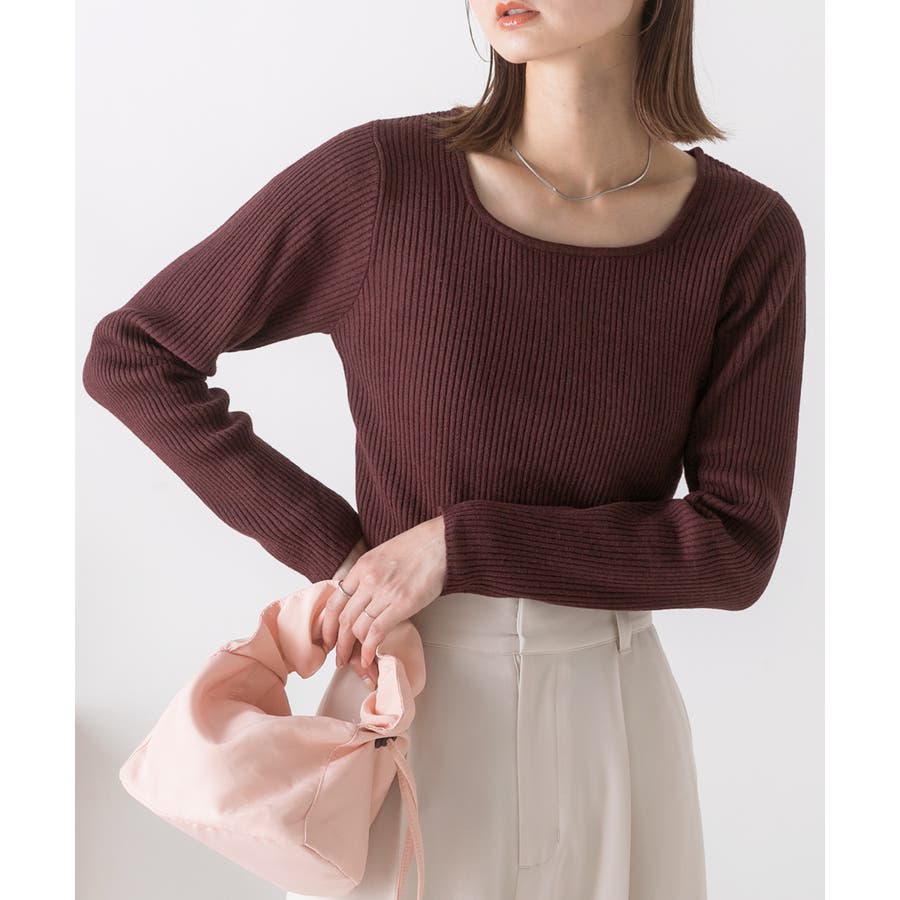 スクエアデザインがデコルテを綺麗に見せてくれるリブニットトップス!