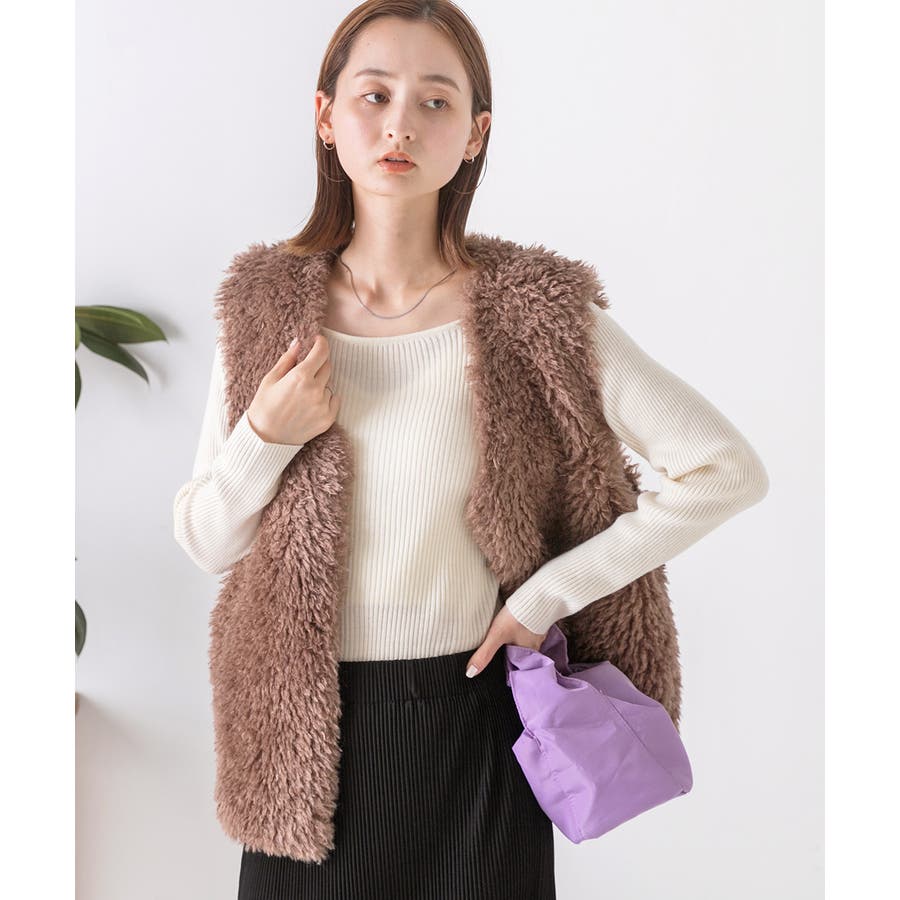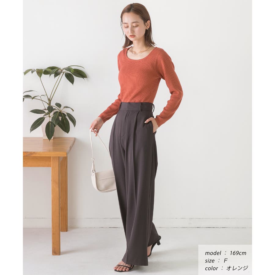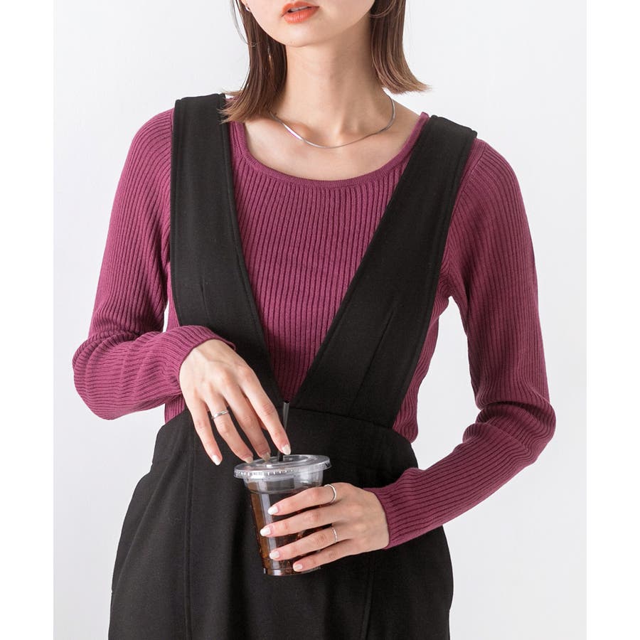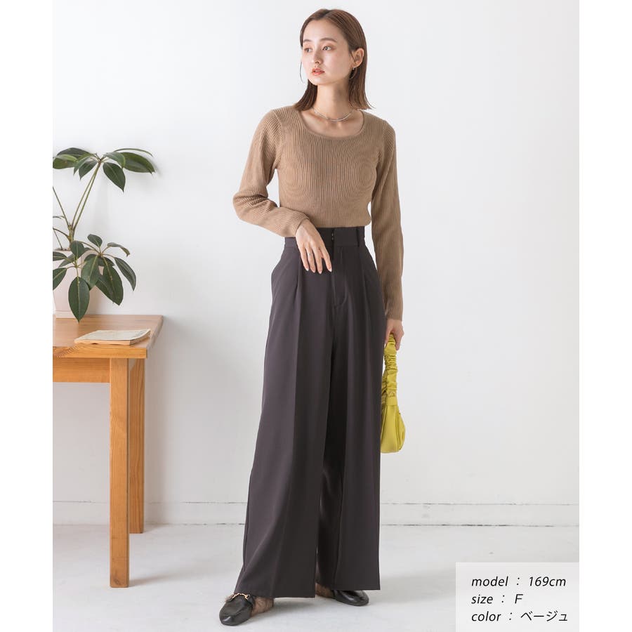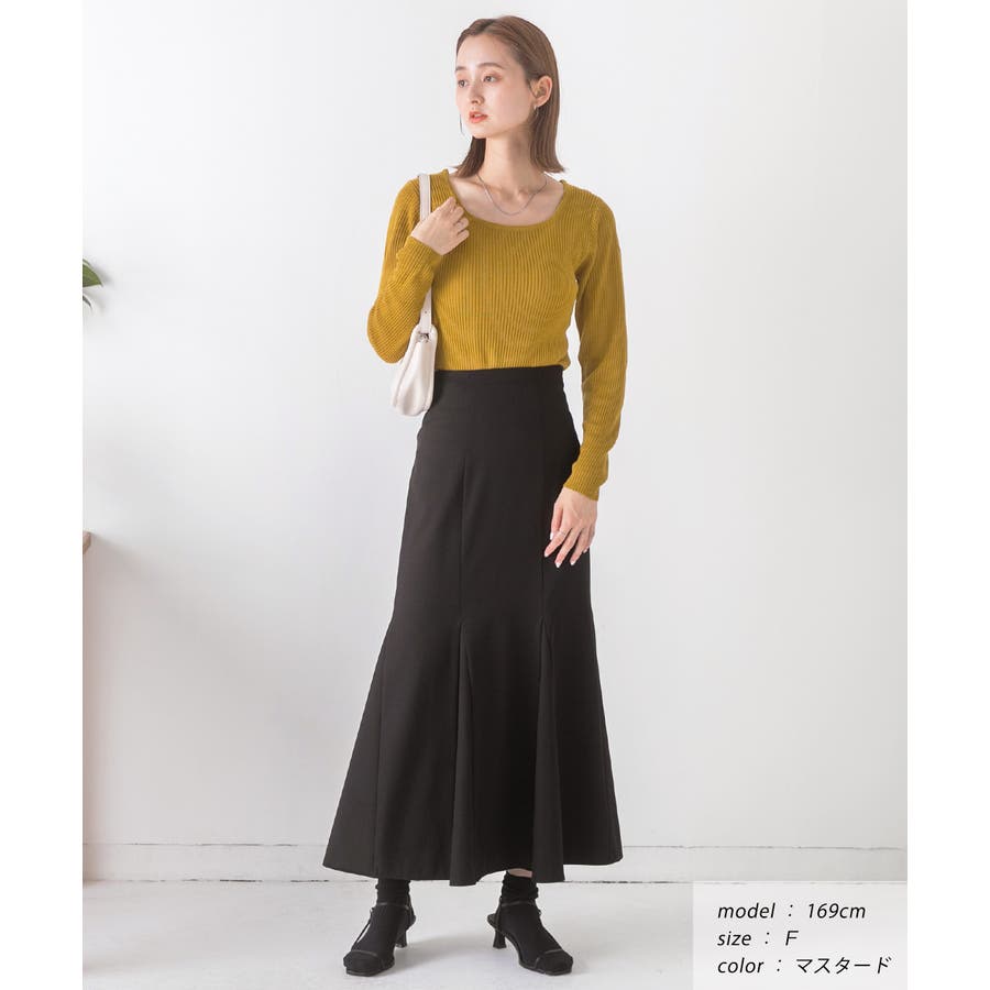 スクエアデザインがデコルテを綺麗に見せてくれるリブニットトップス!