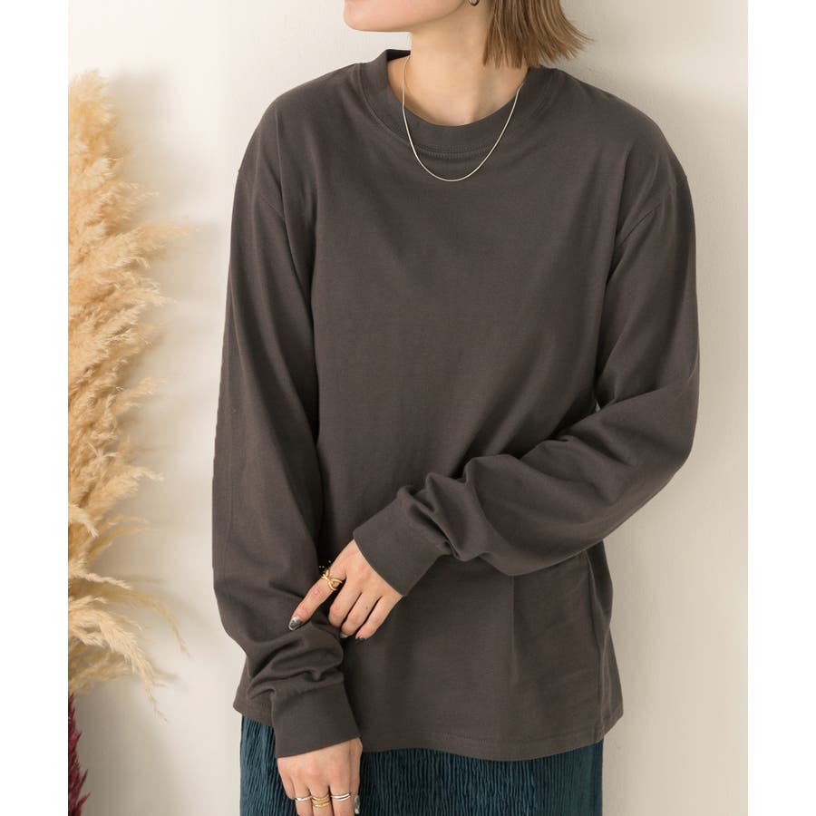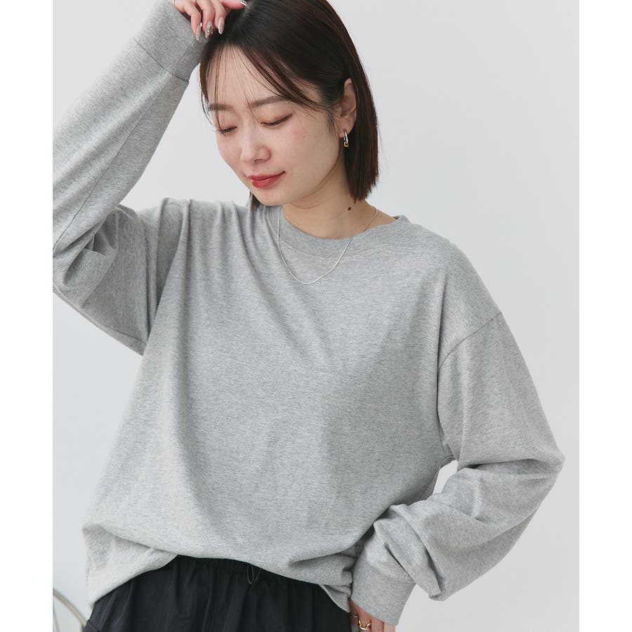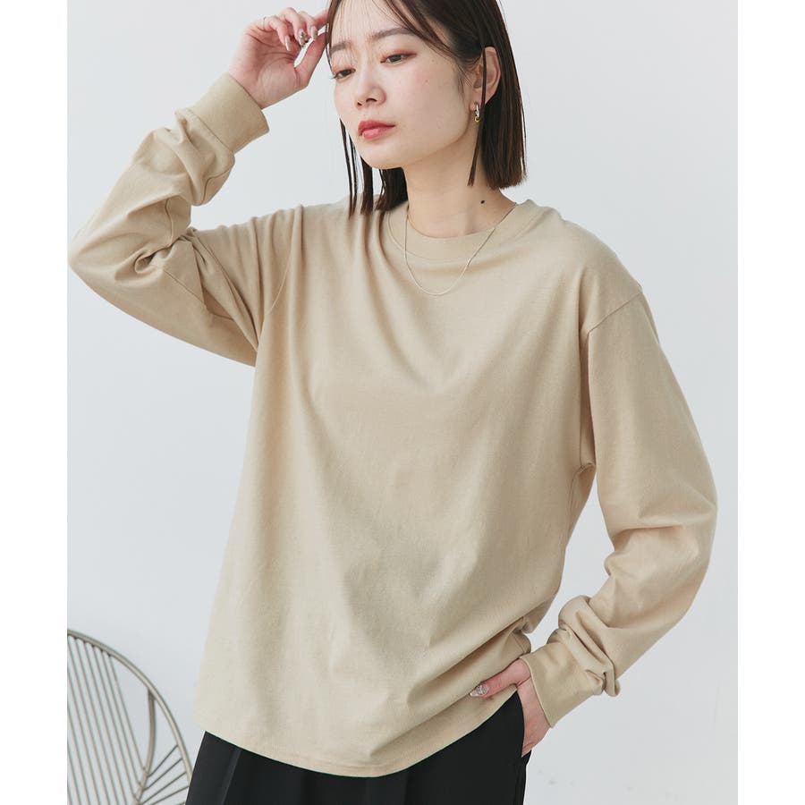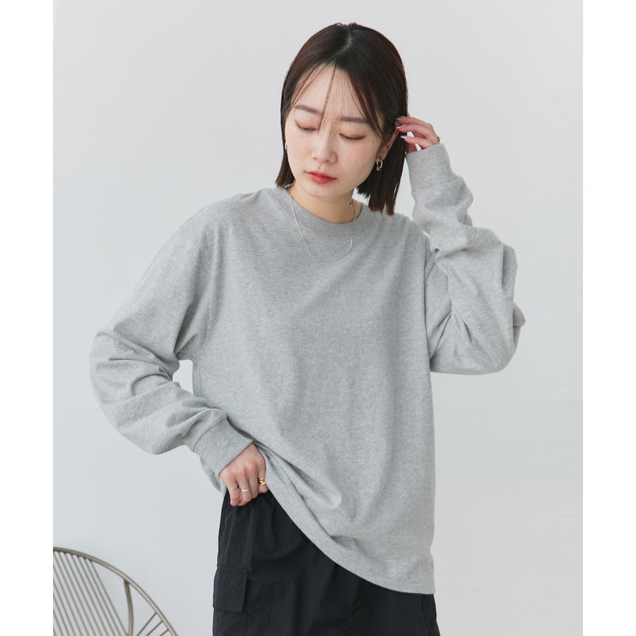 スタンダードなクルーネックデザインと袖リブがポイントです。