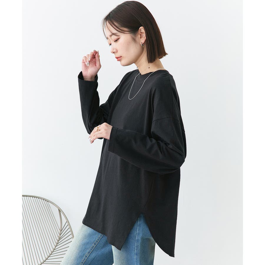 【ブラック】後裾ラウンドロングTシャツ 後ラウンド ラウンド