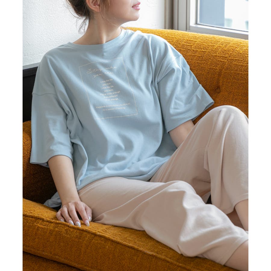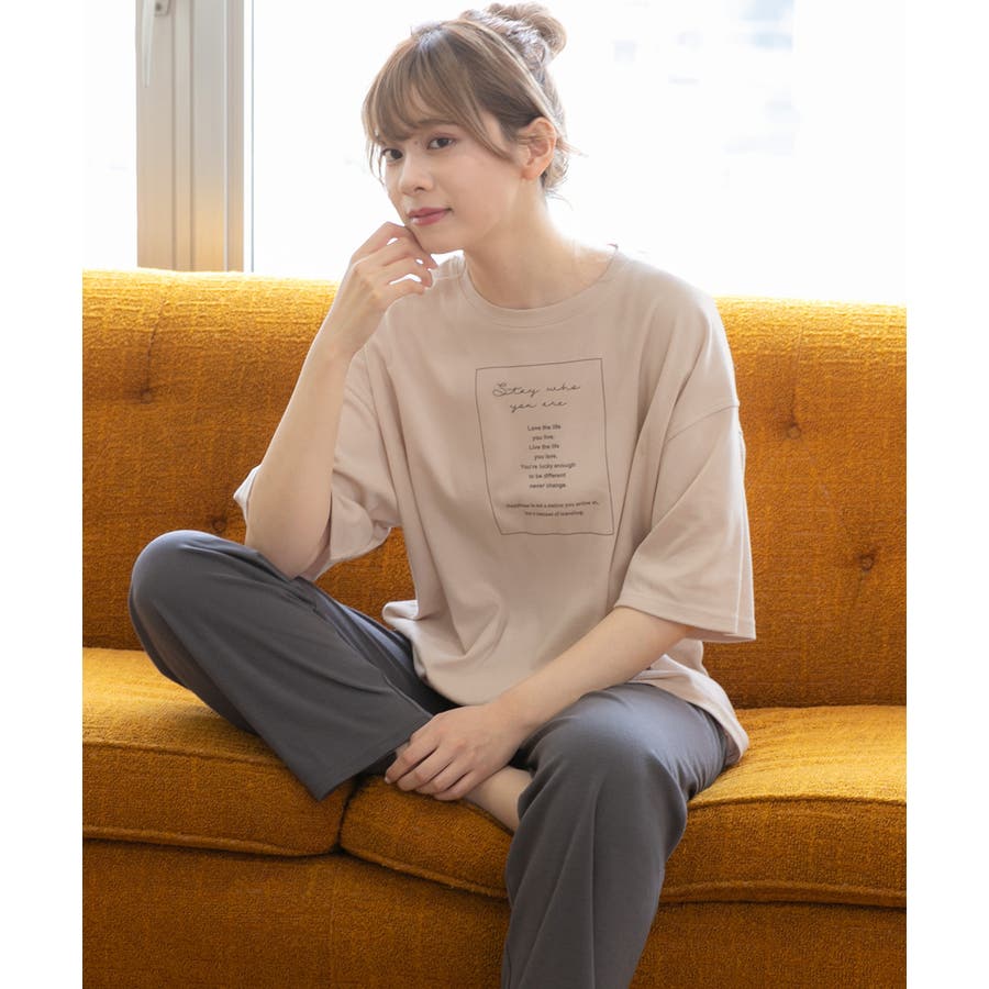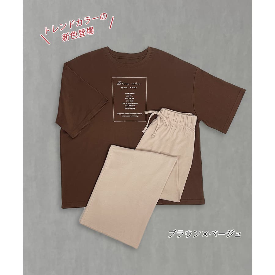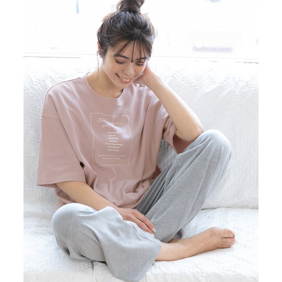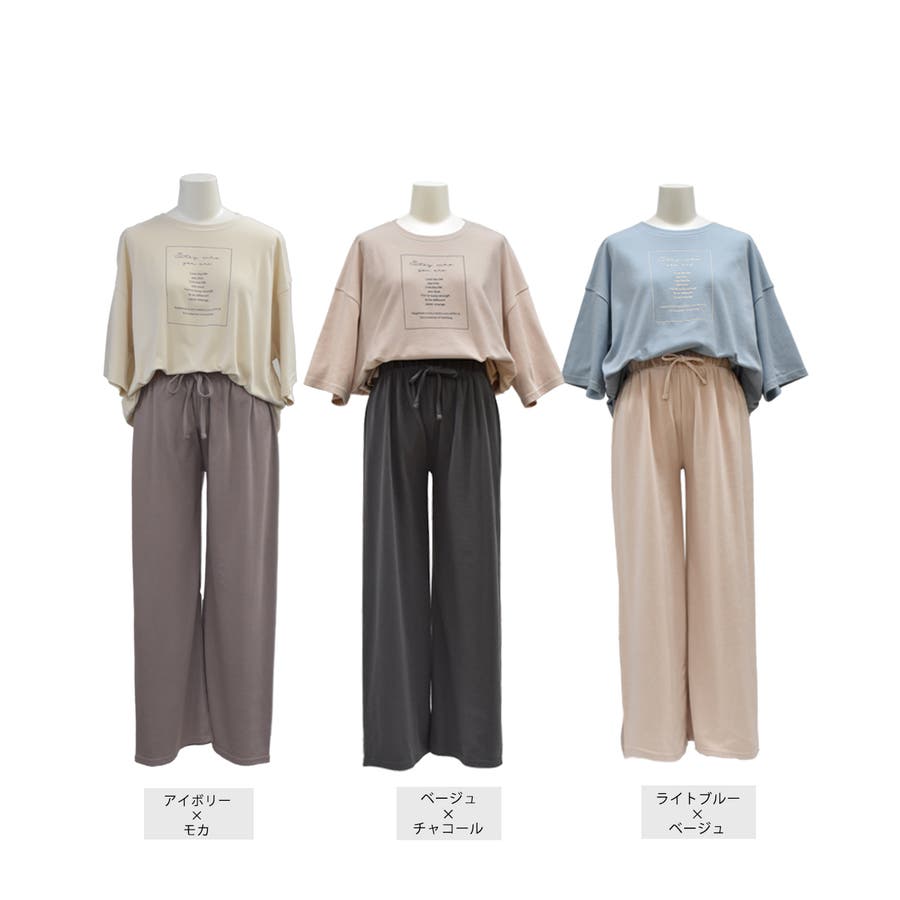 ロゴTとパンツのセットになったルームウェアでお家でリラックスタイムはもちろん旅行先にもおすすめなデザイン!