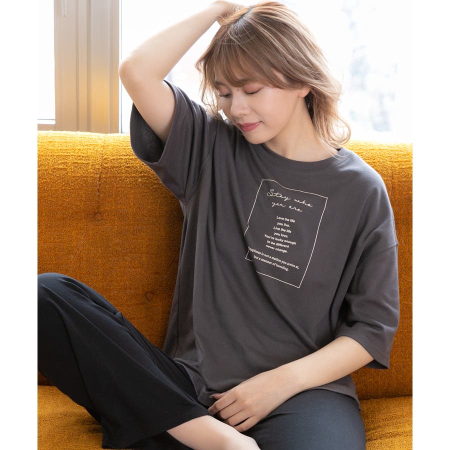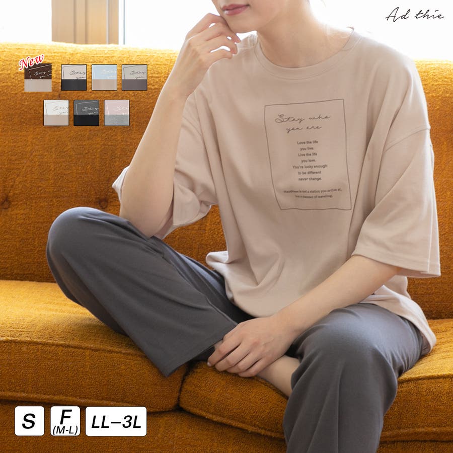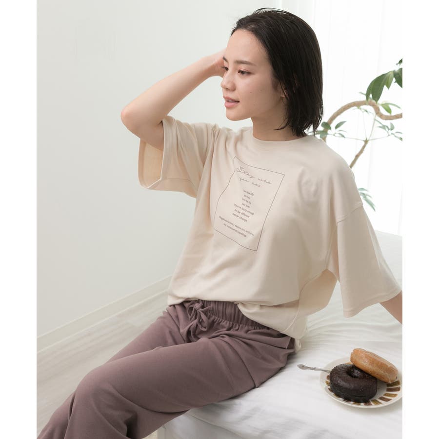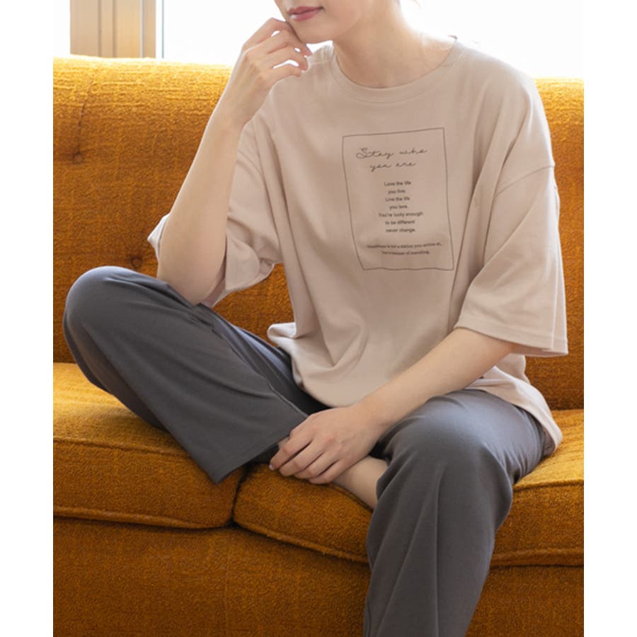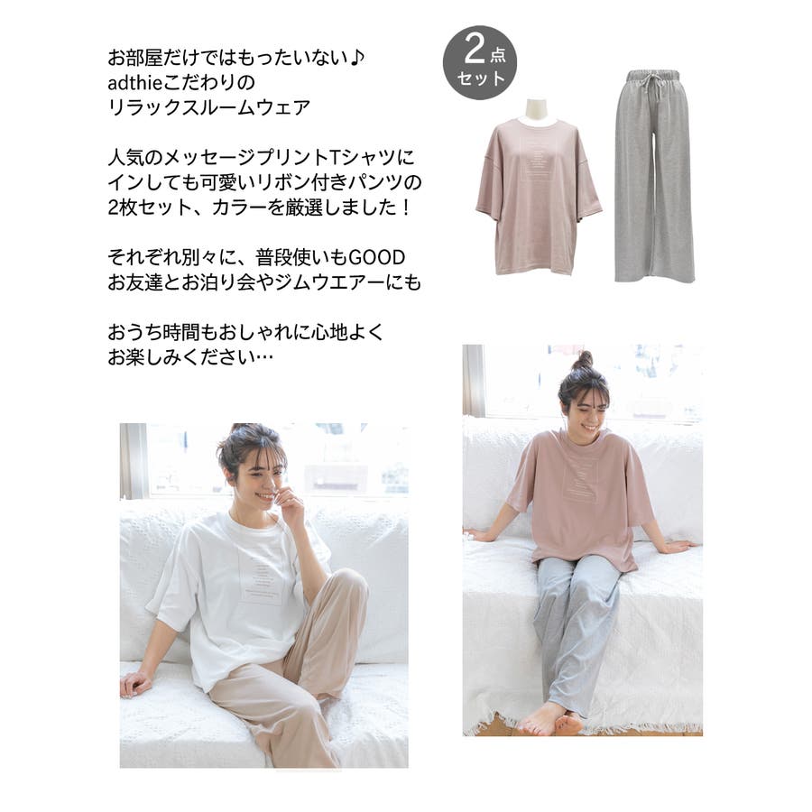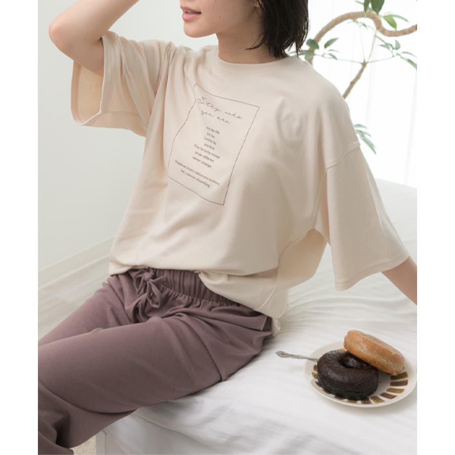 ロゴTとパンツのセットになったルームウェアでお家でリラックスタイムはもちろん旅行先にもおすすめなデザイン!