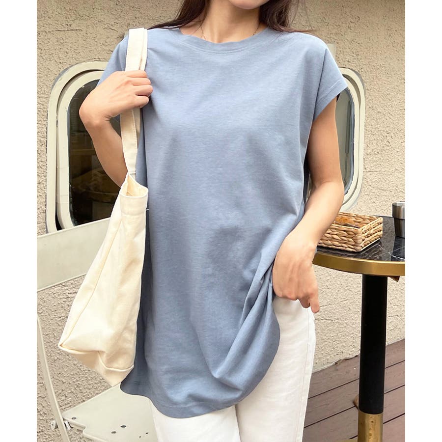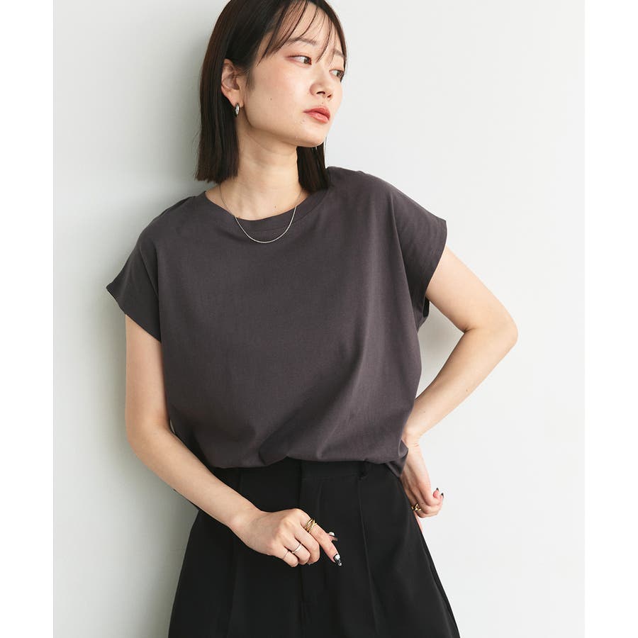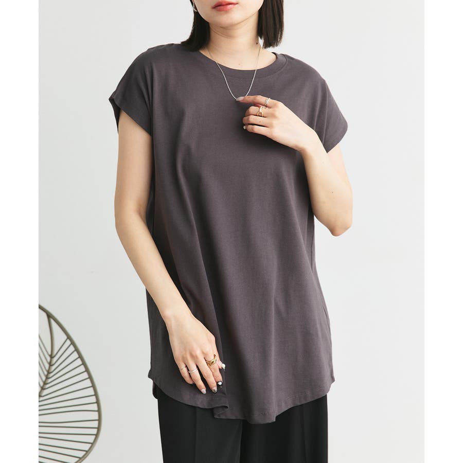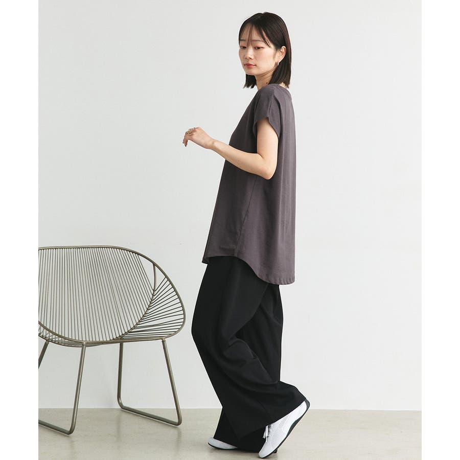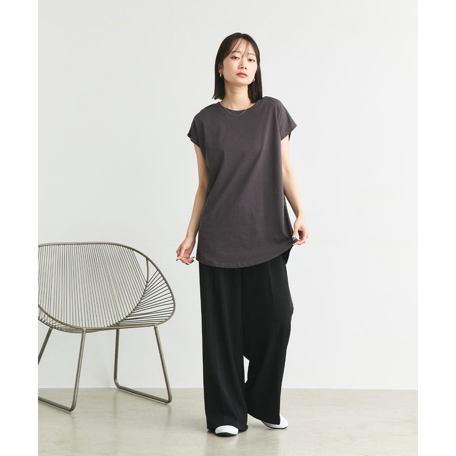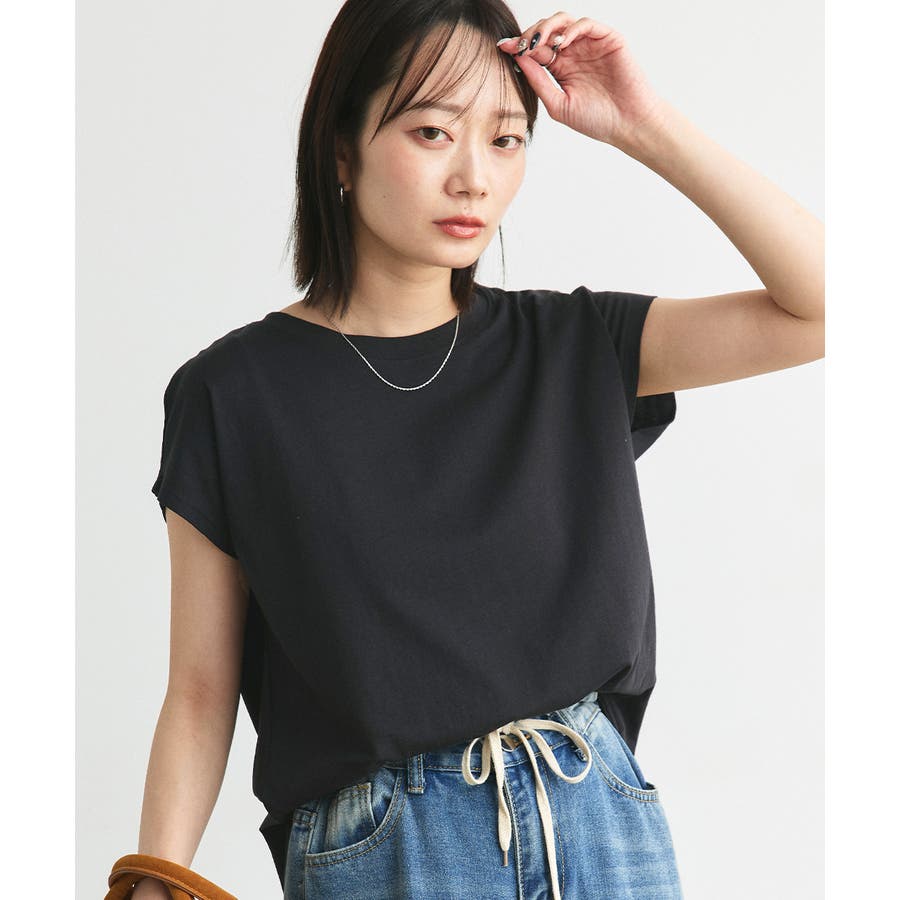 フレンチスリーブ 半袖Tシャツ ラウンド裾