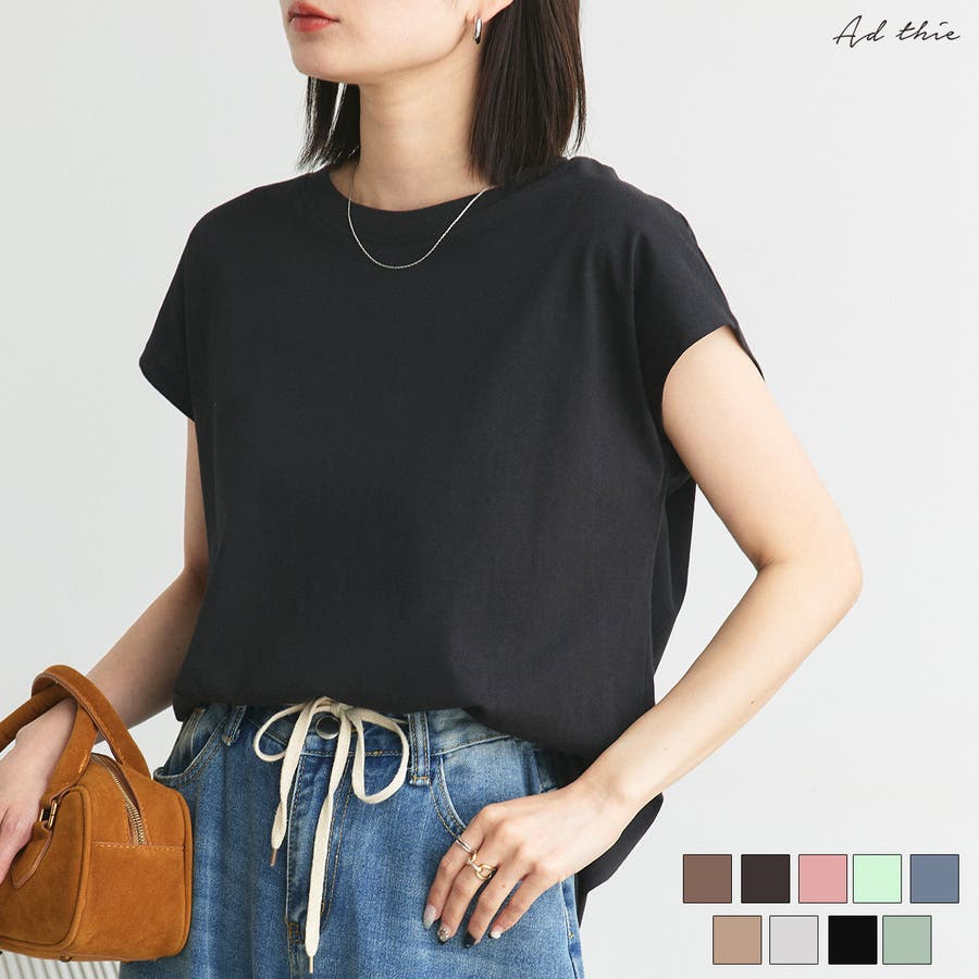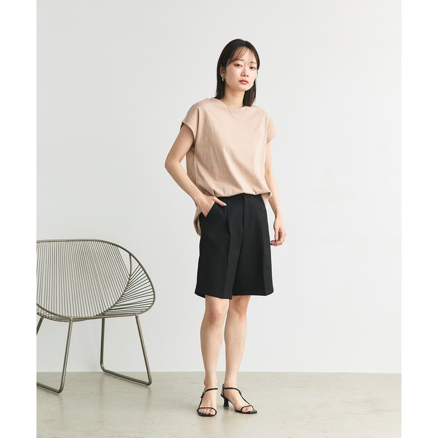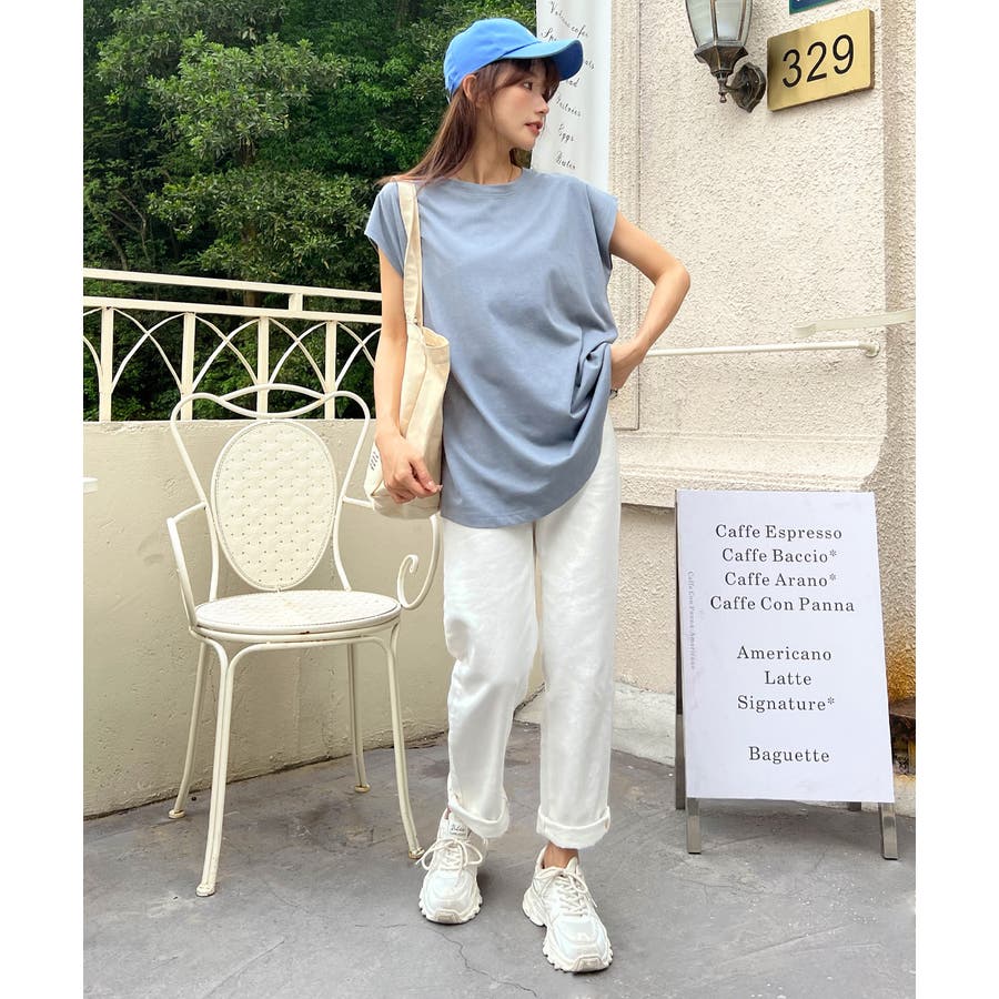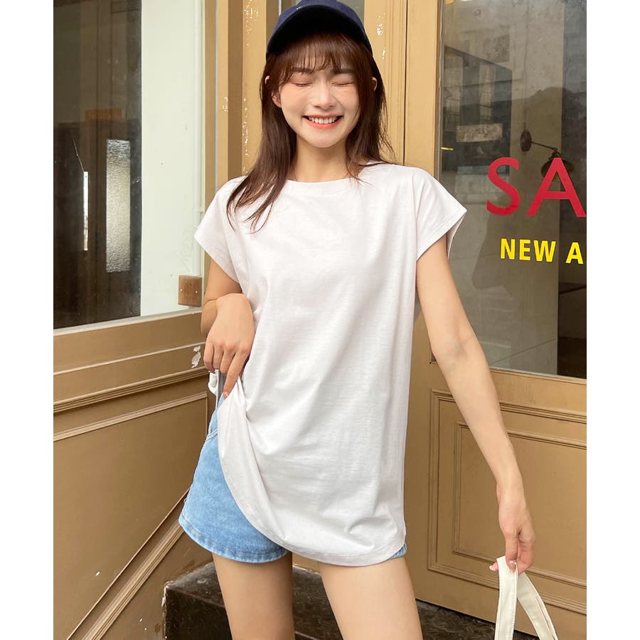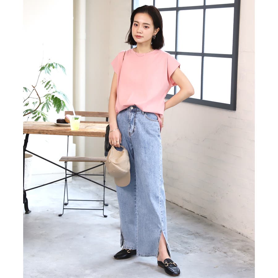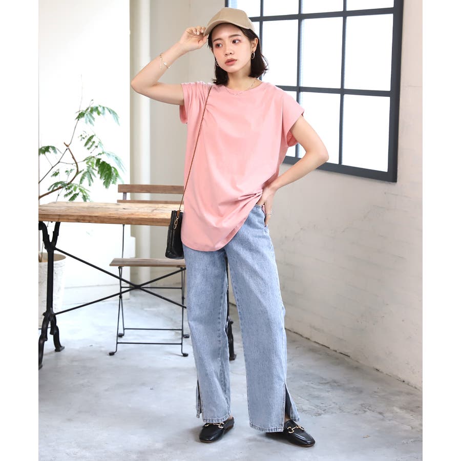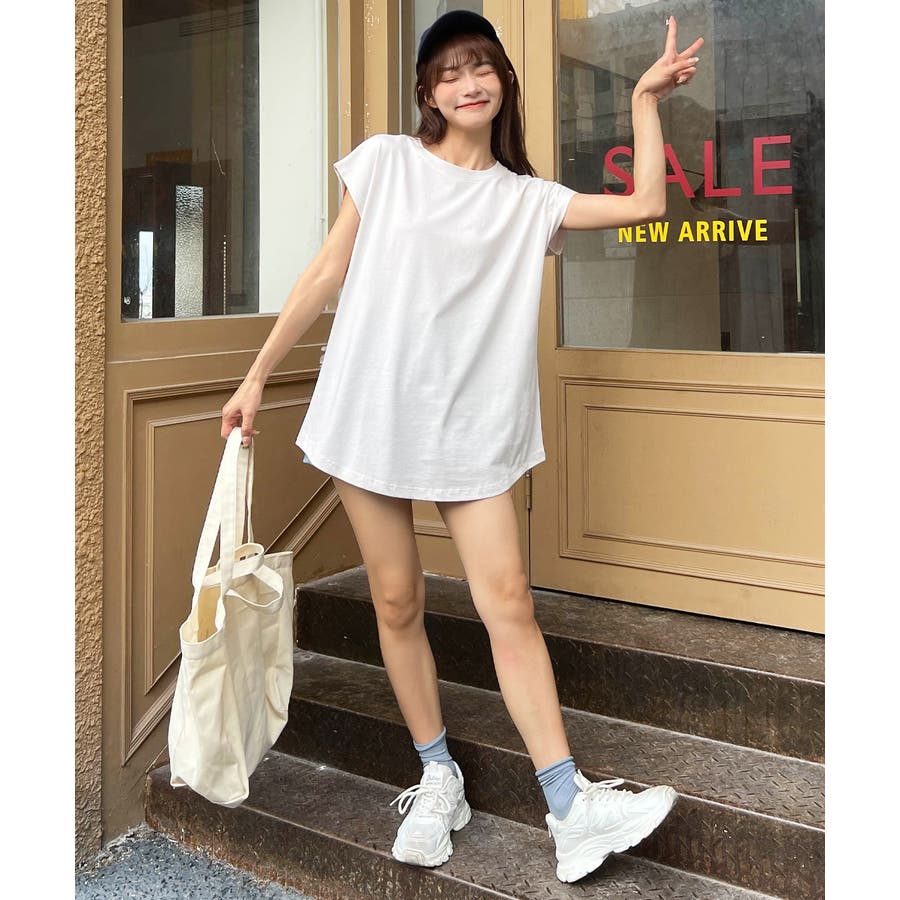 フレンチスリーブ 半袖Tシャツ ラウンド裾