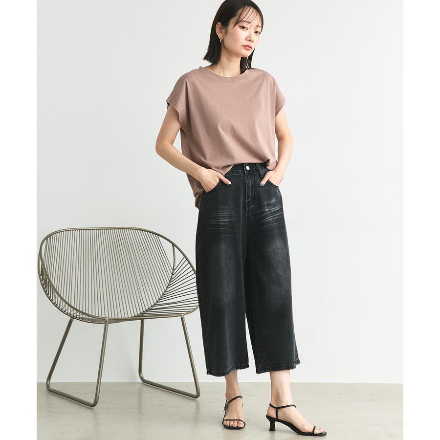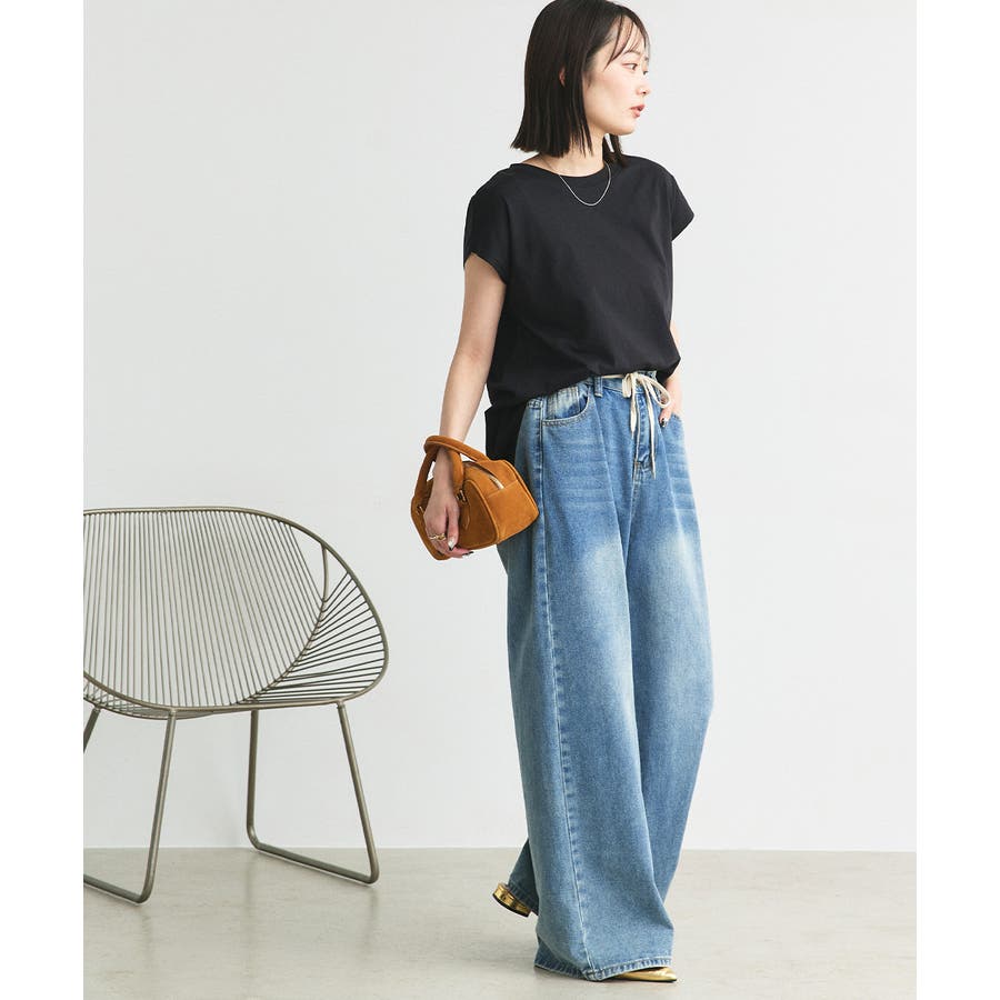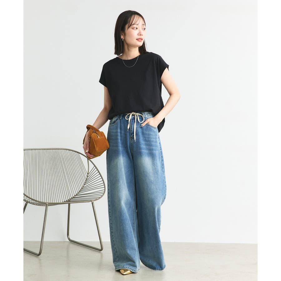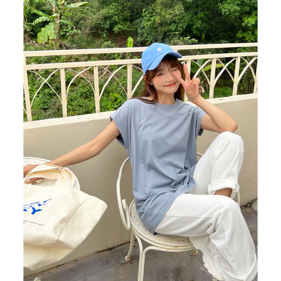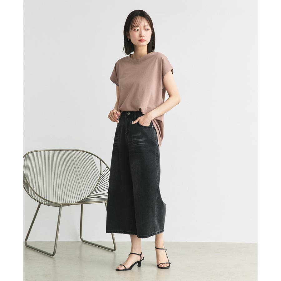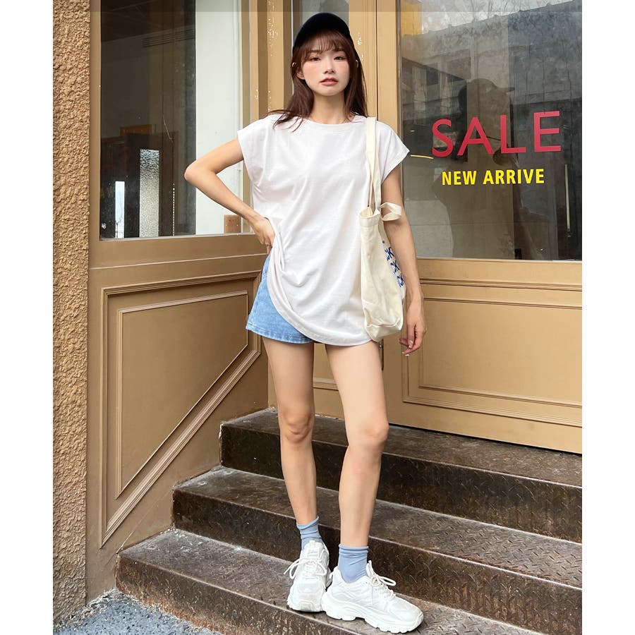 フレンチスリーブ 半袖Tシャツ ラウンド裾