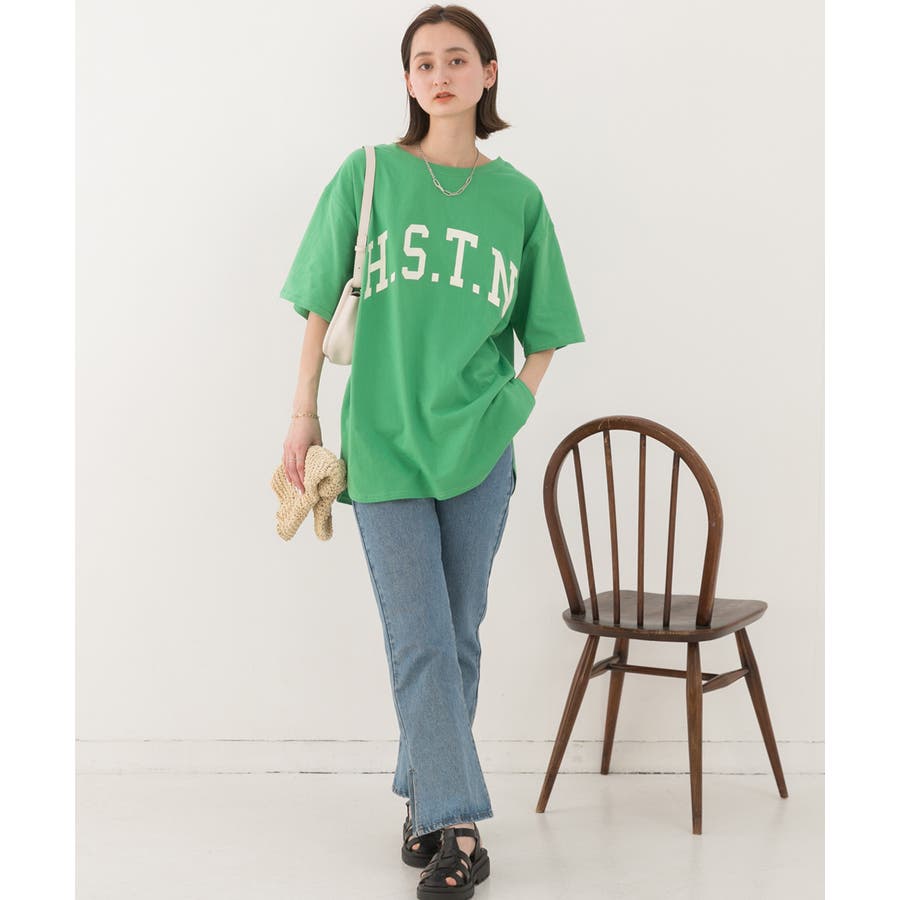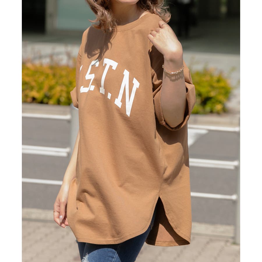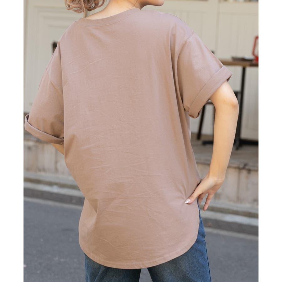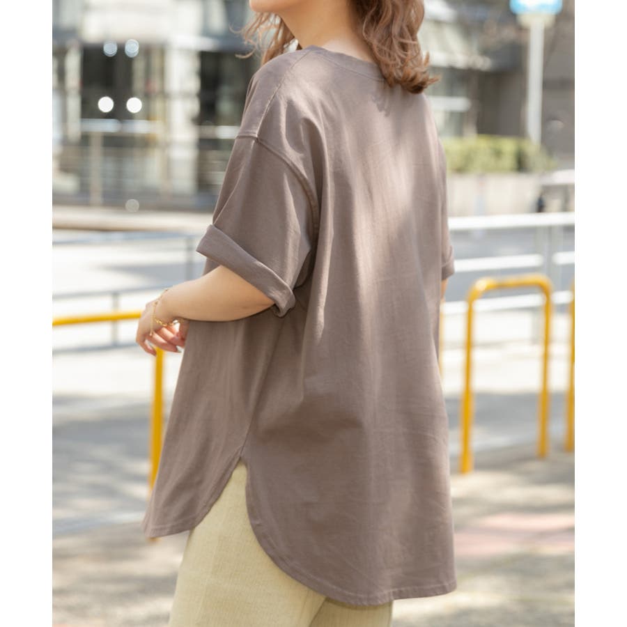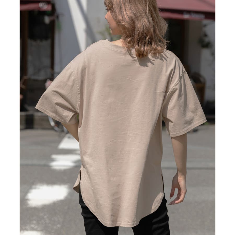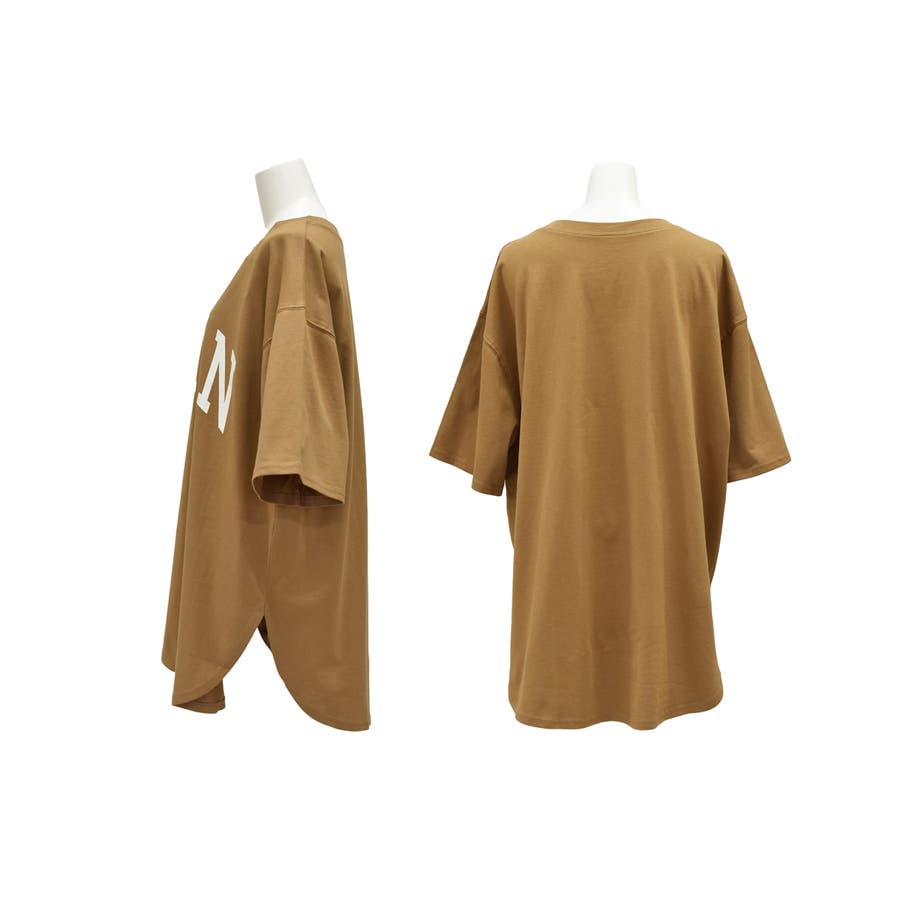 着丈長めのラウンドデザインなので一枚でロゴを見せてもニットやスエットのインナーとしても◎