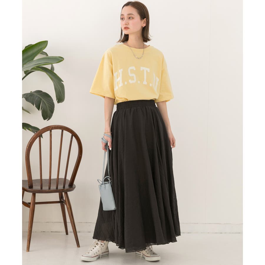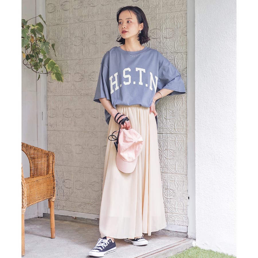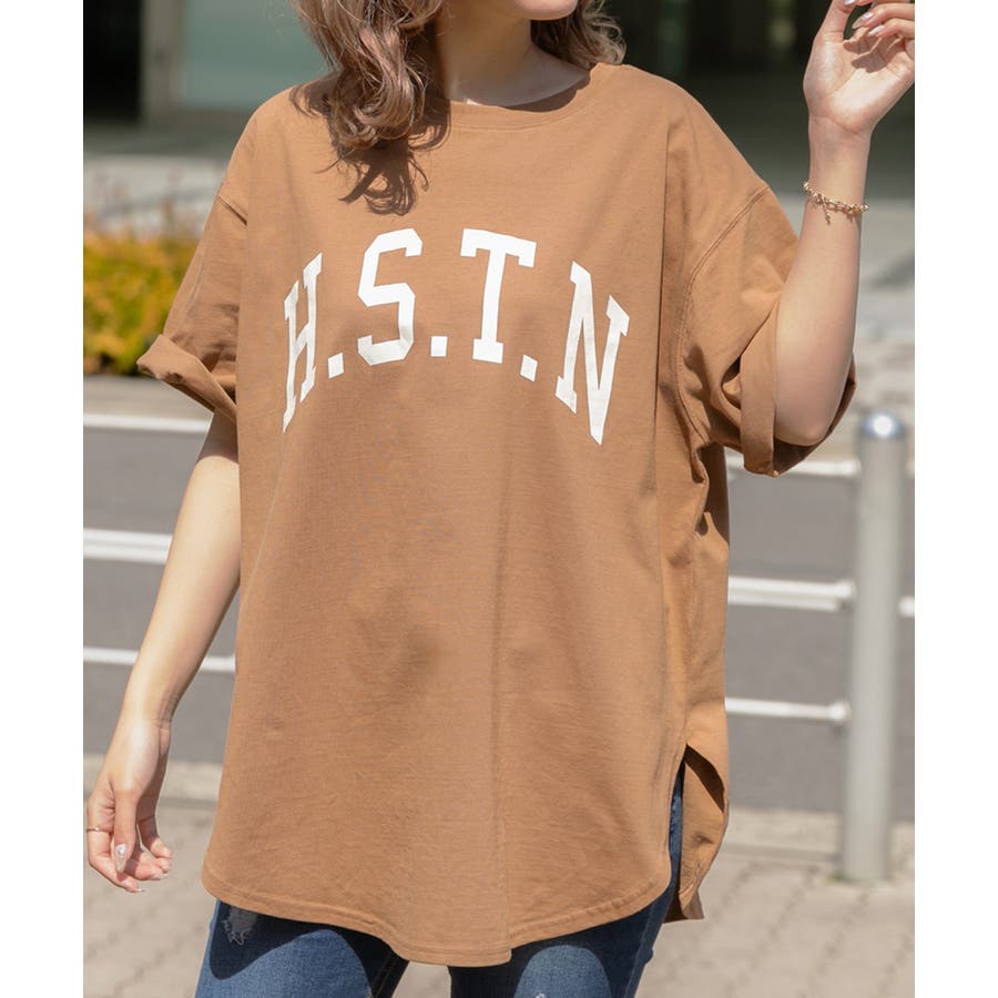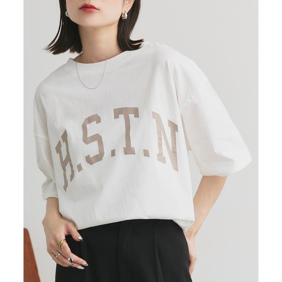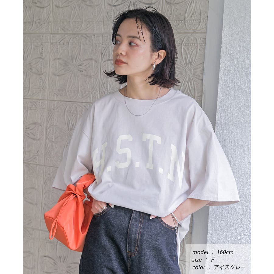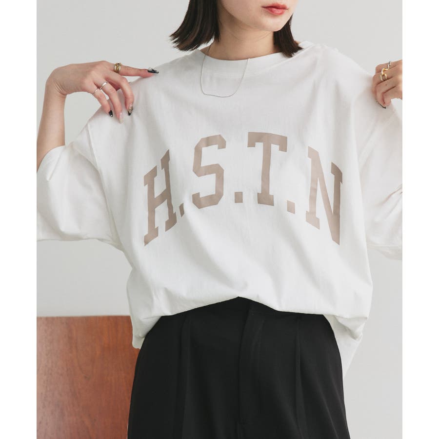 着丈長めのラウンドデザインなので一枚でロゴを見せてもニットやスエットのインナーとしても◎
