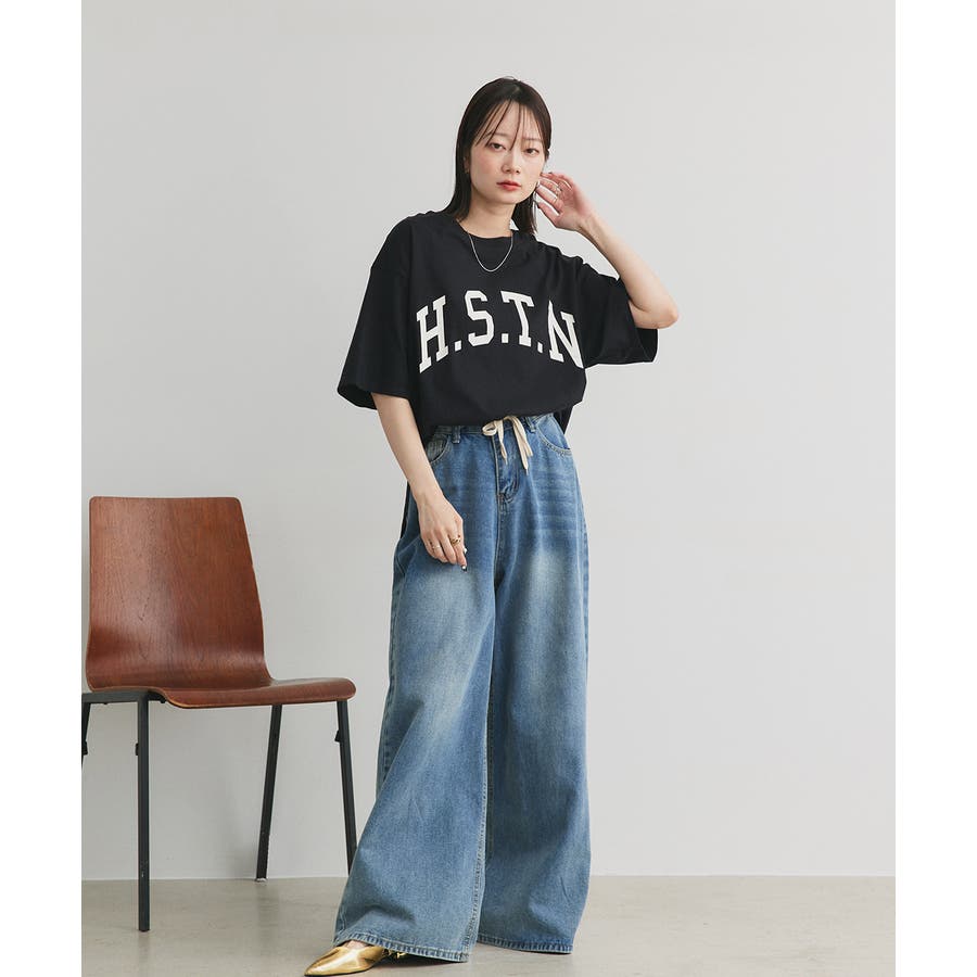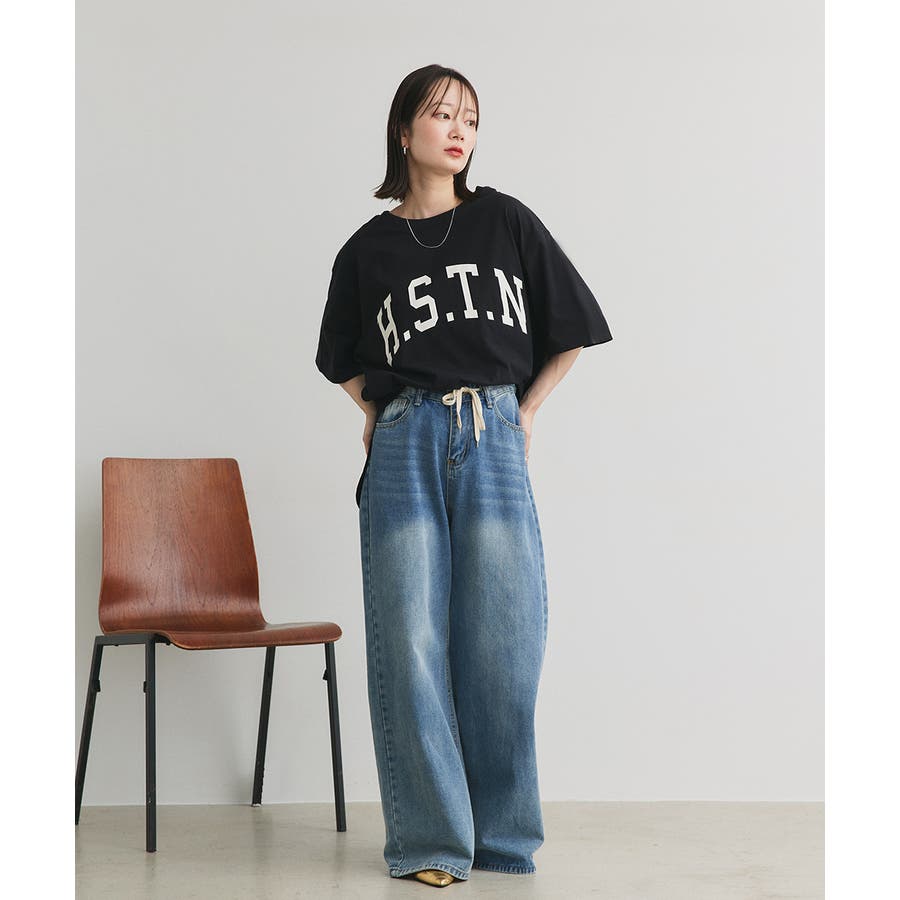 デニムパンツとの相性は抜群!大きめのロゴが一番デニム合わせが引き立ちます!