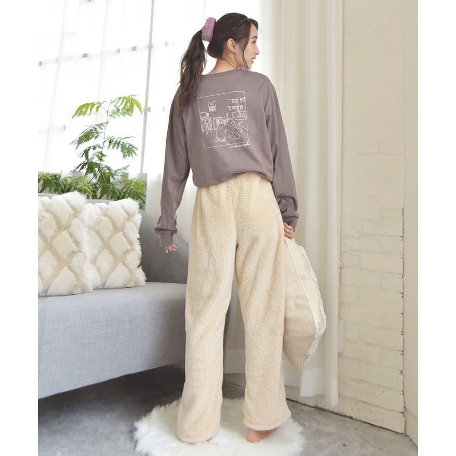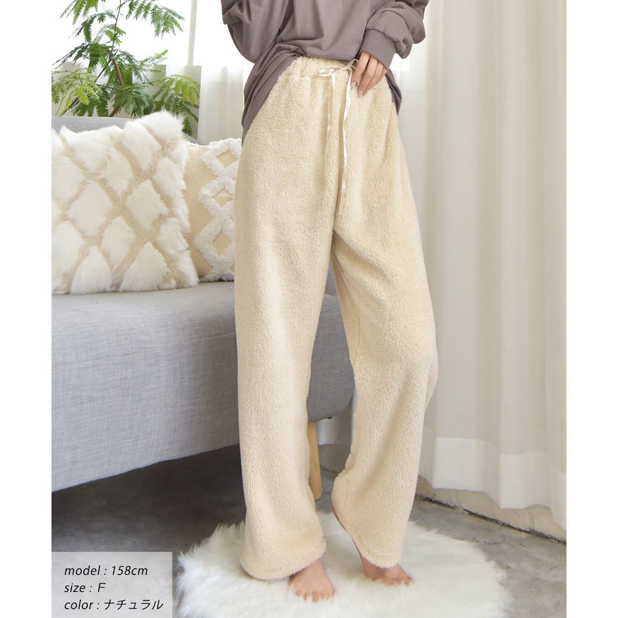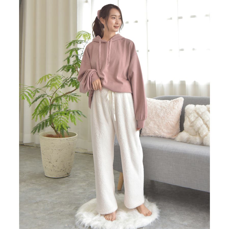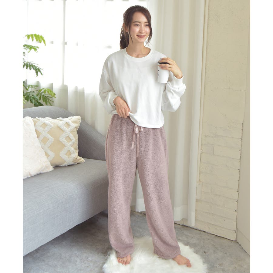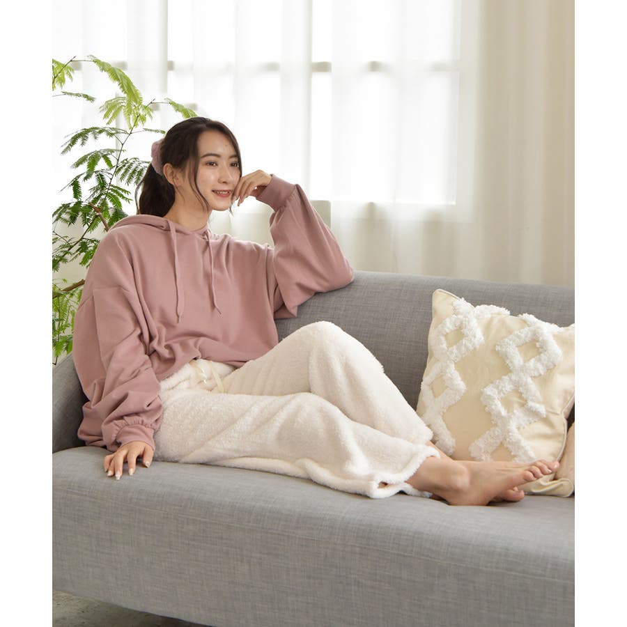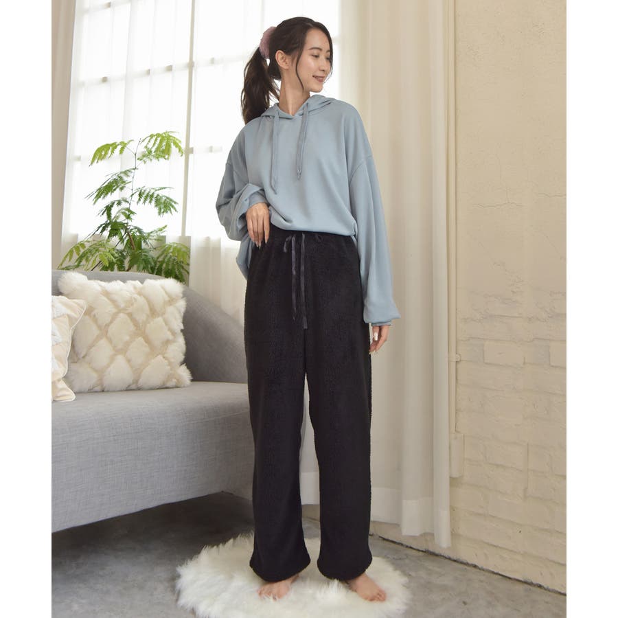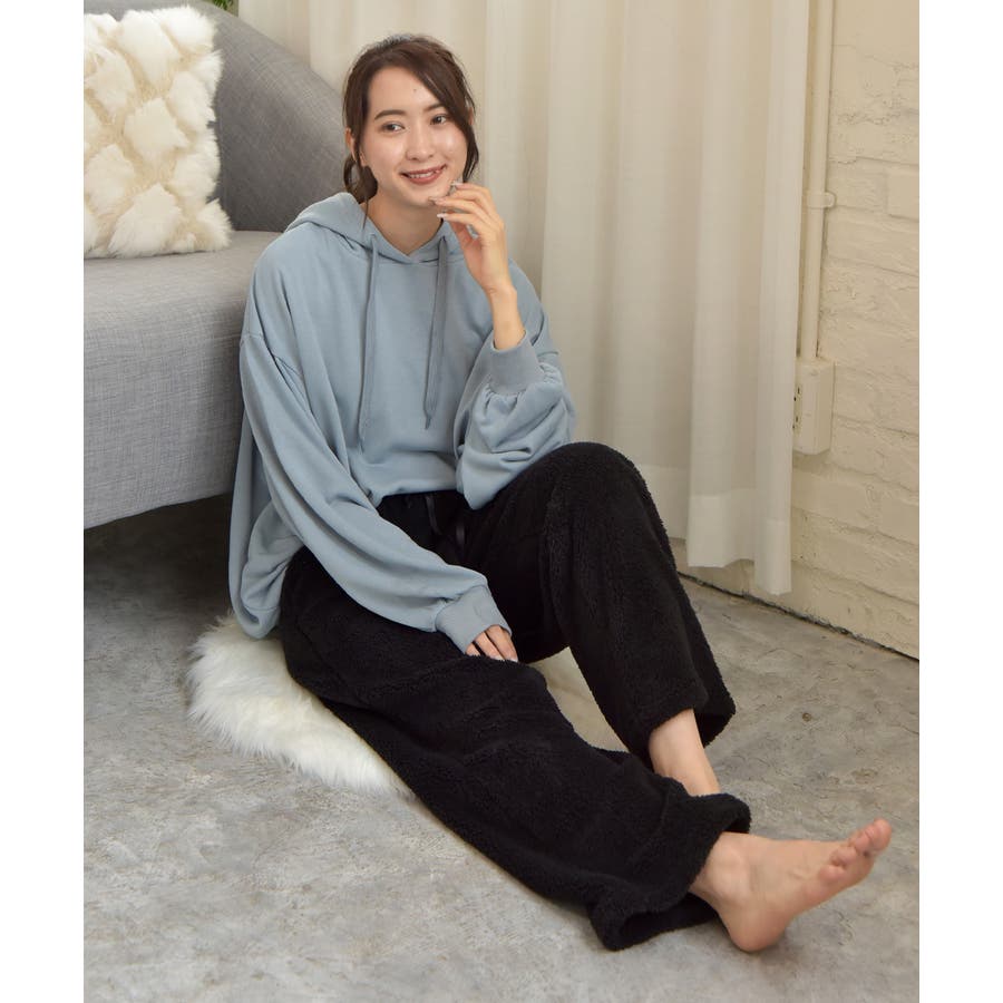 ウエスト部分にリボンがついているので、おうち時間も可愛く過ごせる