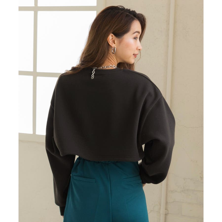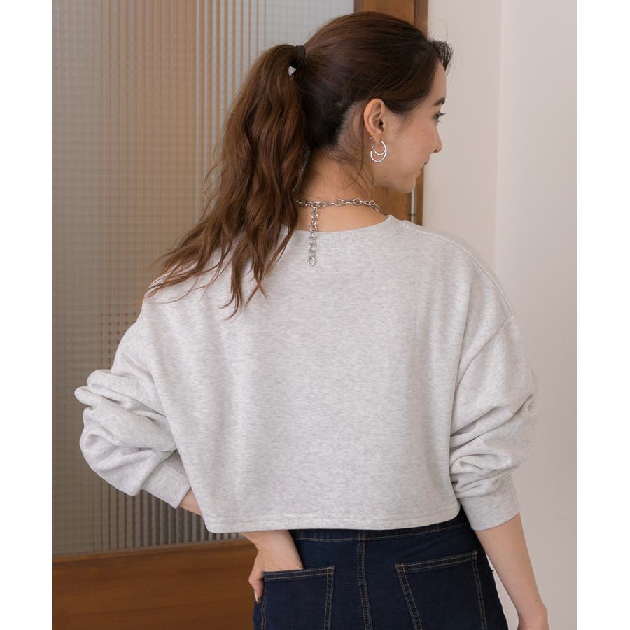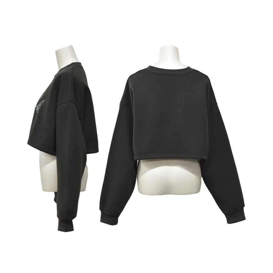 【チャコール】裏起毛ショート丈プルオーバー スウェット 刺繍