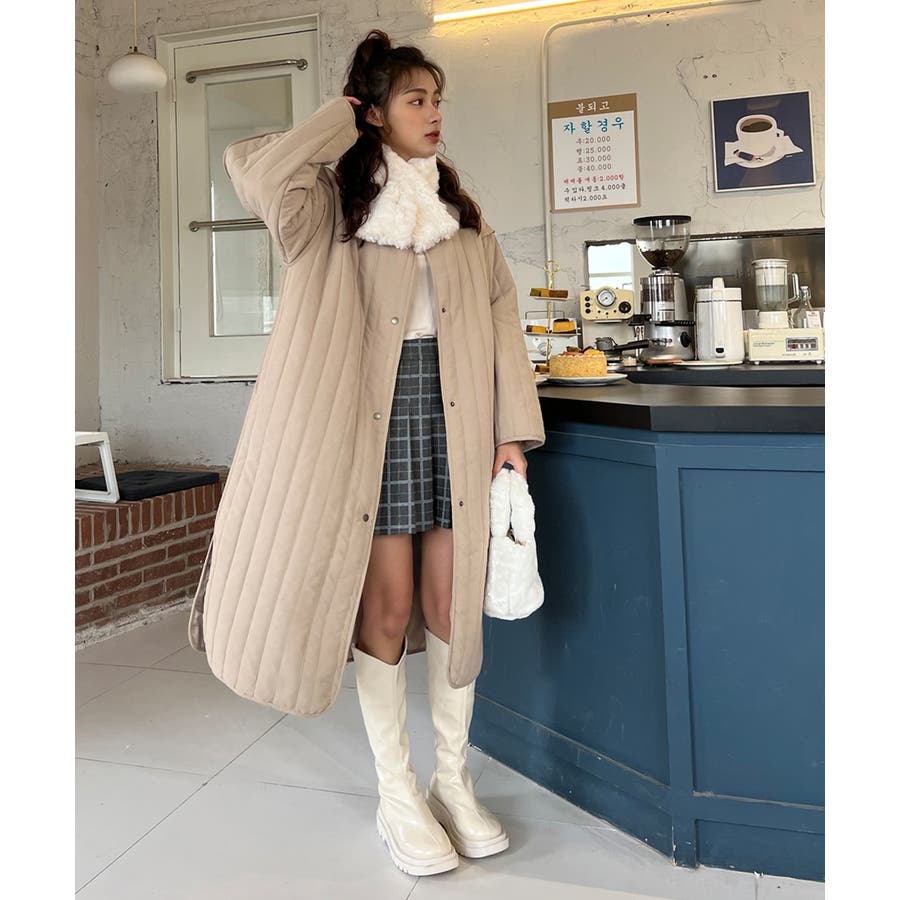 【関連キーワード】秋 秋コーデ 秋ファッション 秋服 冬 冬コーデ 冬ファッション 冬服 カジュアル カジュアルコーデ 大人 大人カジュアル オフィスカジュアル オフィス オフィスファッション オフィススタイル 韓国 韓国ファッション 韓国コーデ プチプラ プチプラファッション レディース Y2K 量産型 キレイめ 綺麗め きれい きちんと アウター コート ロング ミディアム キルティング 中綿 エコダウン パイピング ピーチ ノーカラー あったか 軽い ゆったり かわいい レディース ノーカラーコート キルティングコート キルティング アウター 冬アウター 春アウター ロング ロングアウター キルティングロング グリーン ベージュ アイボリー 白 黒 ブラック
