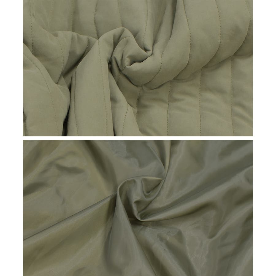 大きめシルエットですが、キルティングの縦の縫い目と丈の長さで縦長効果があると思います。