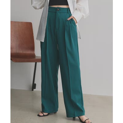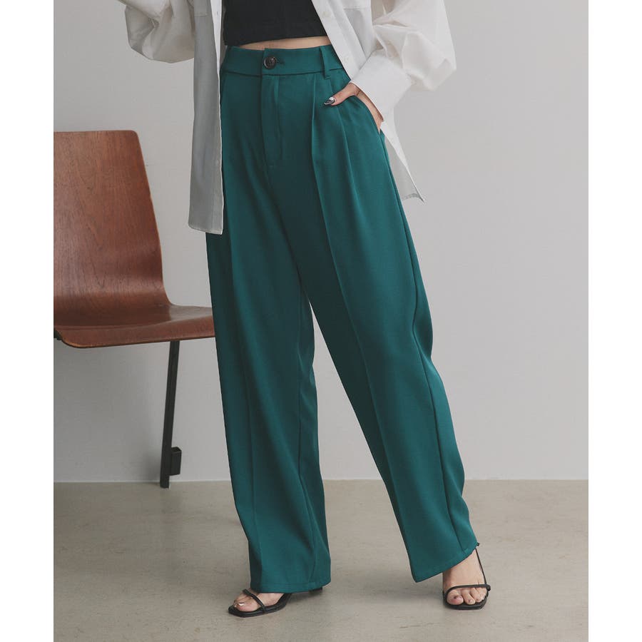 【ダークグリーン】ストレートパンツ センタープレス タック カラー ポケット 後ろゴム