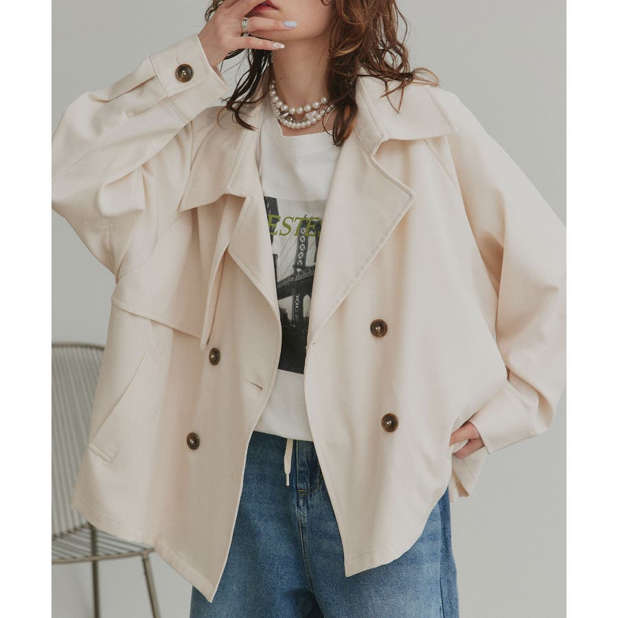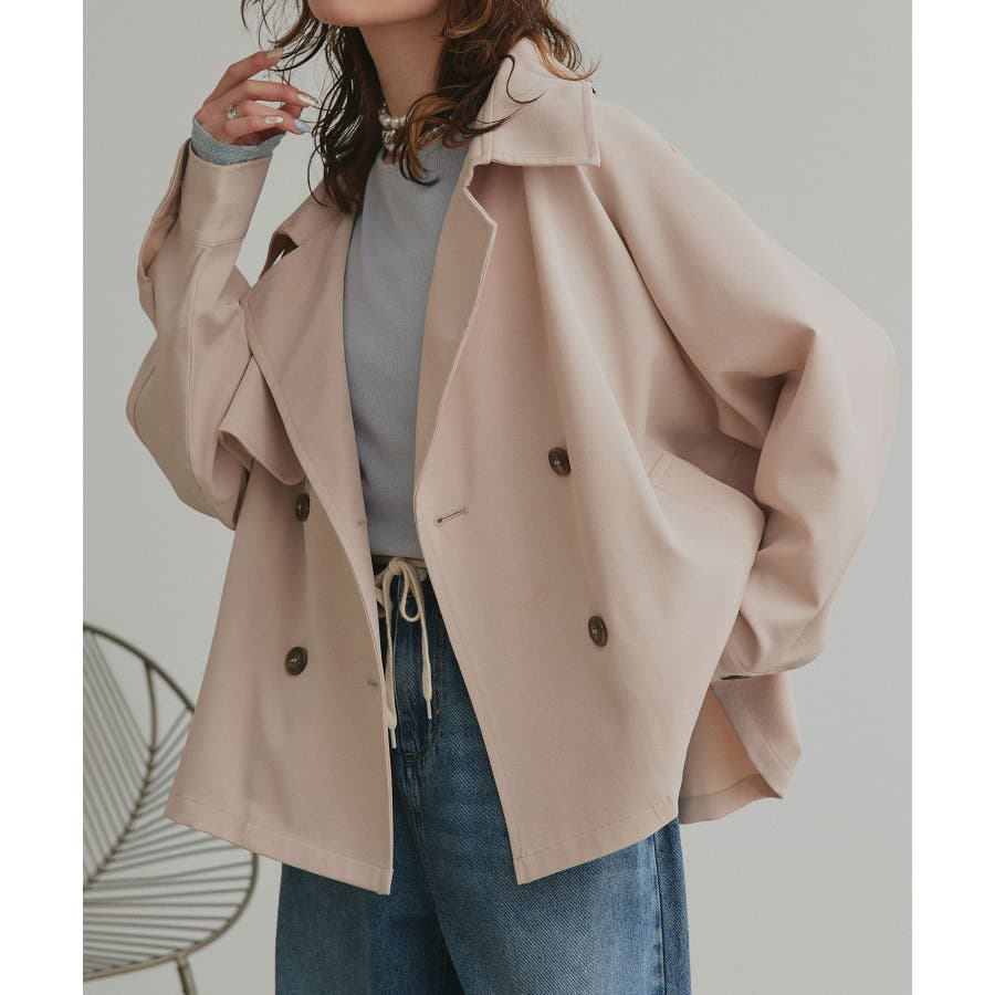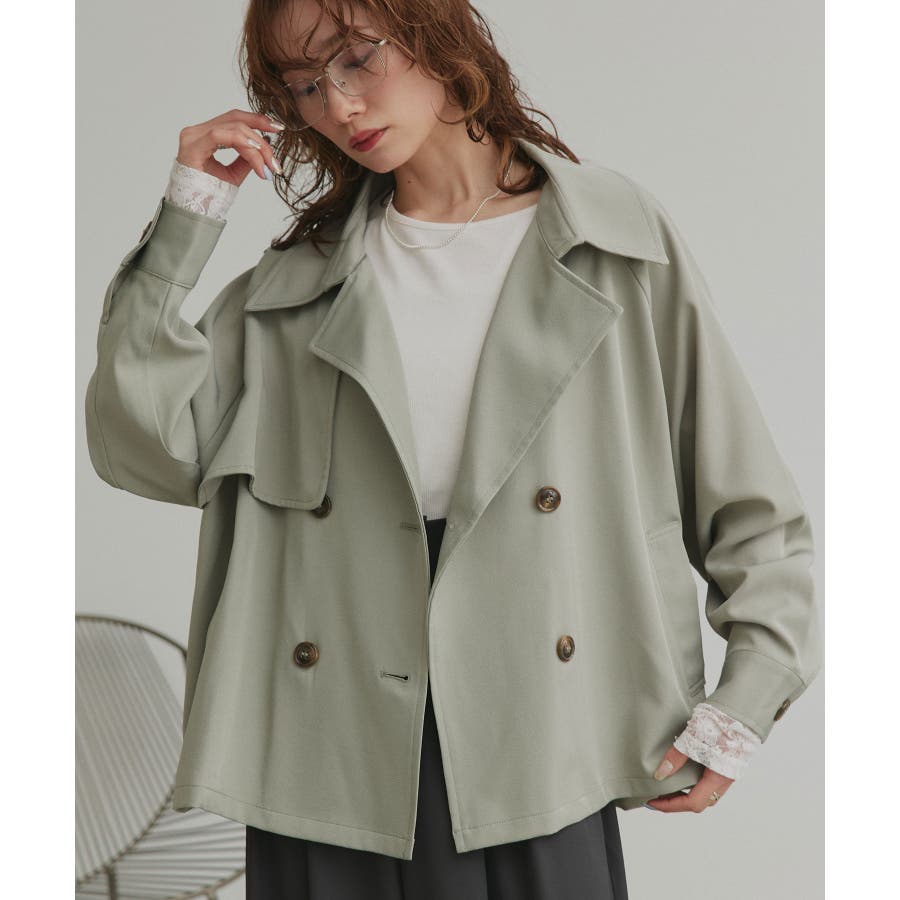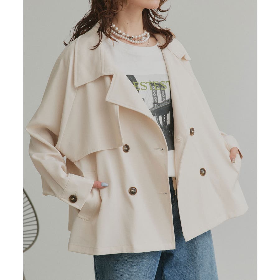 トレンチ ショート ショート丈 ショート丈トレンチ ラグラン ラグランスリーブ 春 シンプル カジュアル カジュアルコーデ ゆったり 身幅ゆったり 楽ちん 楽 着やすい 羽織り 羽織 春アウター アウター 春コーデ スプリングコート オケージョン セレモニー 入卒