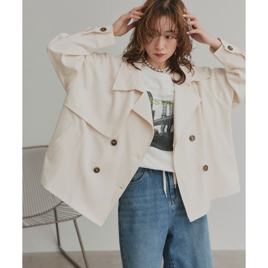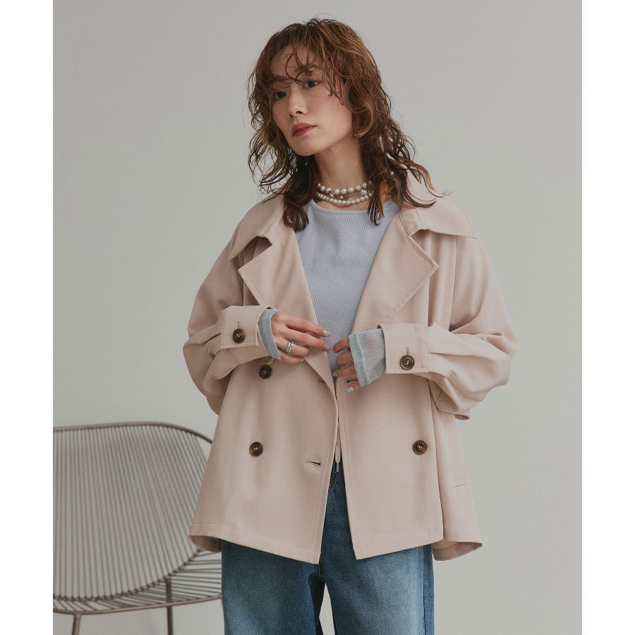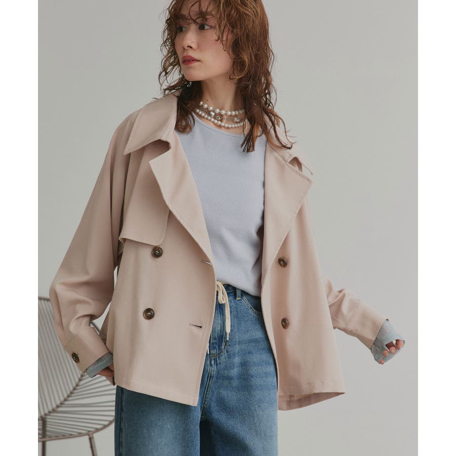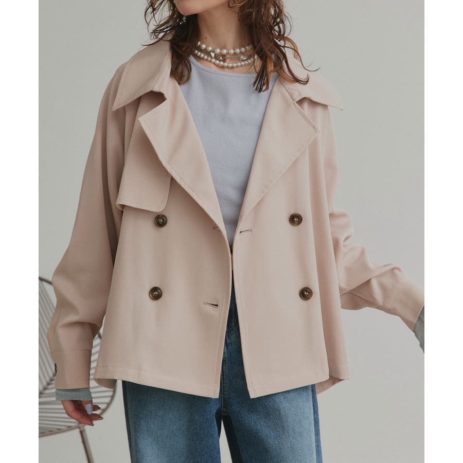 トレンチ ショート ショート丈 ショート丈トレンチ ラグラン ラグランスリーブ 春 シンプル カジュアル カジュアルコーデ ゆったり 身幅ゆったり 楽ちん 楽 着やすい 羽織り 羽織 春アウター アウター 春コーデ スプリングコート オケージョン セレモニー 入卒