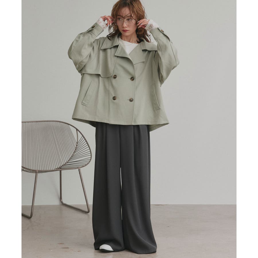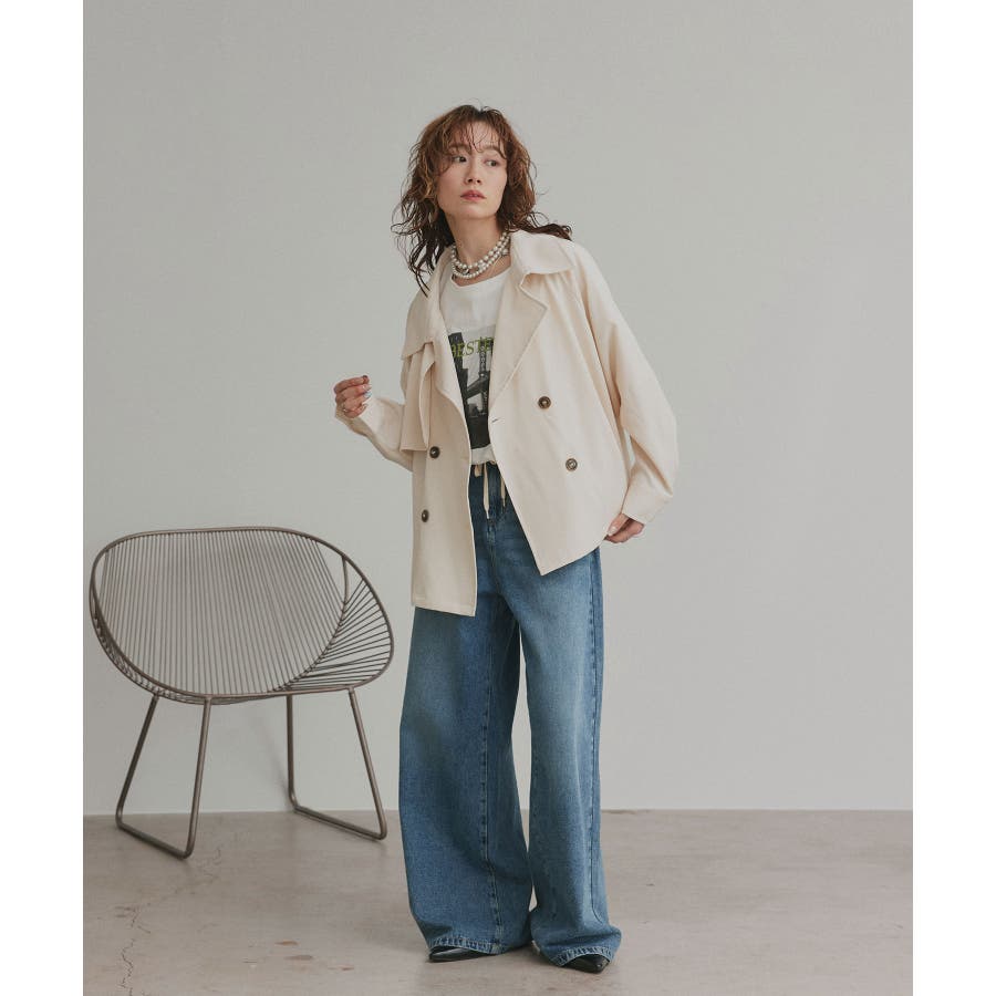 ショート丈のトレンチなのでパンツ合わせはもちろんスカートコーデともバランスがとりやすい◎