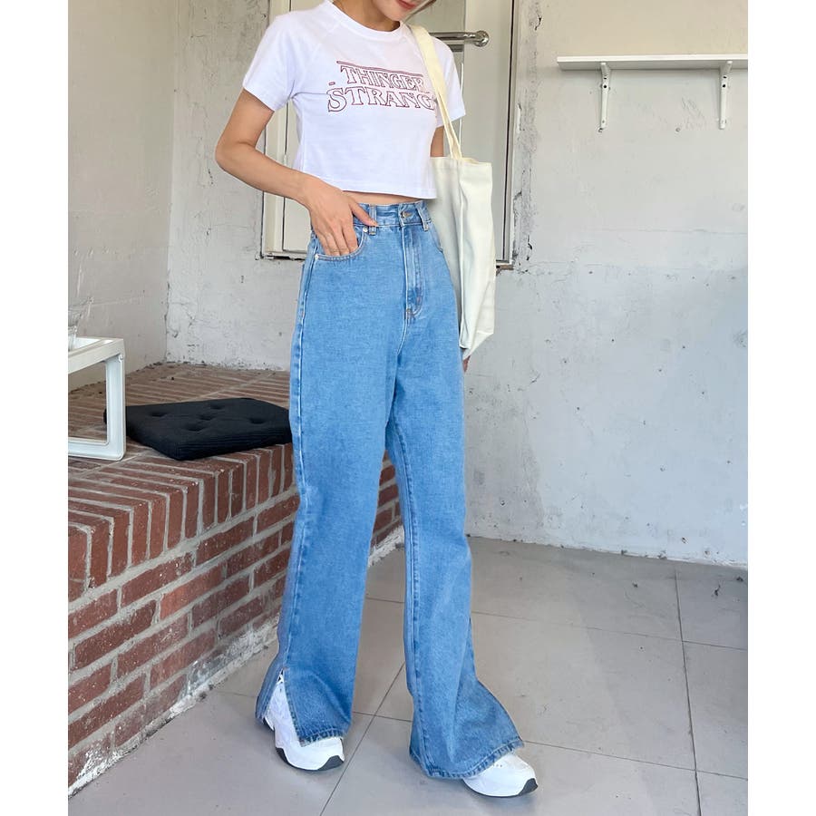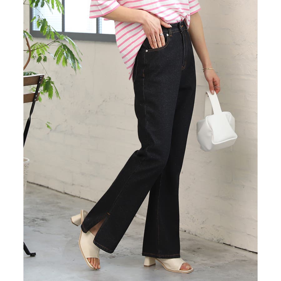 デニムパンツ サイドスリット ハイウエスト SML