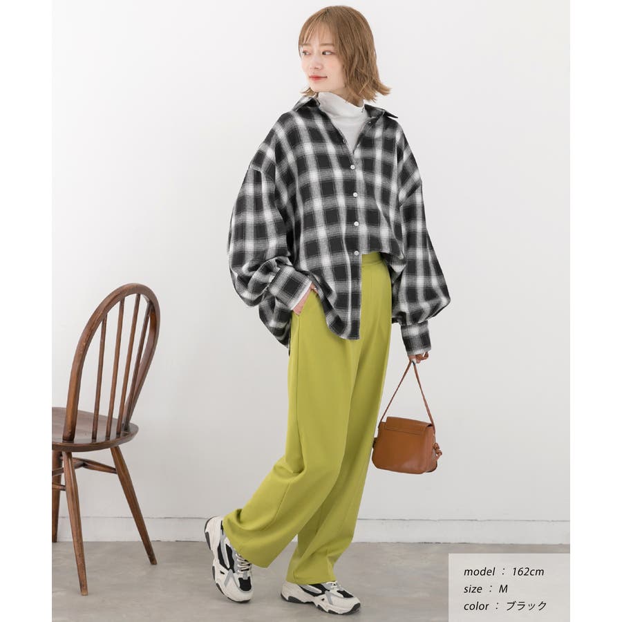 チェック柄がコーデのポイントになるなおでボトムスはシンプルに合わせて頂くのがおすすめ◎