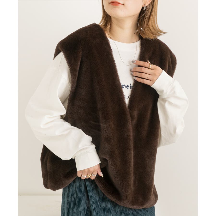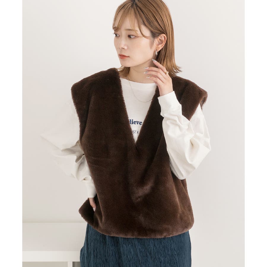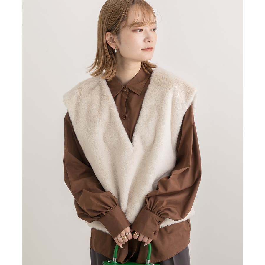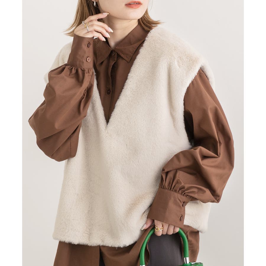 ふわっとしたエコファー生地で仕立てたレイヤードコーデに重宝するVネックベスト!