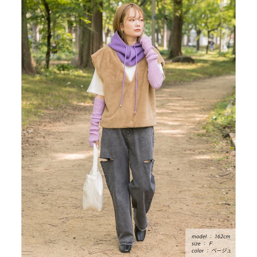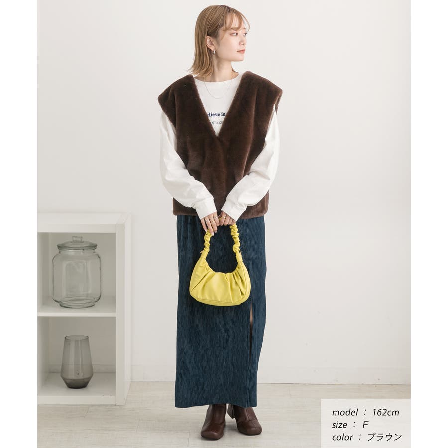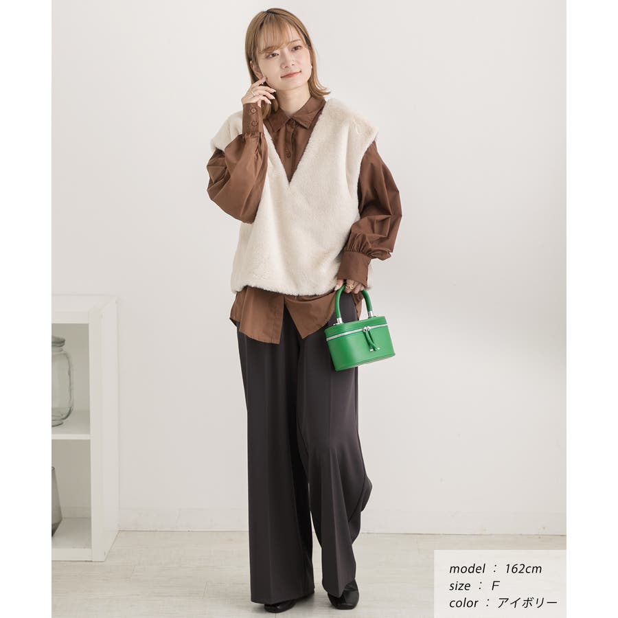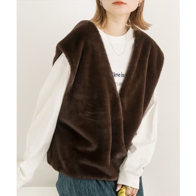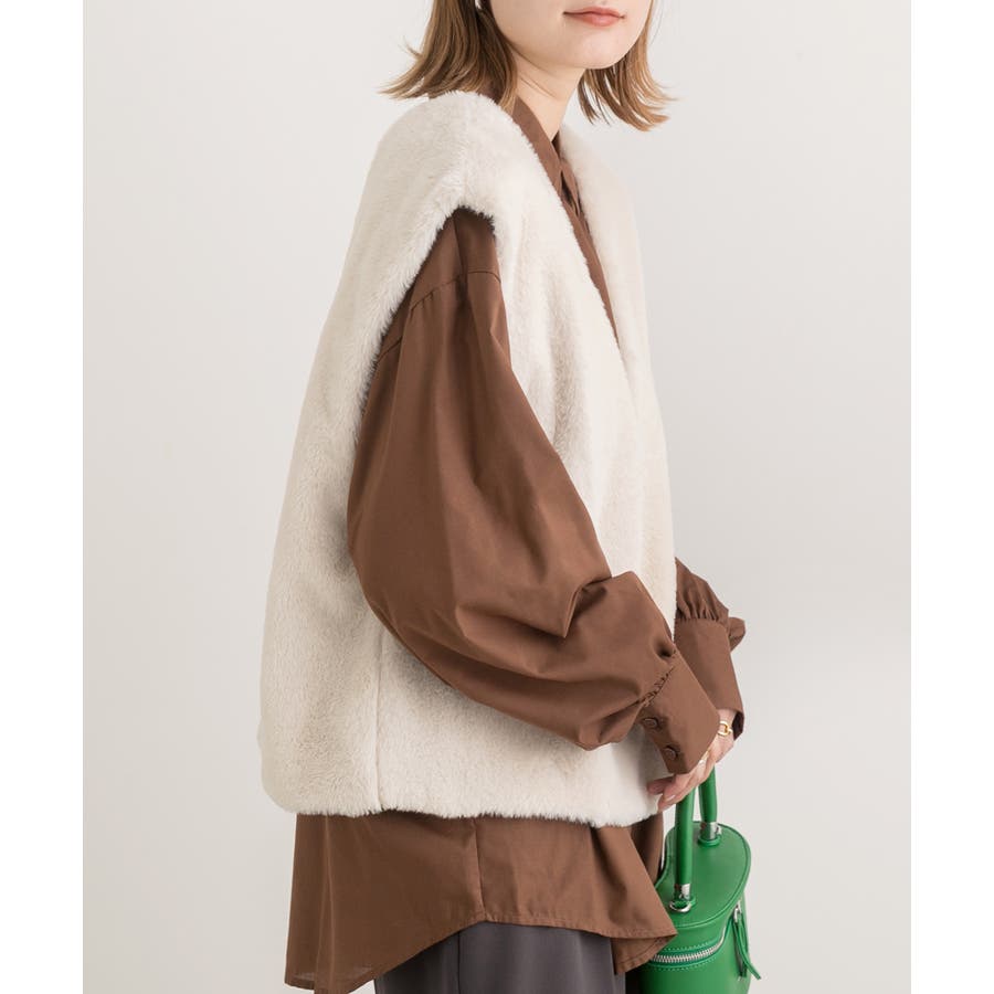 ふわっとしたエコファー生地で仕立てたレイヤードコーデに重宝するVネックベスト!