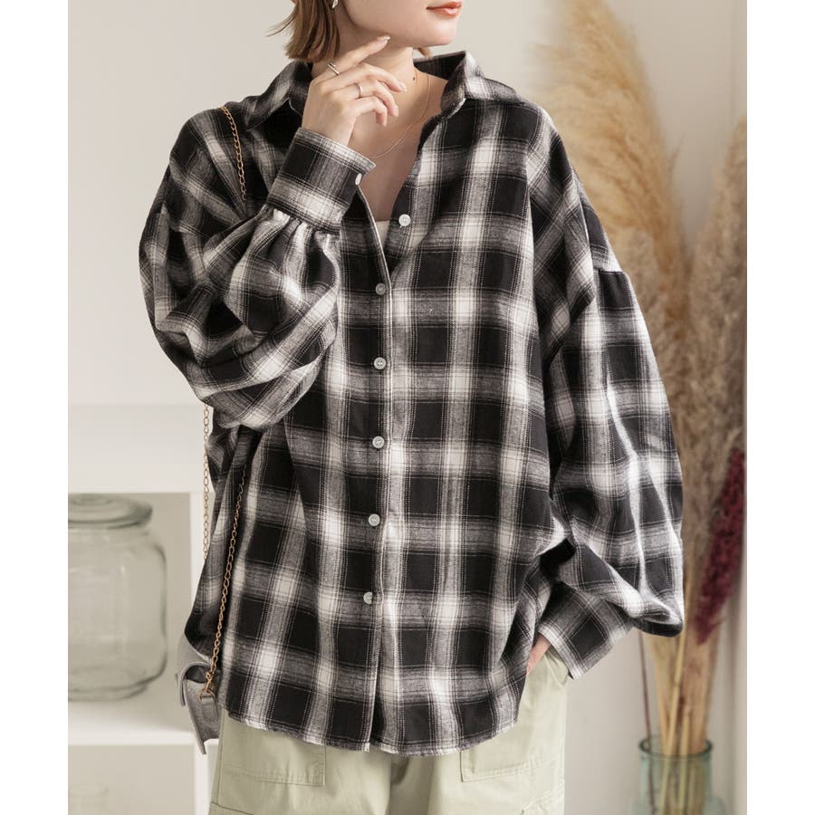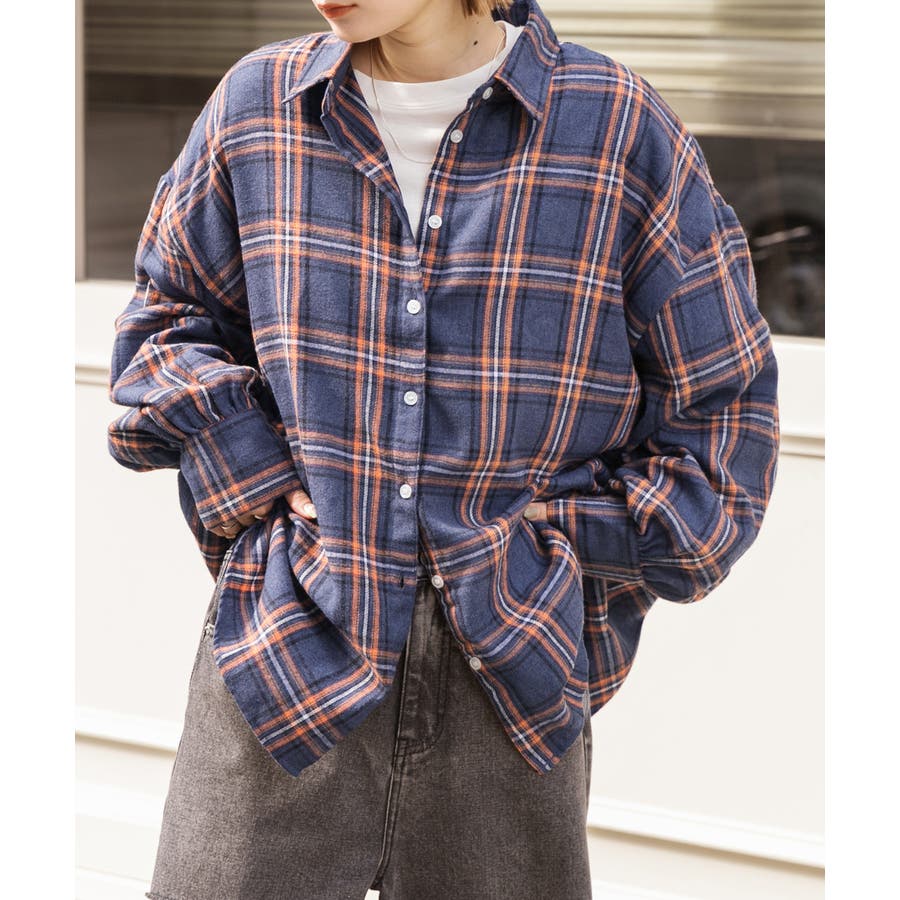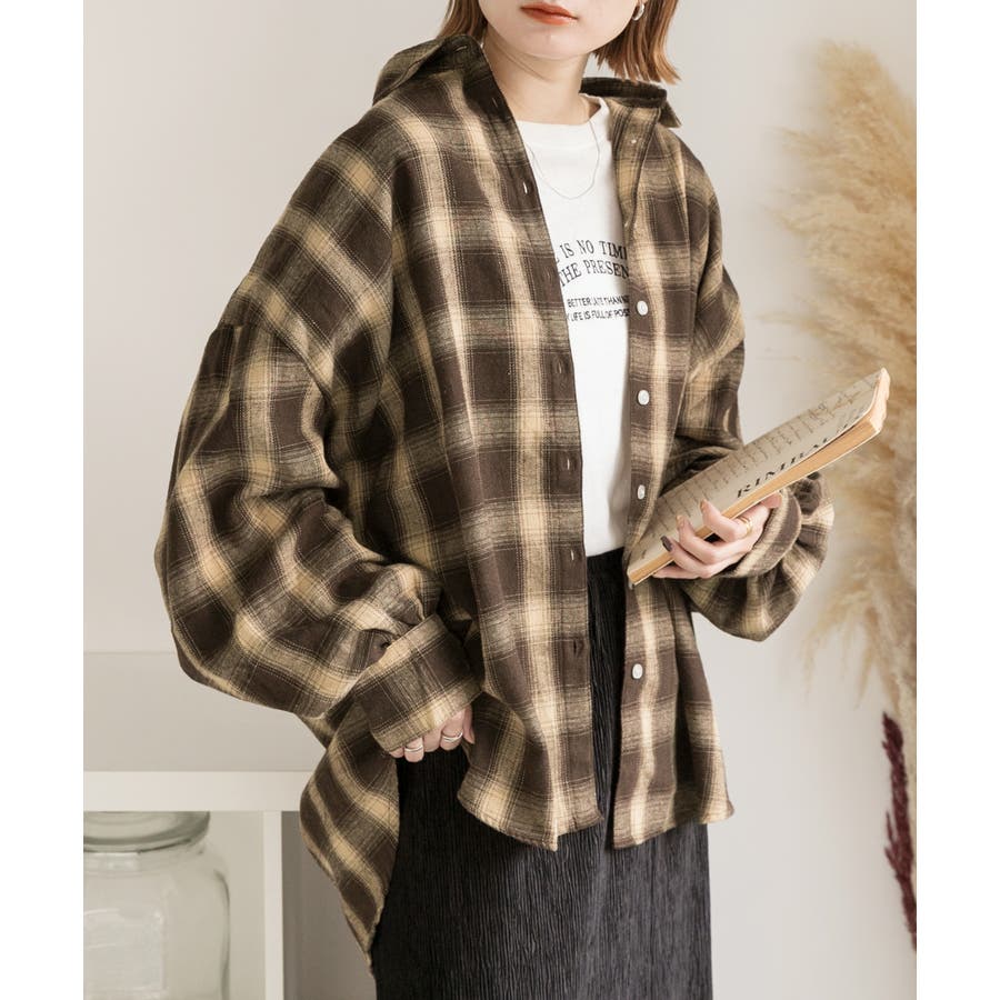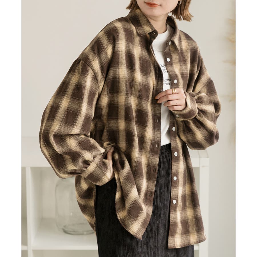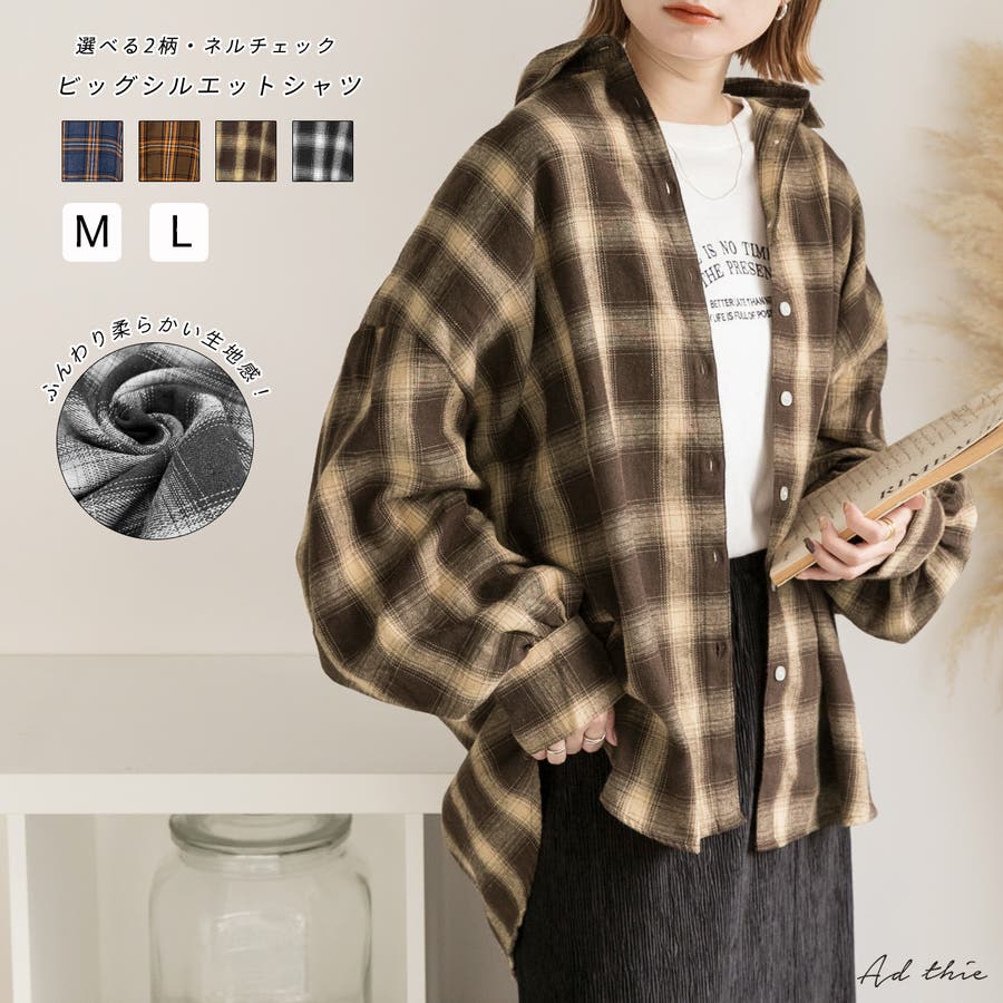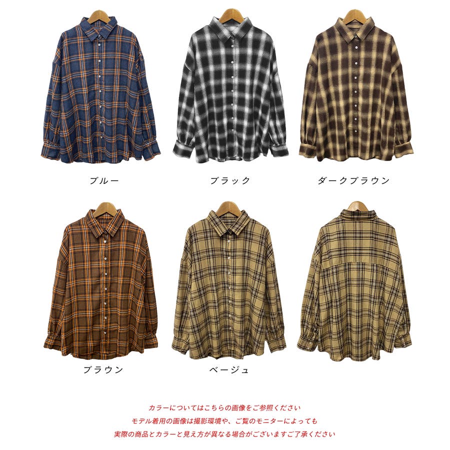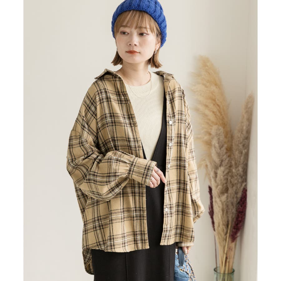 選べる2柄・ネルチェック ビッグシルエットシャツ