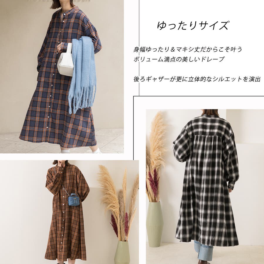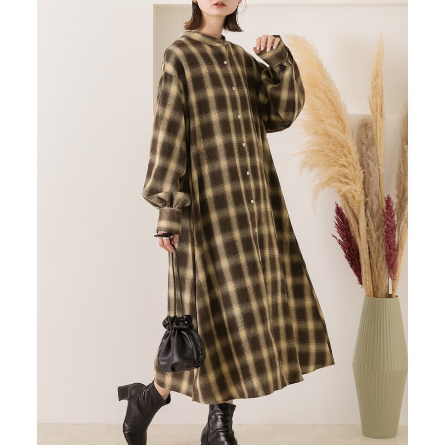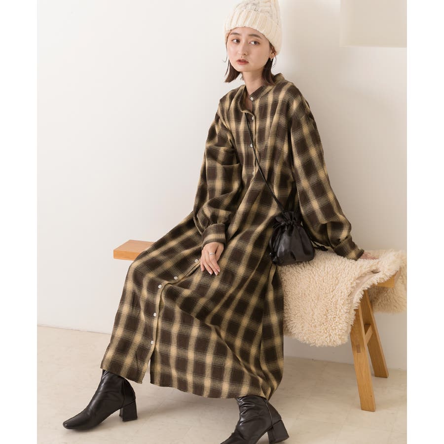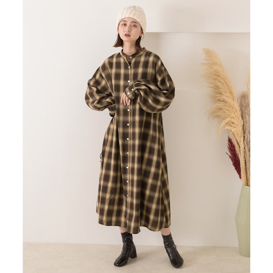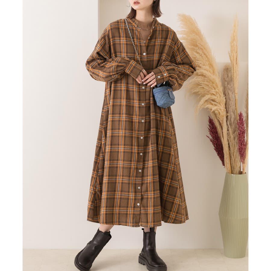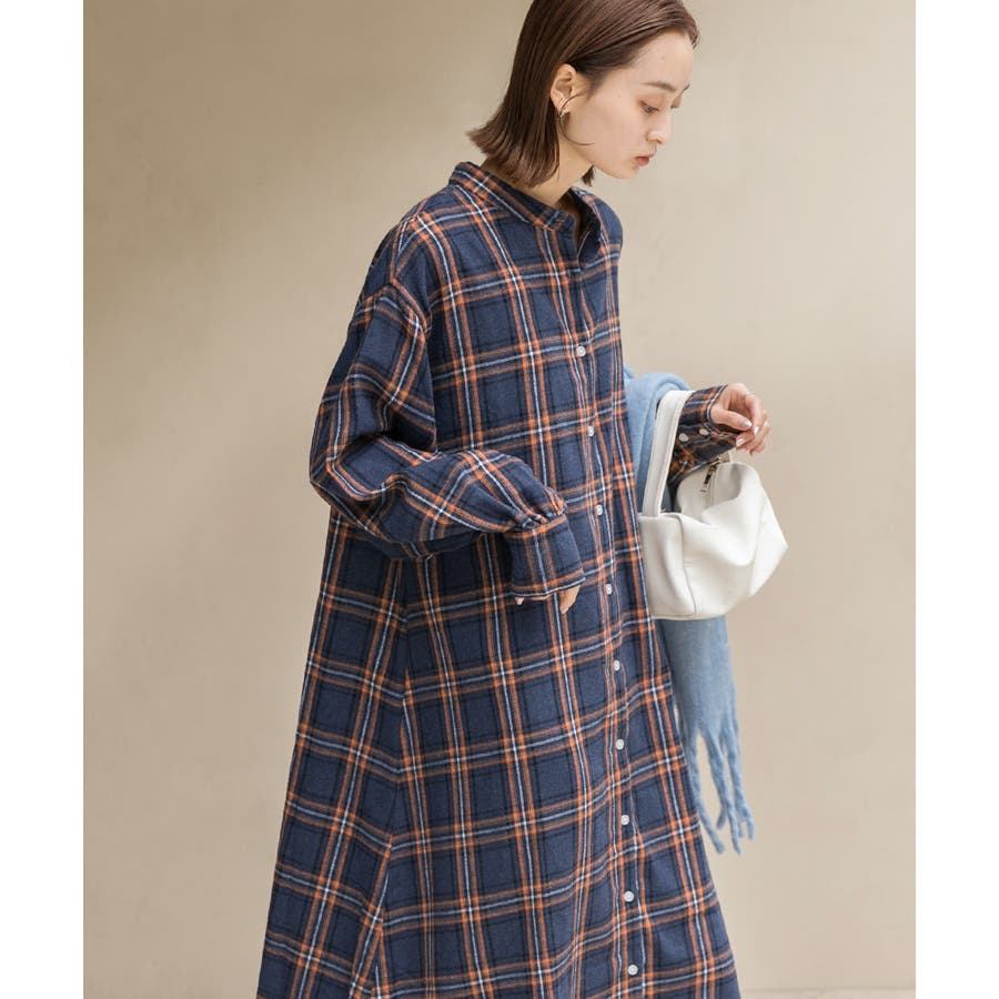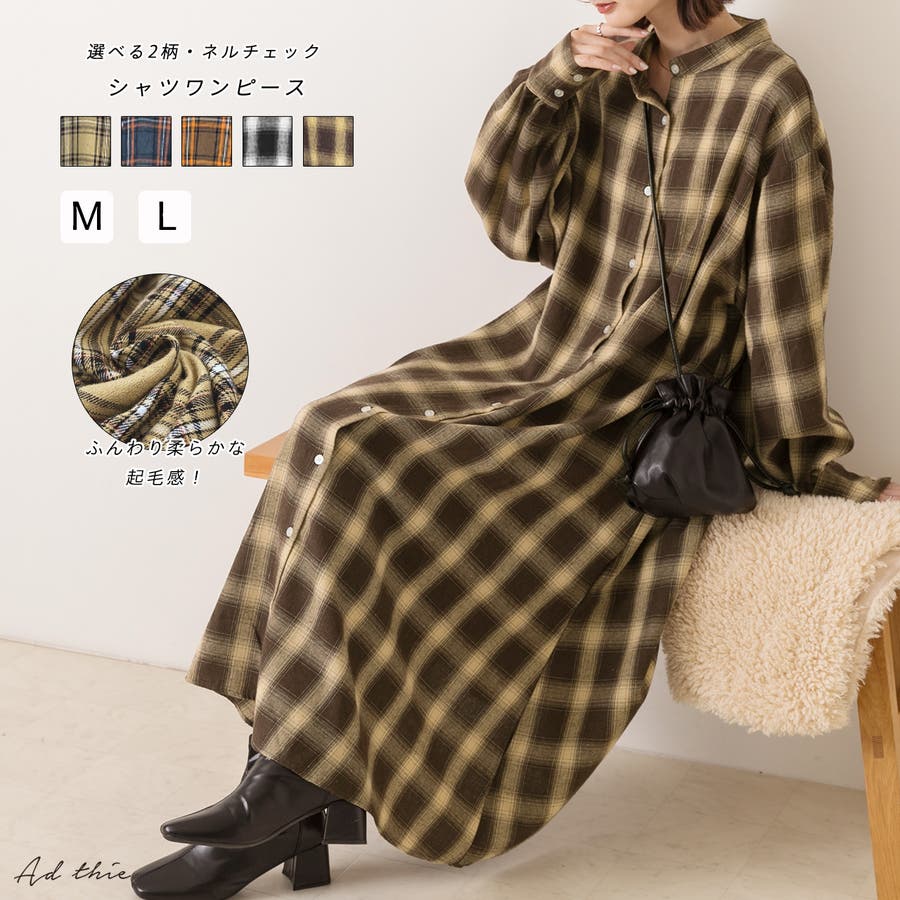 選べる2柄・ネルチェック シャツワンピース