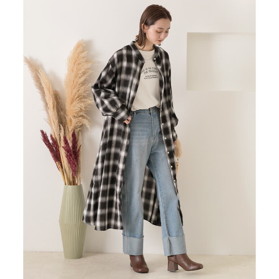女性らしいチェックシャツワンピース!