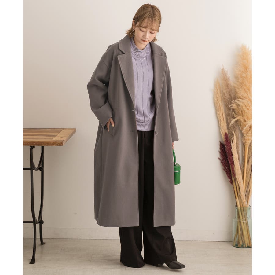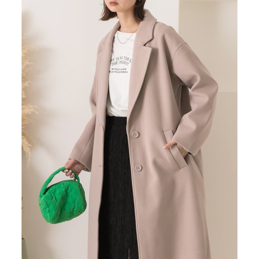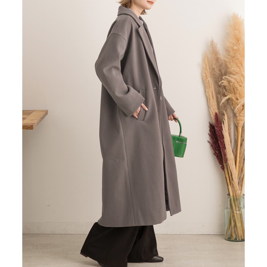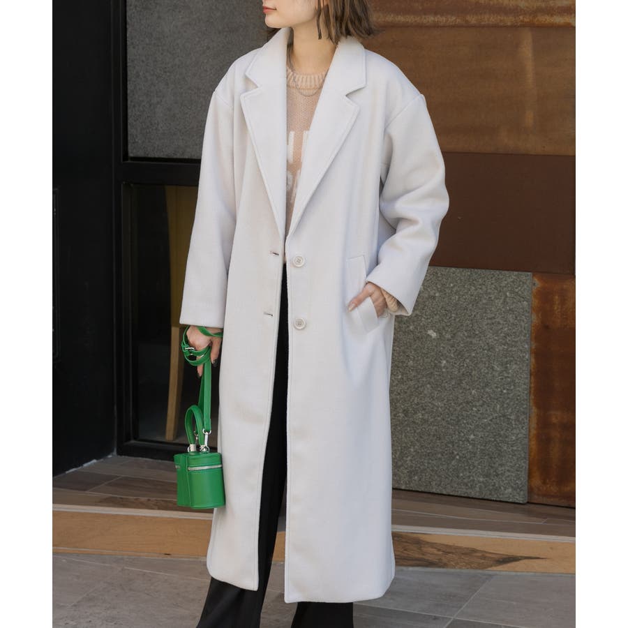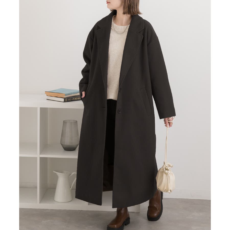 柔らかくしっかりとした生地で、ゆったりシルエットのロングチェスターコート