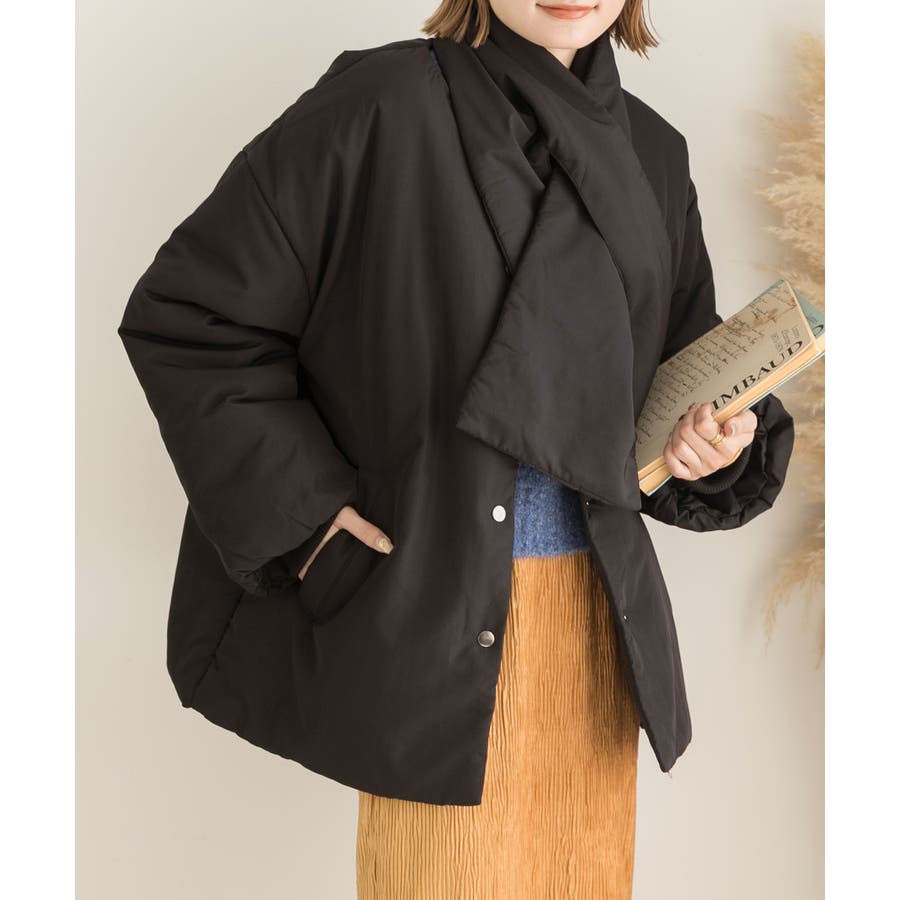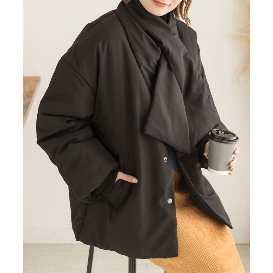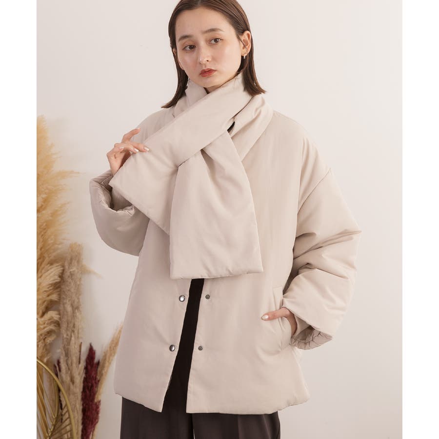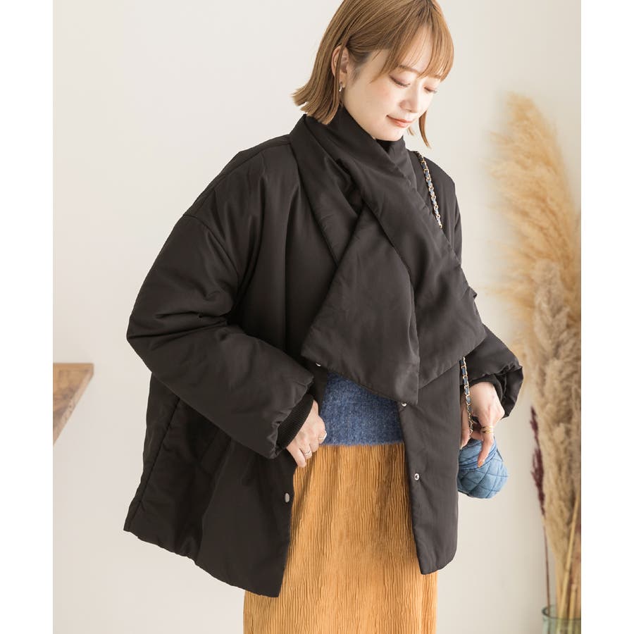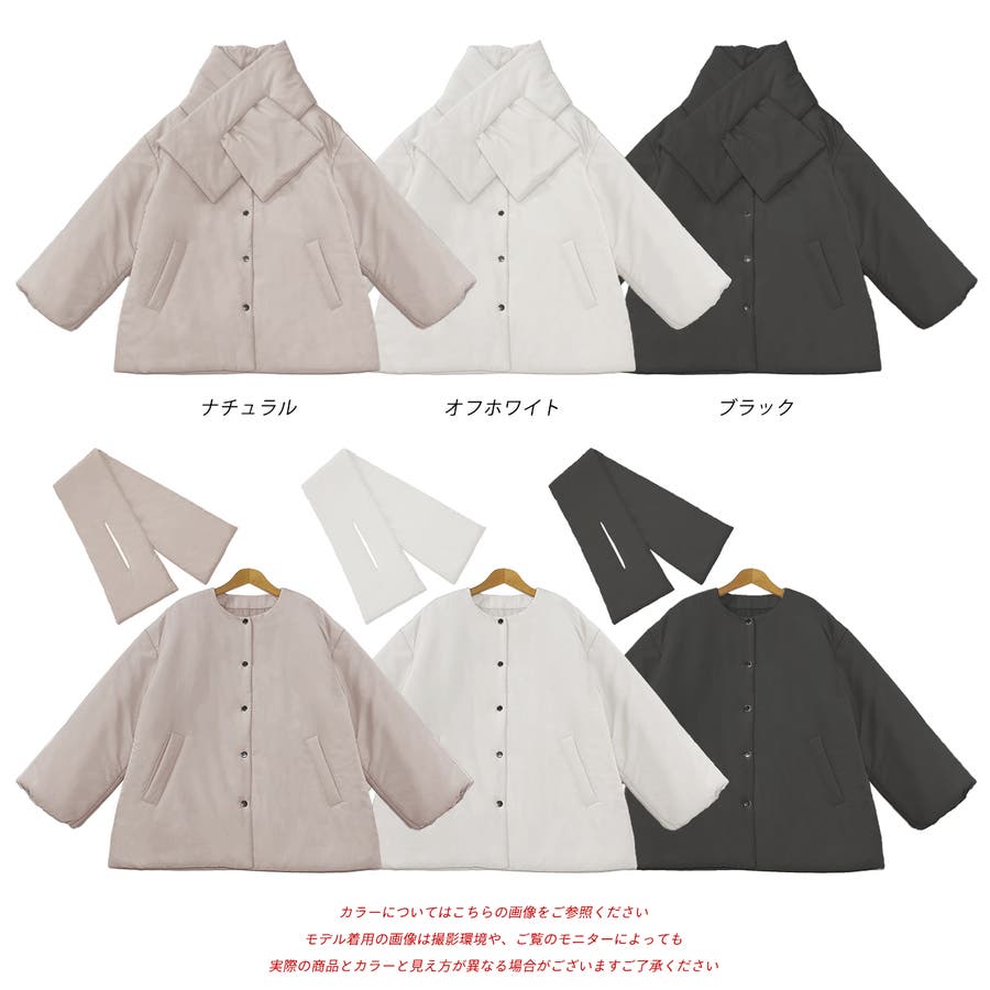 2WAYで着られるマフラー付きの中綿ノーカラーアウター!