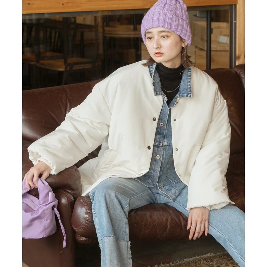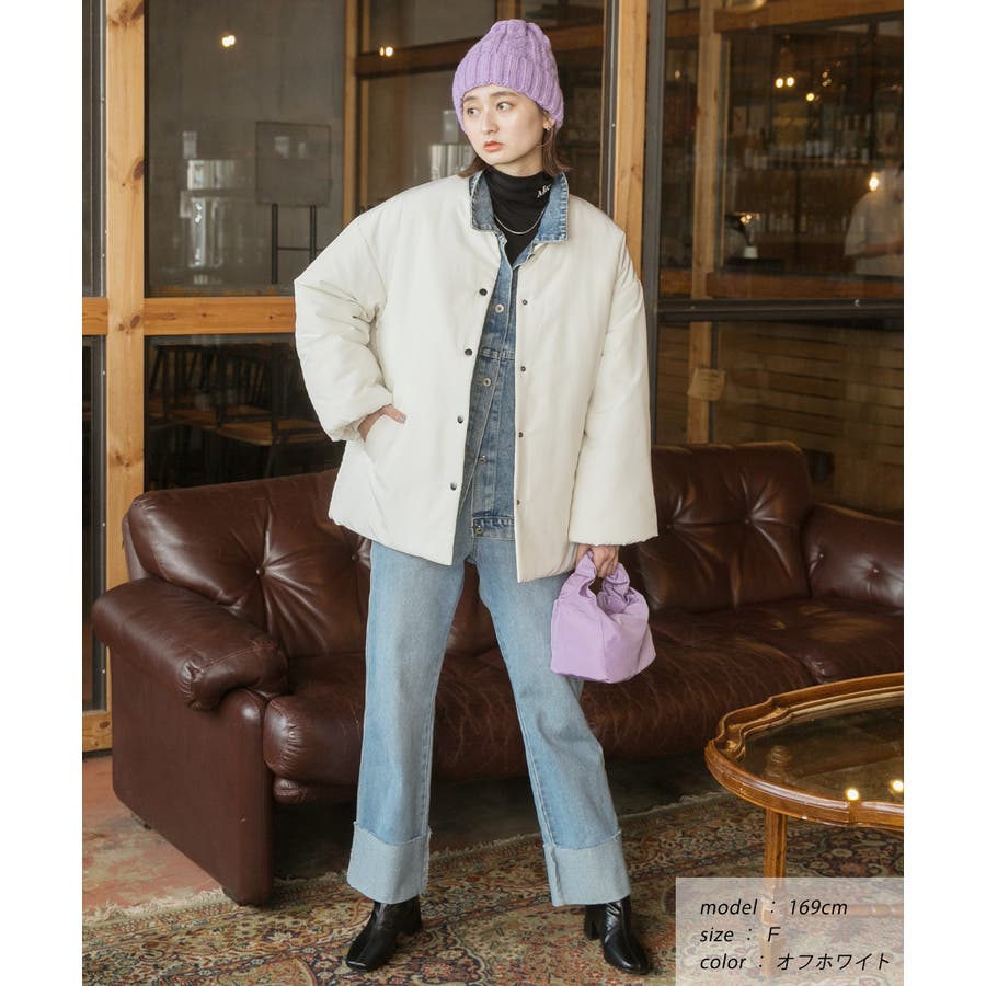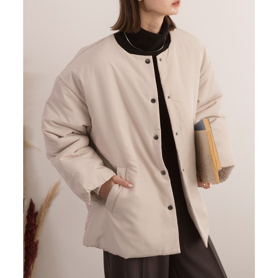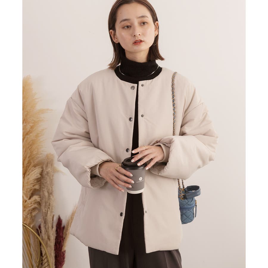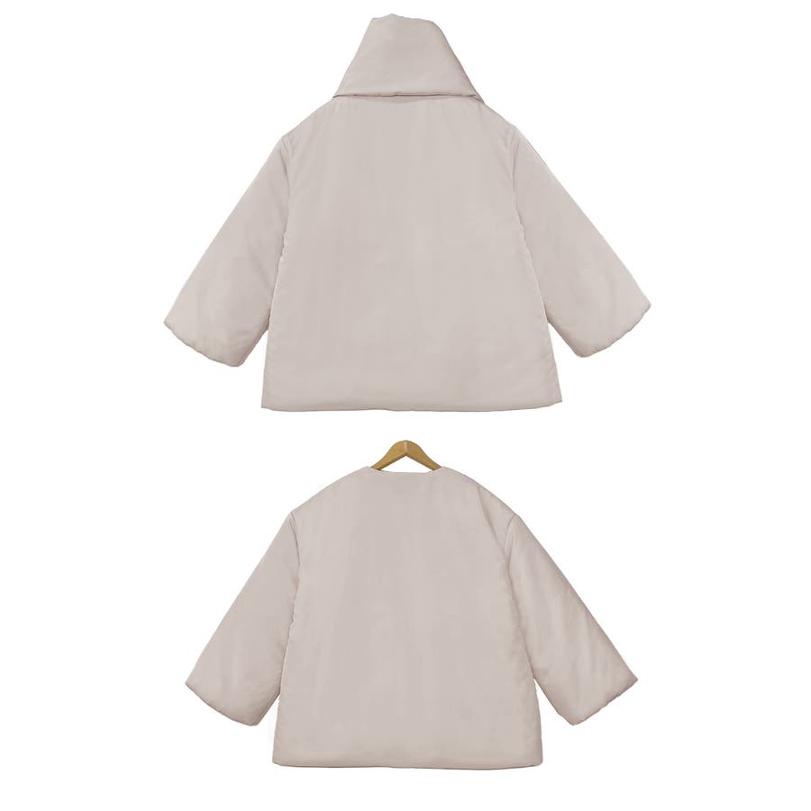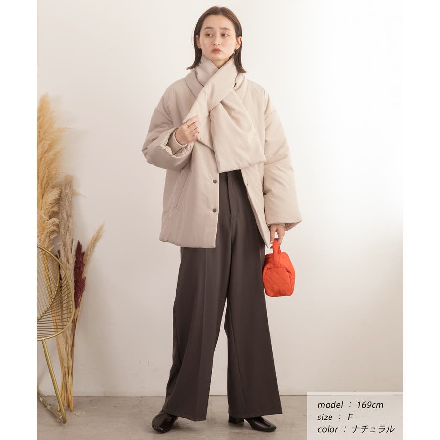 2WAYで着られるマフラー付きの中綿ノーカラーアウター!