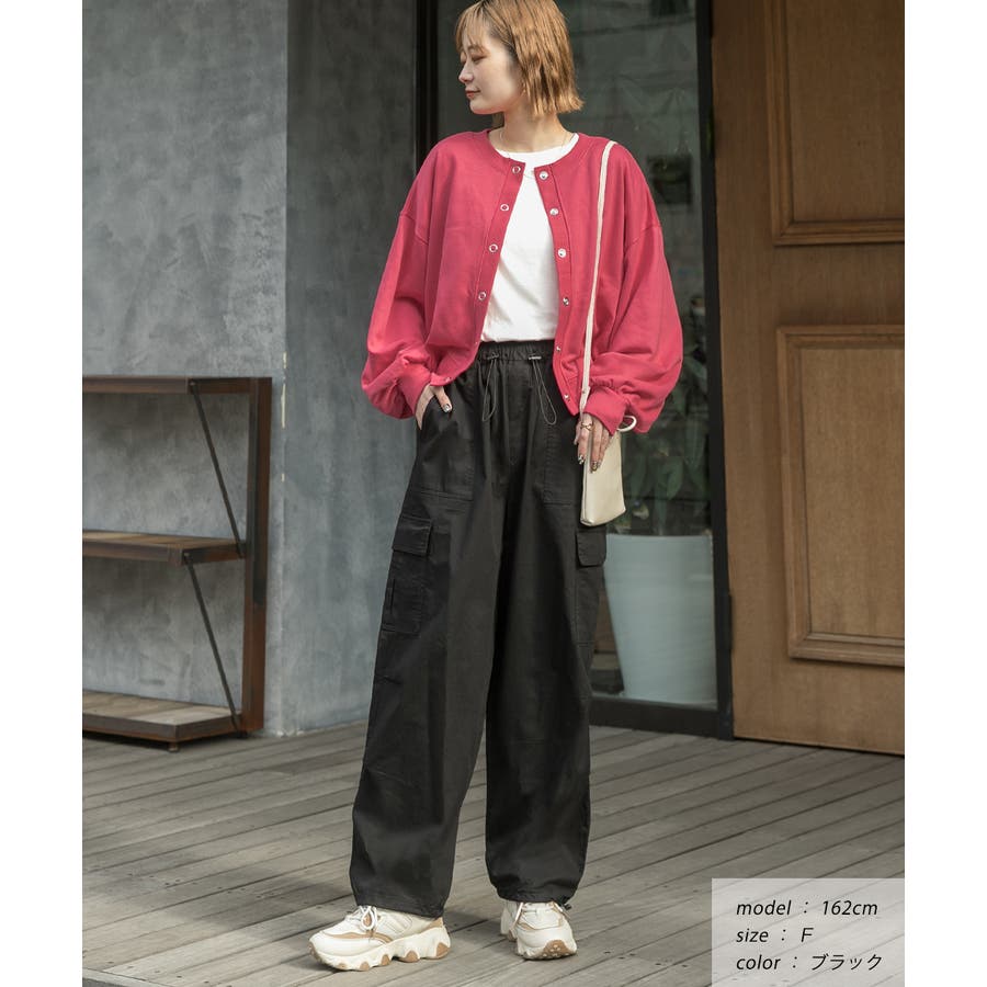 裾を絞らずにワイドシルエットパンツとして着ていただくのも◎