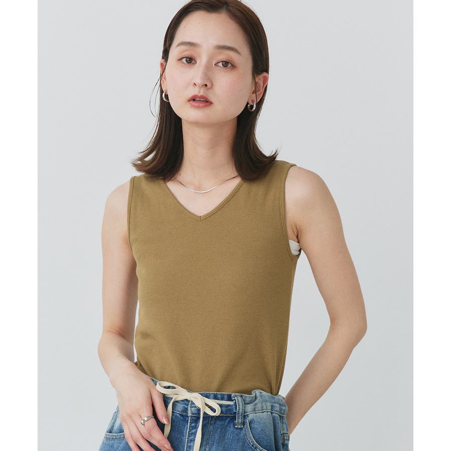程良いフィット感のあるVネックとスクエアネックの前後2WAYタンクトップ!