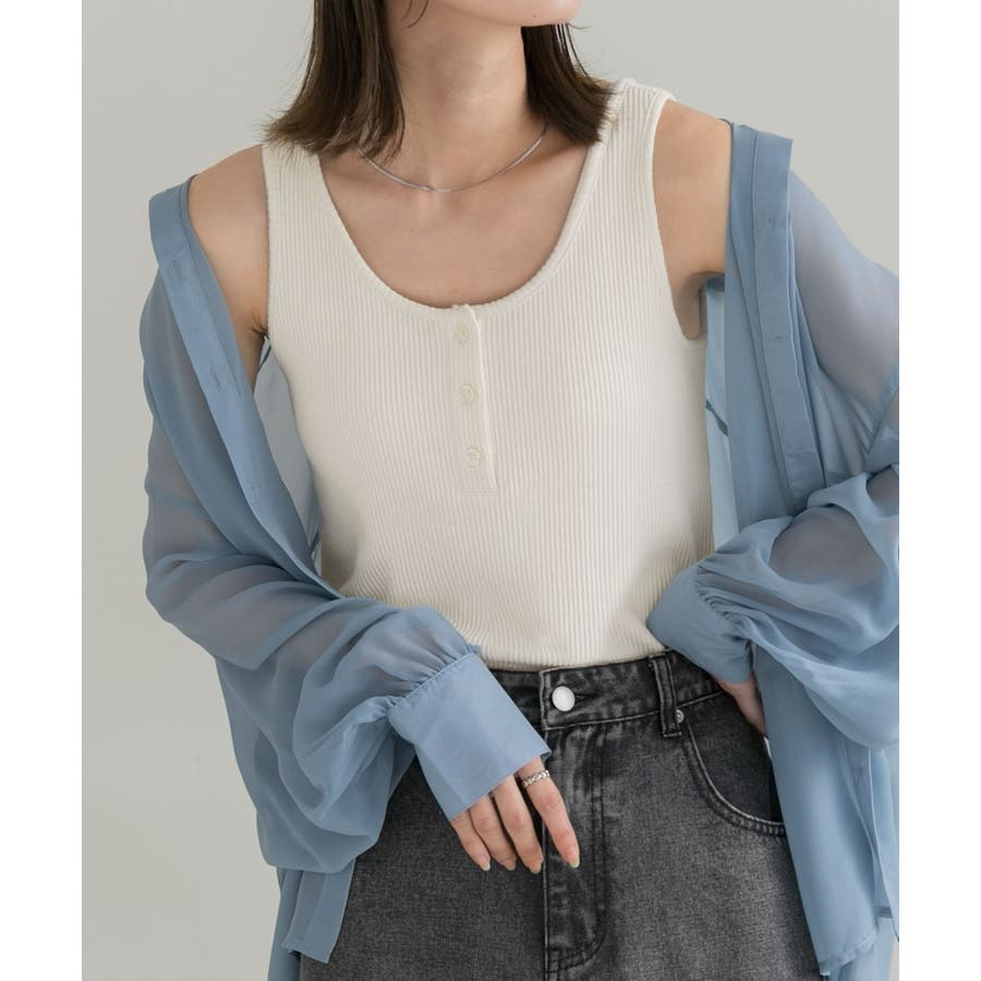 春 春コーデ 春ファッション 春服 夏 夏コーデ 夏ファッション 夏服 カジュアル カジュアルコーデ 大人 大人カジュアル オフィスカジュアル オフィス オフィスファッション オフィススタイル 韓国 韓国ファッション 韓国コーデ 大きいサイズ プチプラ プチプラファッション レディース Y2K 量産型 キレイめ 綺麗め きれい きちんと タンクトップ インナー ヘンリーネック リブタンクトップ リブ フロントボタン 重ね着 レイヤード フリル トップス オフホワイト 白 グレージュ 黒 ブラック アイボリー グリーン ミント ライトブルー ラベンダー