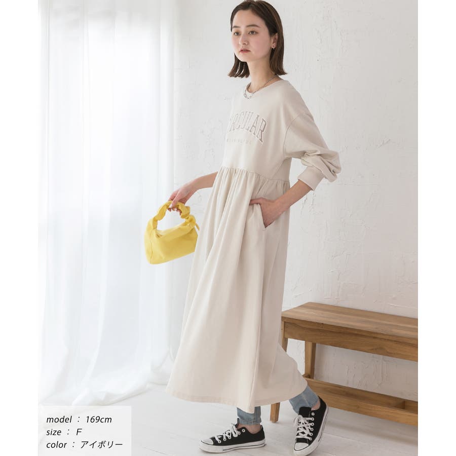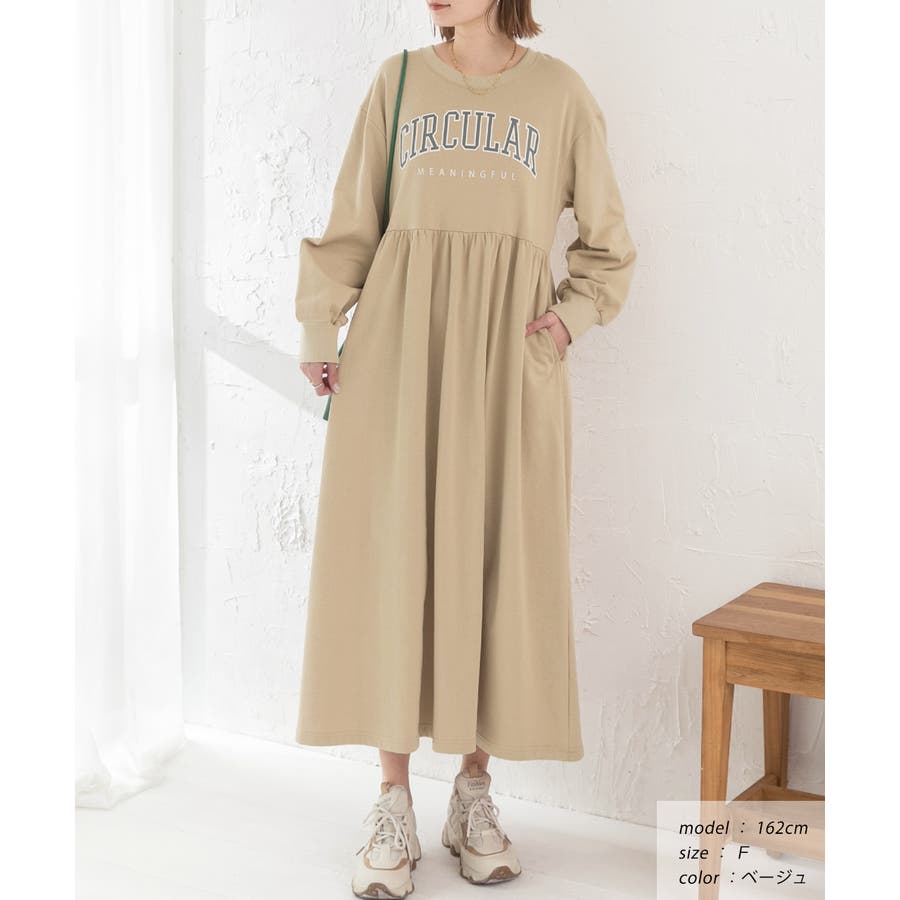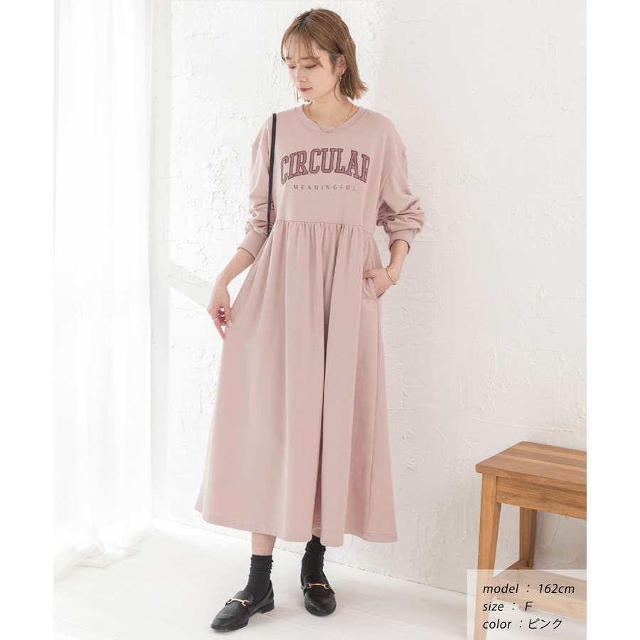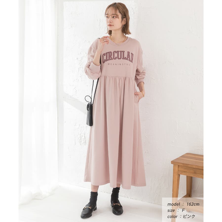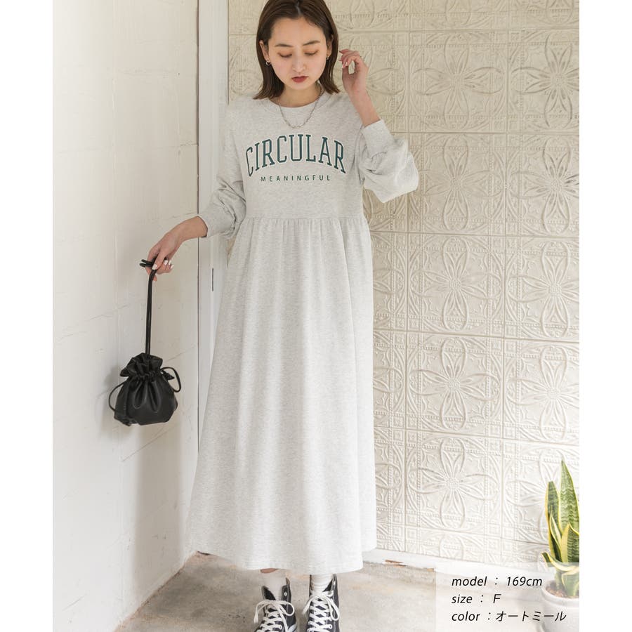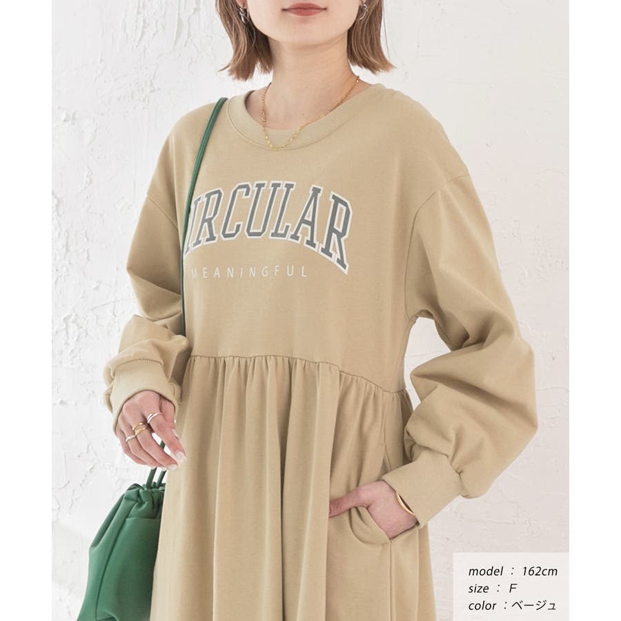 カレッジロゴ 裏毛ギャザー切替ワンピース