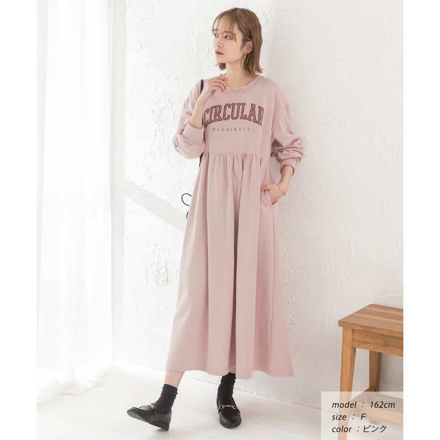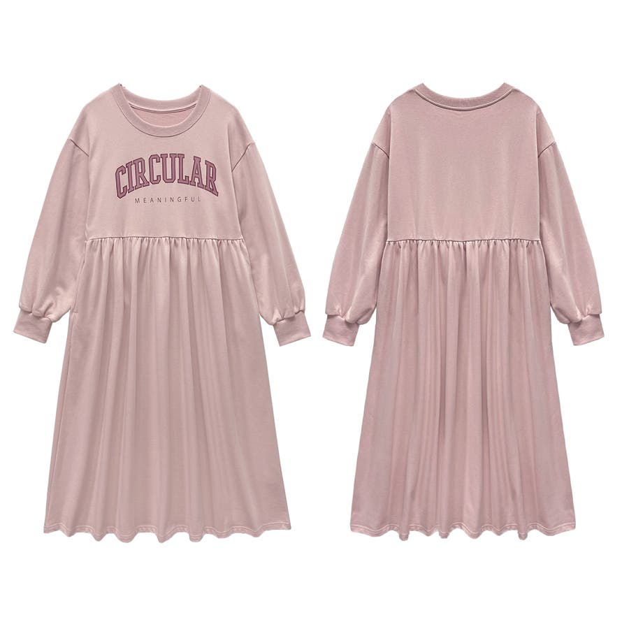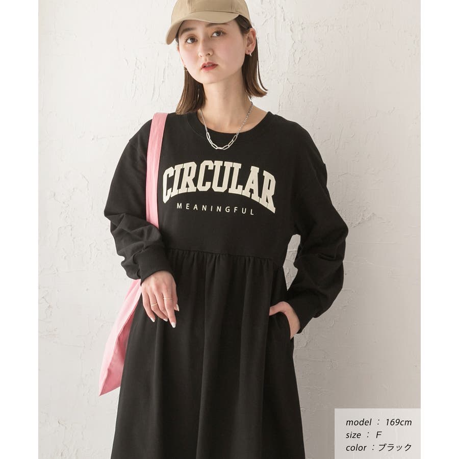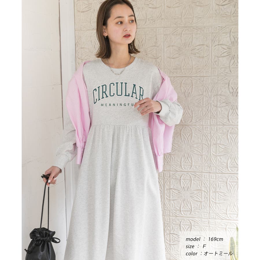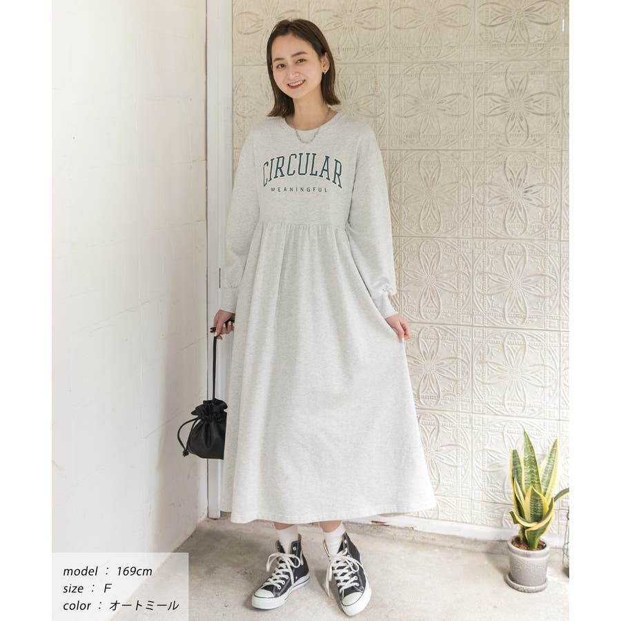 カレッジロゴ 裏毛ギャザー切替ワンピース