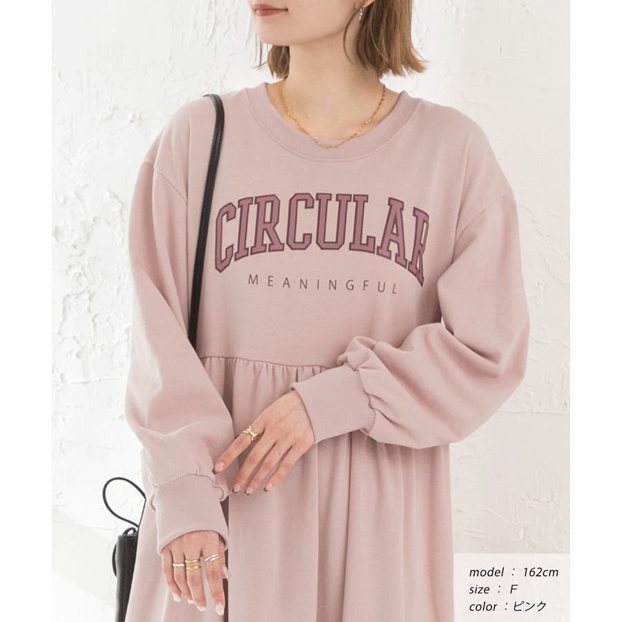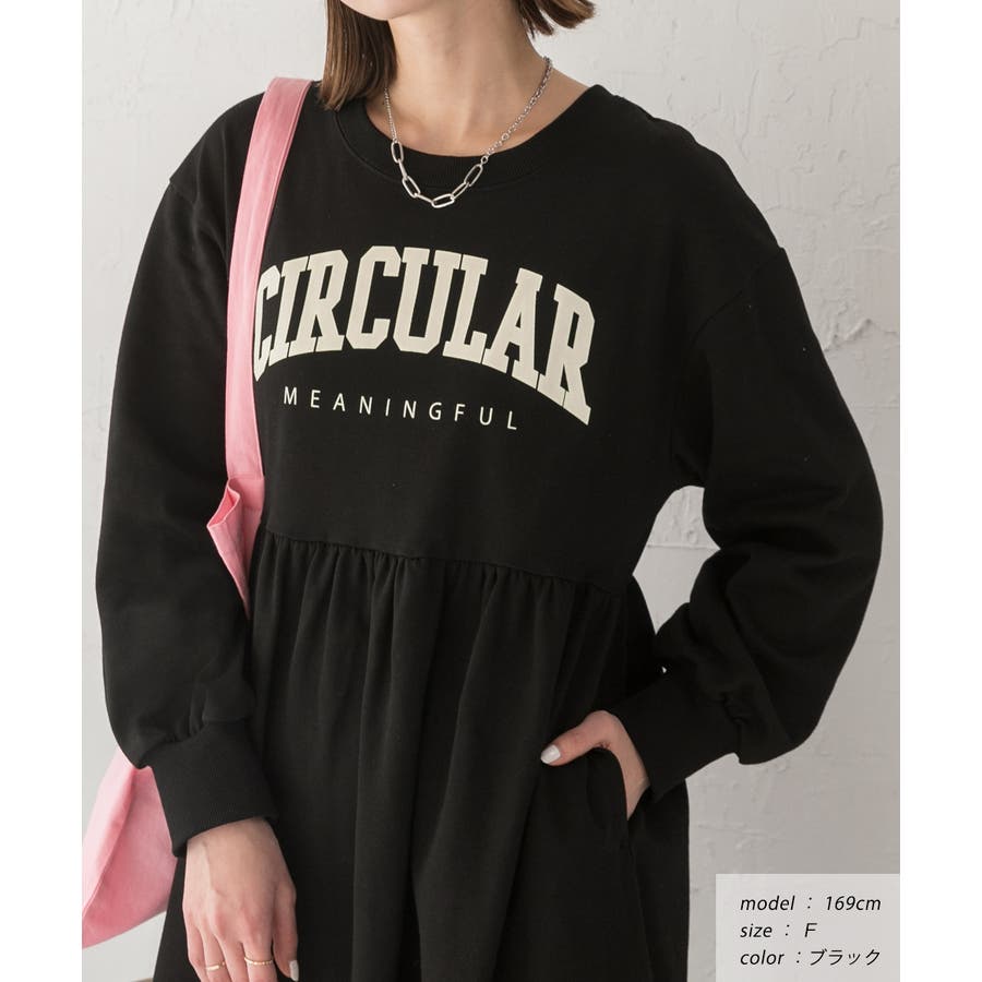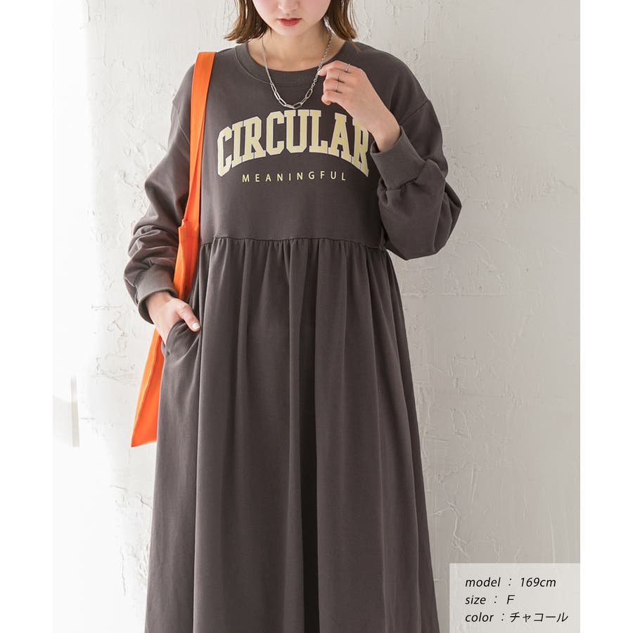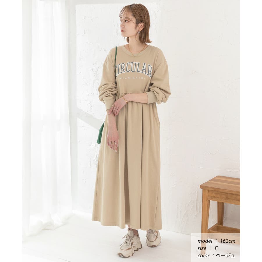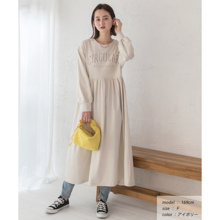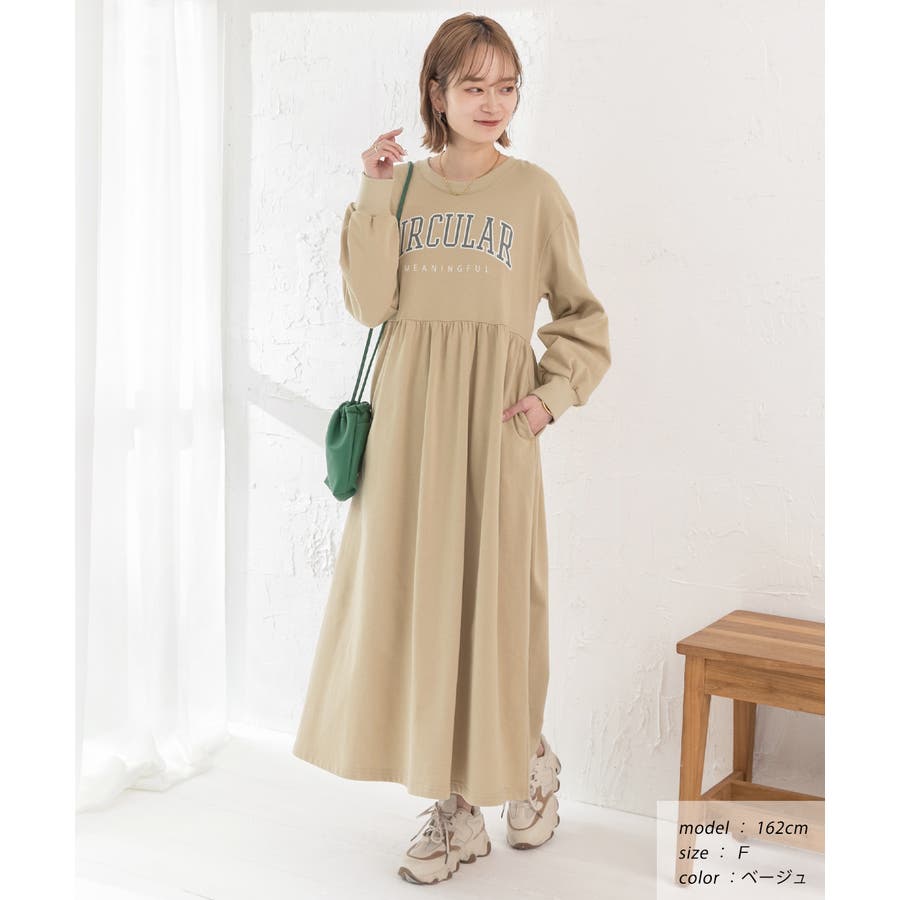 カレッジロゴ 裏毛ギャザー切替ワンピース