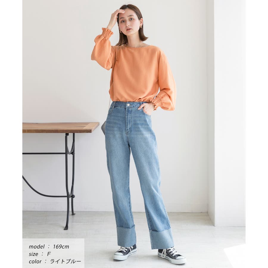 秋 秋コーデ 秋ファッション 秋服 夏 夏コーデ 夏ファッション 夏服 カジュアル カジュアルコーデ 大人 大人カジュアル オフィスカジュアル オフィス オフィスファッション オフィススタイル 韓国 韓国ファッション 韓国コーデ プチプラ プチプラファッション レディース Y2K 量産型 キレイめ 綺麗め きれい きちんと デニム ロールアップ ロールアップデニム ブルーデニム 脚長効果 美脚 脚長 スタイルアップ ストレート ストレートデニム ゆったり 定番 オールシーズン ブルー トレンド