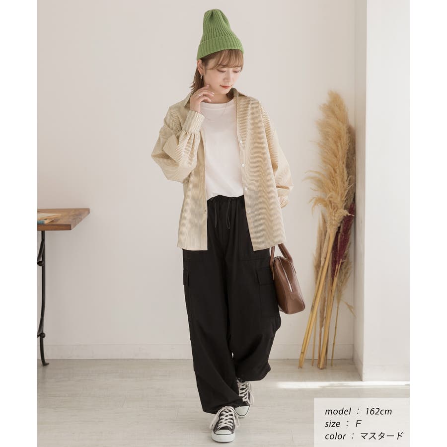 秋 秋コーデ 秋ファッション 秋服 冬 冬コーデ 冬ファッション 冬服 カジュアル カジュアルコーデ 大人 大人カジュアル オフィスカジュアル オフィス オフィスファッション オフィススタイル 韓国 韓国ファッション 韓国コーデ プチプラ プチプラファッション レディース Y2K 量産型 キレイめ 綺麗め きれい きちんと ボリューム ボリュームスリーブ ボリューム袖 ぽわん袖 オーバーシルエット オーバーシャツ ビッグシャツ ゆったり 楽ちん ベーシック シンプル シャツ 羽織り オフィスシャツ モカ ブラウン オフ ホワイト 白 アイボリー ストライプ ストライプシャツ ネイビー マスタード ブラック 黒