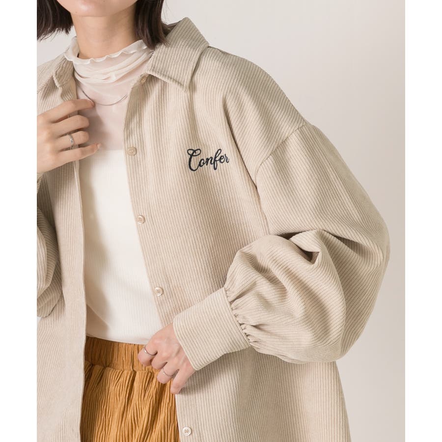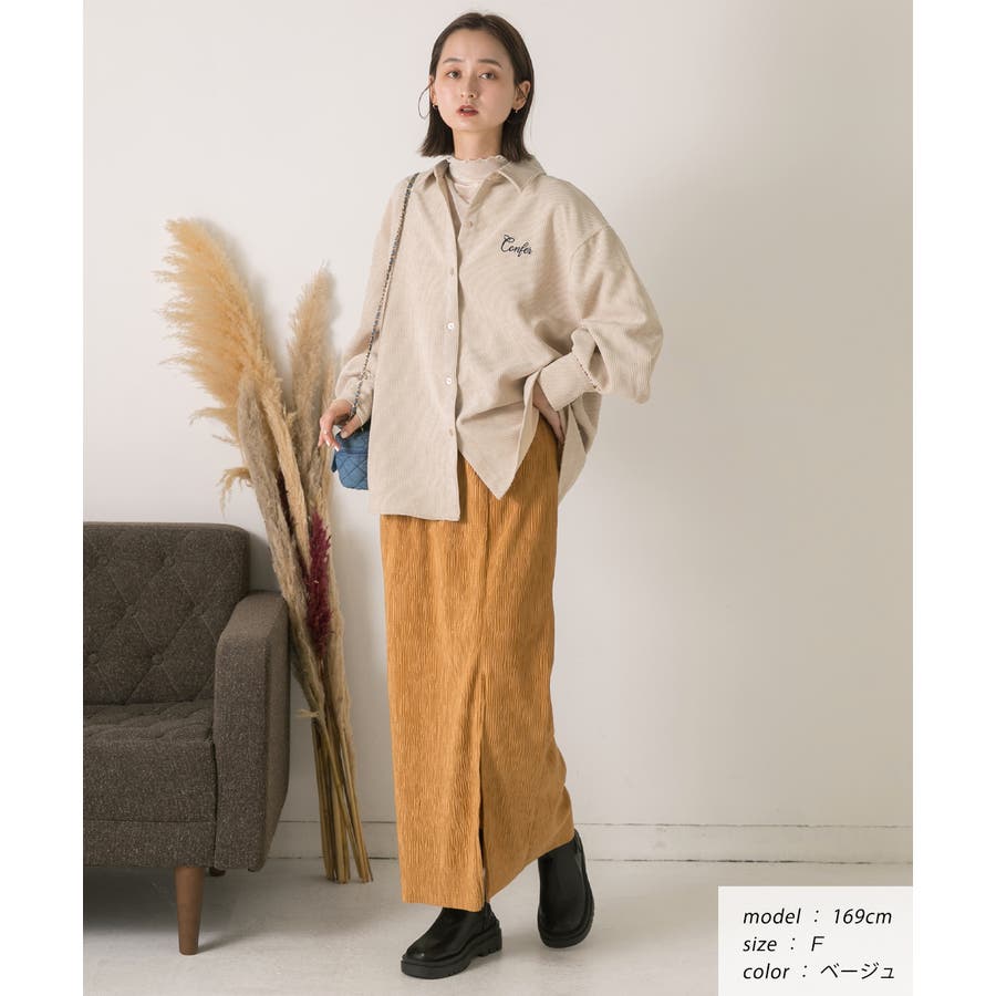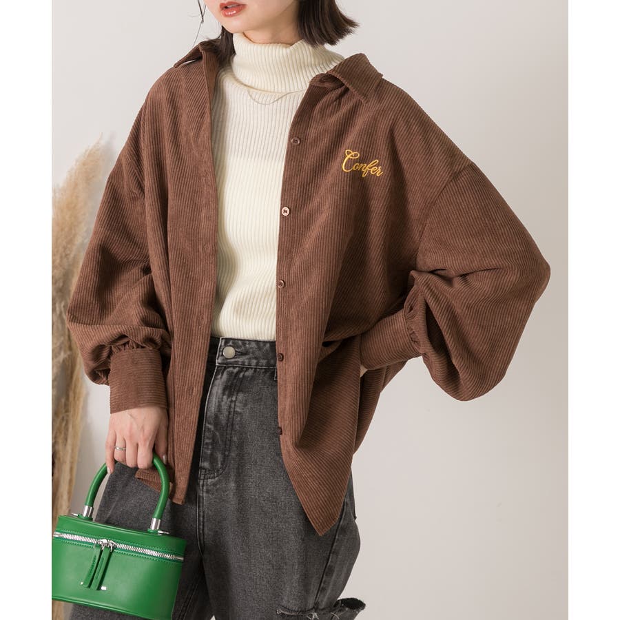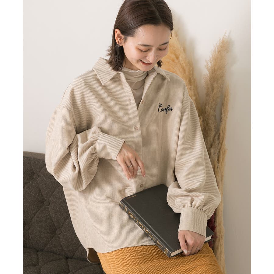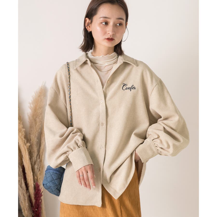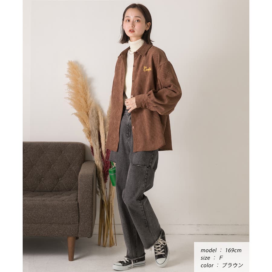 春 春コーデ 春ファッション 春服 冬 冬コーデ 冬ファッション 冬服 カジュアル カジュアルコーデ 大人 大人カジュアル オフィスカジュアル オフィス オフィスファッション オフィススタイル 韓国 韓国ファッション 韓国コーデ プチプラ プチプラファッション レディース Y2K 量産型 キレイめ 綺麗め きれい きちんと コーデュロイシャツ コーデュロイ 刺繍 刺繍シャツ 配色 オーバーサイズ ゆったり ビッグサイズ 楽 刺繍入り ボリュームスリーブ ボリューム袖 ぽわん袖 ブラウン ベージュ ナチュラル オフホワイト 白 オレンジ