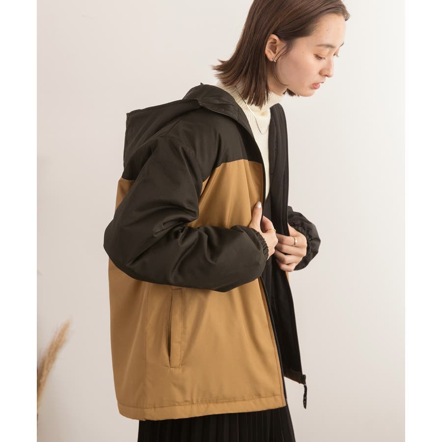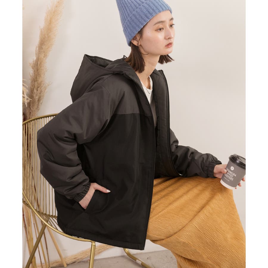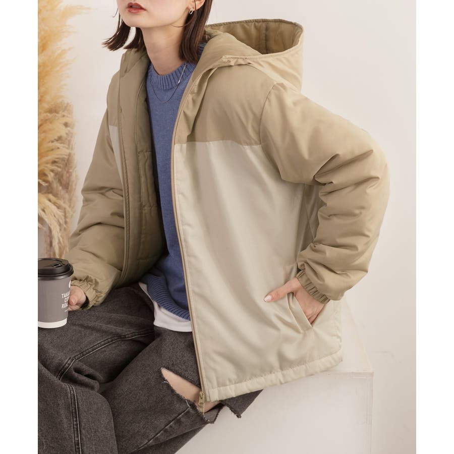 バイカラー・中綿 フード付きパーカー