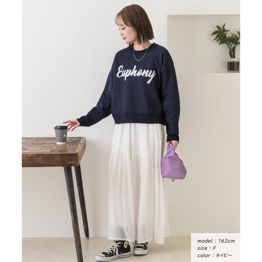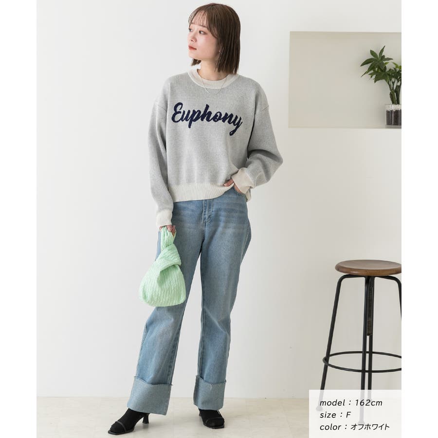 春 春コーデ 春ファッション 春服 夏 夏コーデ 夏ファッション 夏服 カジュアル カジュアルコーデ 大人 大人カジュアル オフィスカジュアル オフィス オフィスファッション オフィススタイル 韓国 韓国ファッション 韓国コーデ プチプラ プチプラファッション レディース Y2K 量産型 キレイめ 綺麗め きれい きちんと ジャガード ジャガードニット ロゴ ロゴニット ロゴセーター スウェット風 セーター オーバーサイズ ワイドシルエット クルーネック リブニット リブトップス リブセーター オフホワイト 白 オートミール ブルー 青 ネイビー