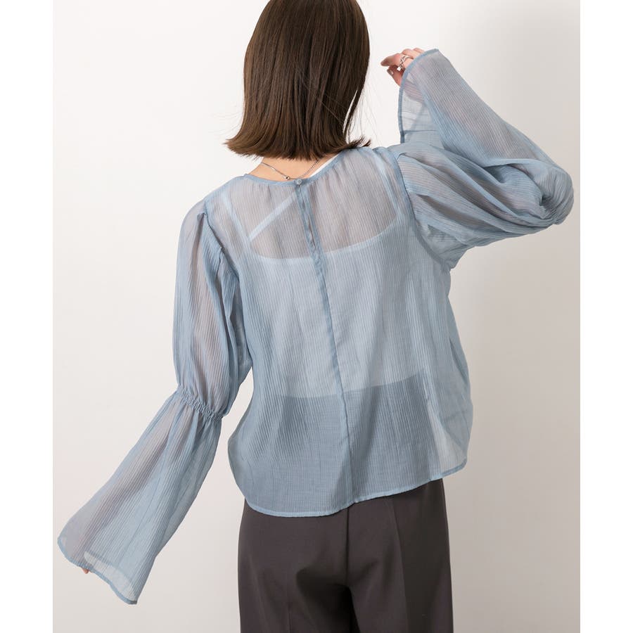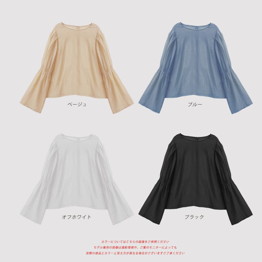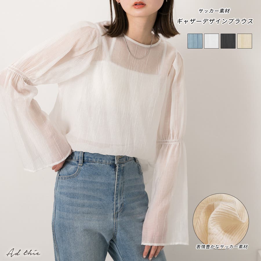 サッカー素材 ギャザーデザインフレアスリーブブラウス